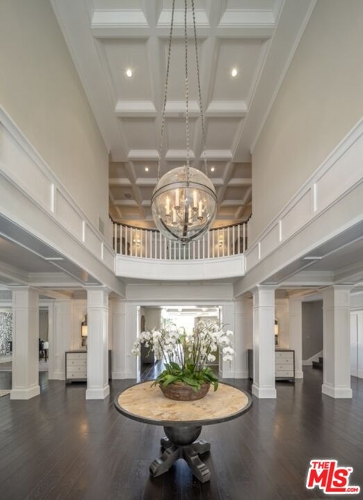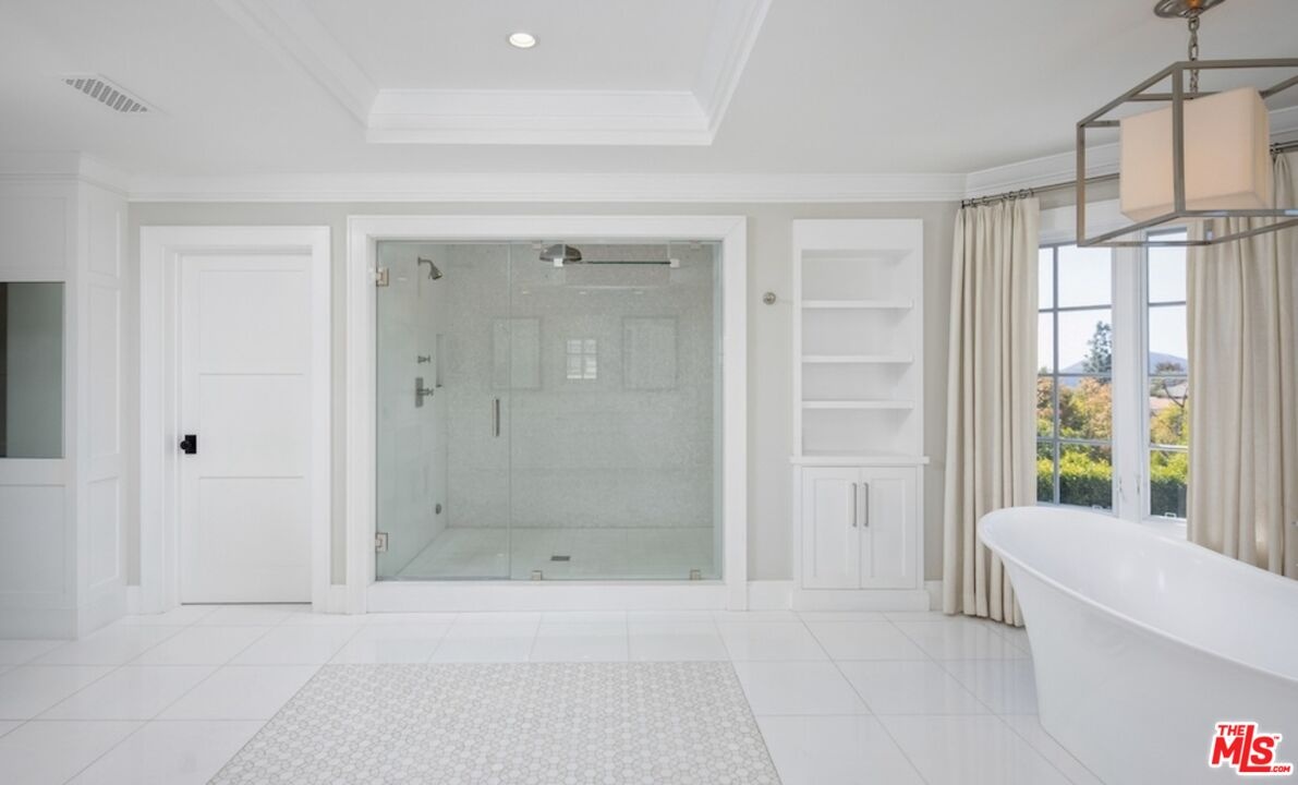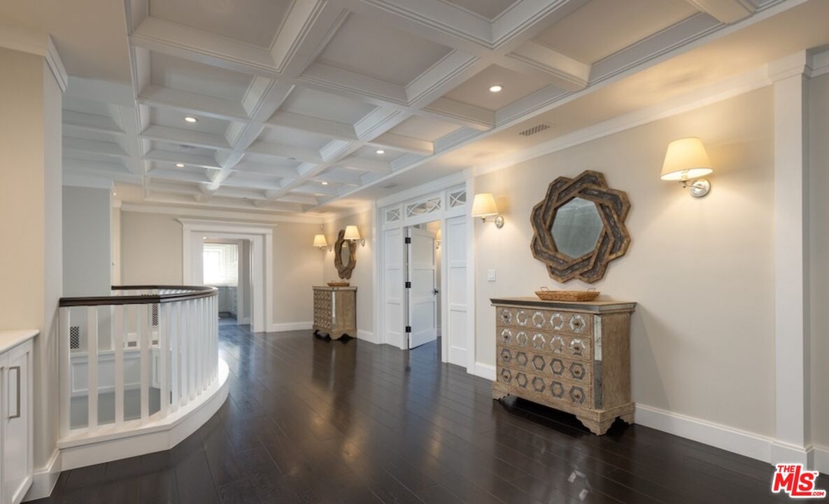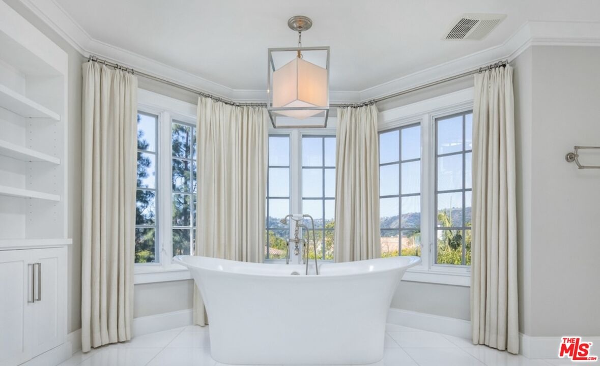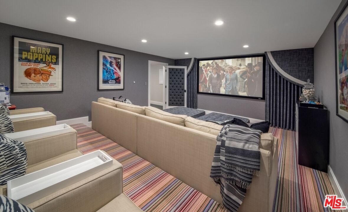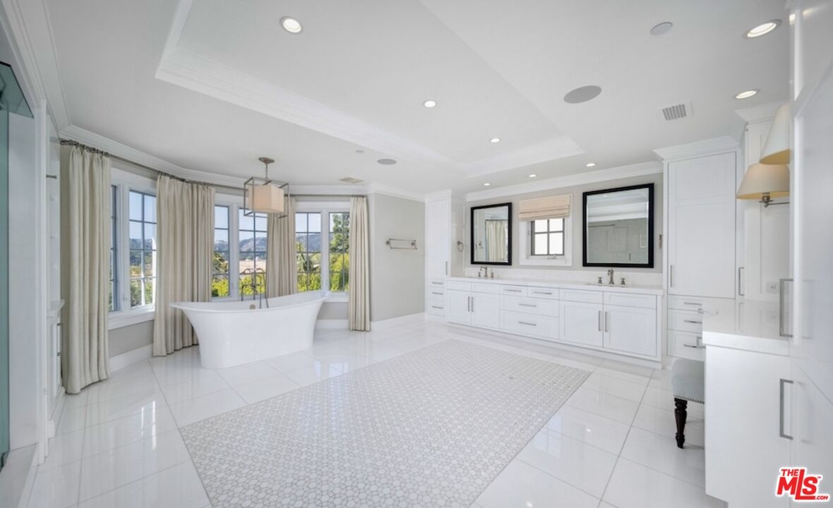 Nestled in the coveted, rapidly appreciating community of Bel Air Crest, this completely reimagined East Coast Traditional blends timeless elegance with modern sophistication. Behind guarded gates with 24/7 security, tennis courts, a clubhouse, and a true neighborhood feel, this estate offers an unmatched lifestyle in one of LA's most desirable enclaves. A grand two-story entry welcomes you into light-filled interiors featuring beautifully refinished hardwood floors, formal living and dining rooms with fireplaces, a handsome library, family room, and seamless indoor-outdoor flow through pocket doors. The gourmet kitchen is outfitted with a Sub-Zero refrigerator, La Cornue range, custom cabinetry, pantry, and a sunlit eat-in breakfast area. A smart-home system adds modern convenience throughout. Entertainment abounds with a theater, 2,000-bottle wine cellar, and children's playroom with a stage. The four-car garage with extensive built-ins plus gated motor court parking for 11 ensures ample space for family and guests. Upstairs, the primary suite features a fireplace, private sitting room, dual walk-in closets, and spa-like bath. Three additional ensuite bedrooms, upstairs laundry, and a finished attic gym with mirrored walls complete the upper level. A guest/maid's suite with private bath is located on the bottom floor, offering privacy and convenience. The backyard is a private oasis with grassy turf lawn, pool, separate spa, fire pit, and built-in barbecue bar, creating the perfect setting for entertaining.