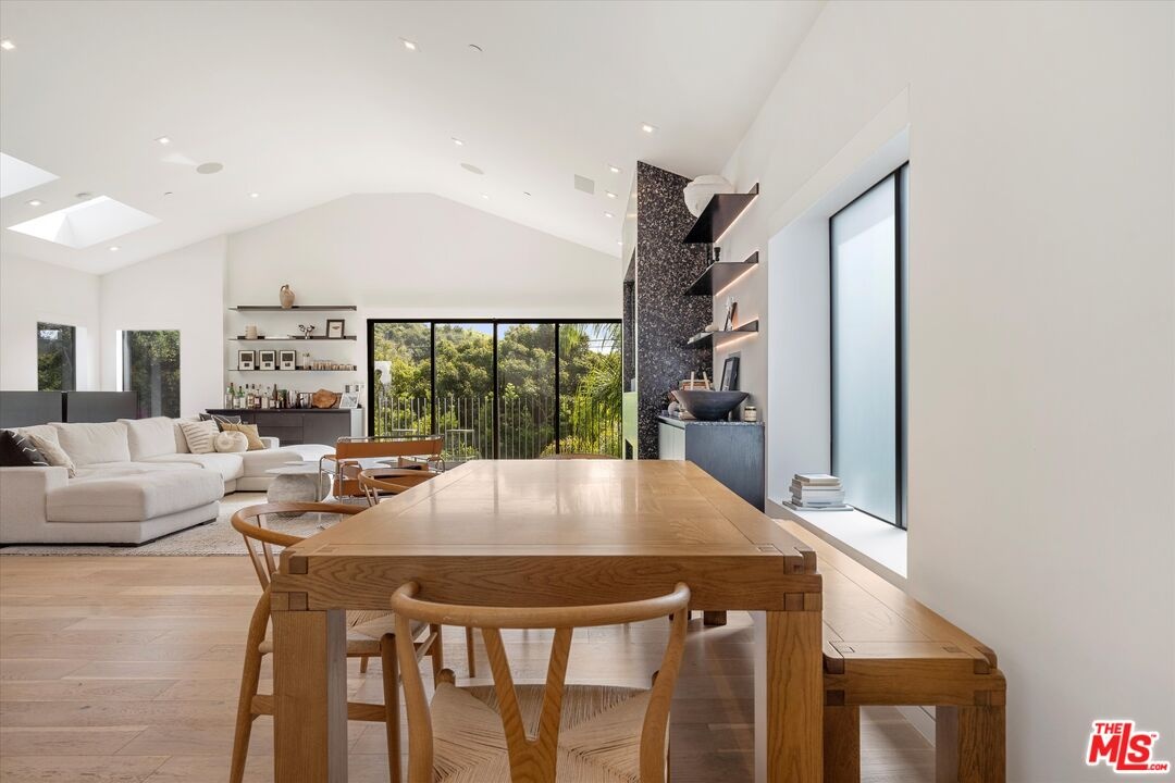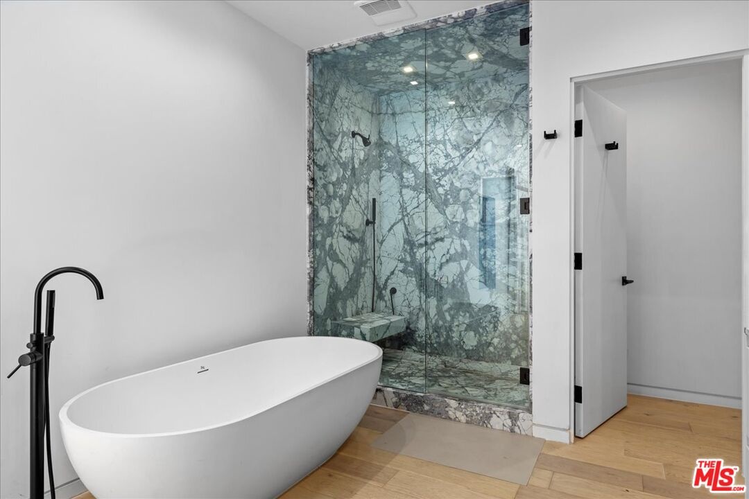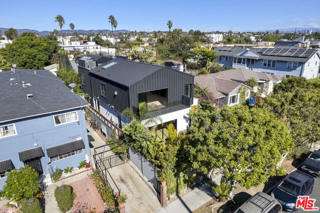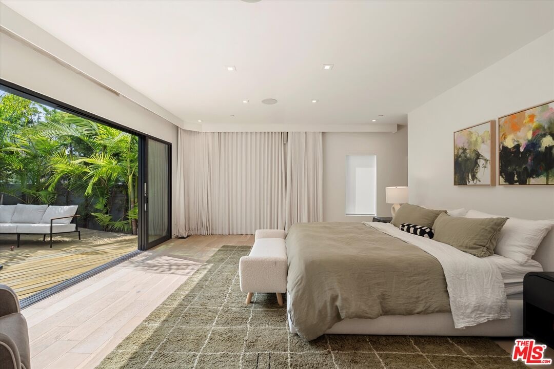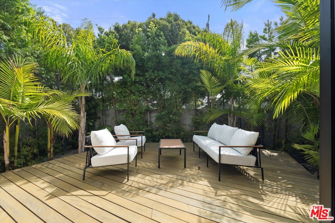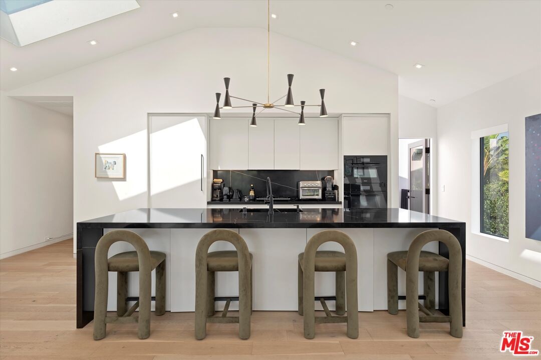 Built new in 2020 with only the highest-quality materials and attention to detail, this exceptional townhome features 4 bedrooms, 4.5 baths, a rare 4-car garage, and over 2,800 square feet of inspired living space. Step through the oversized wooden entry door into a striking first level featuring a luxurious primary suite, art hallway, and two additional ensuite bedrooms. The primary suite is a statement bedroom, opening directly onto a private, landscaped wooden deck framed by lush palms and enclosed within a tranquil fenced courtyard. The primary bath includes a sleek walk-in shower, freestanding soaking tub, and a fully built-out walk-in closet. Ascend the staircase, and the main living level impresses with its stunning open-concept great room featuring soaring ceilings, vaulted skylights, a gas fireplace, built-in wet bar with wine fridge, and remote-controlled blinds, perfectly designed for entertaining and relaxing. A chef-caliber kitchen outfitted with imported Miele appliances, a marble waterfall island, and sleek custom cabinetry is perfect for entertaining. A fourth ensuite bedroom and powder room complete the 2nd floor. Additional features include wide plank hardwood flooring, dual-zone Nest climate control, Fleetwood doors, built-in surround sound, touch control brilliant light switches, jewelry safe, and Ring security cameras. Cap it all off with a captivating rooftop deck offering panoramic 360-degree views of Venice, ideal for sunset cocktails or starlit gatherings. This one-of-a-kind home is an entertainer's dream and move-in ready.