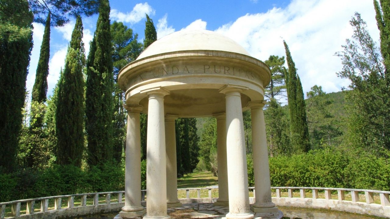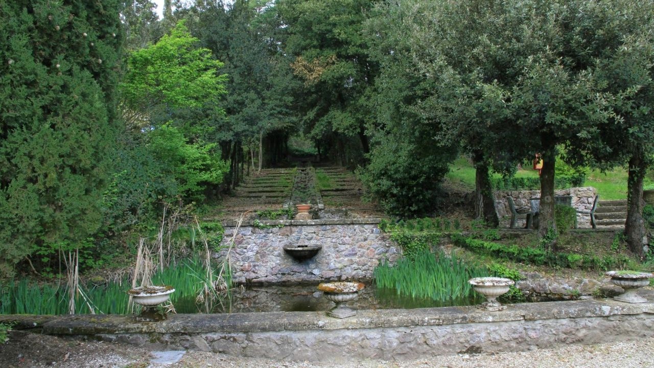 The large park designed and created in the 1930s by the landscape architect Pietro Porcinai (well-known throughout Europe and especially in Tuscany, to the extent that the superintendence of the cultural and environmental heritage of Arezzo has allowed and published the cataloguing of all his works) houses the neoclassical-style 'little temple' created to distribute water also to the waterfall adjacent to the villa.