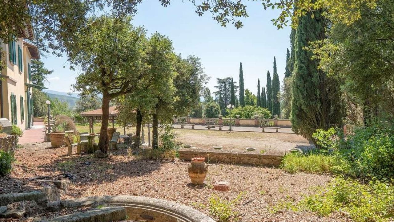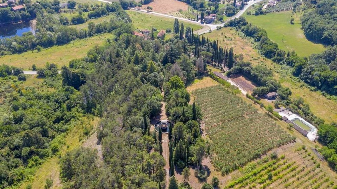 The land features a vineyard with a cellar equipped for the vinification and ageing of vin santo, an olive grove with 750 trees for the production of organic olive oil, an orchard with cherry, apricot, plum, almond, fig and so on, a large orangery of 120 sqm, evocative spaces, an artesian well and a private pond, to which the irrigation system for the green areas, the vineyard, the olive grove and the orchard is connected.