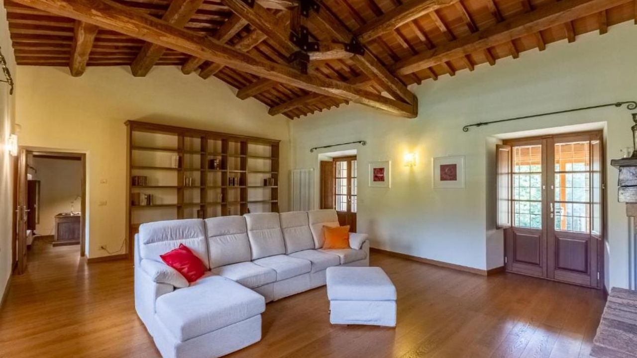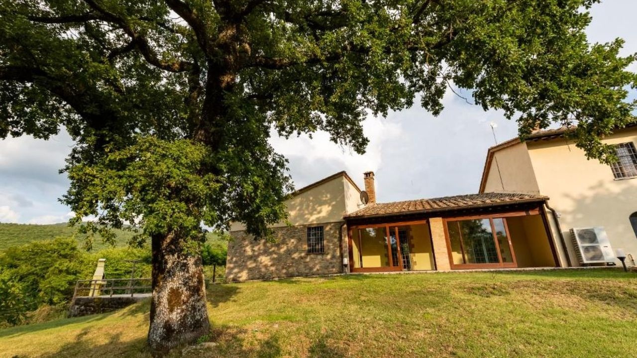 The 450 sqm farmhouse is divided into two flats with independent entrances.