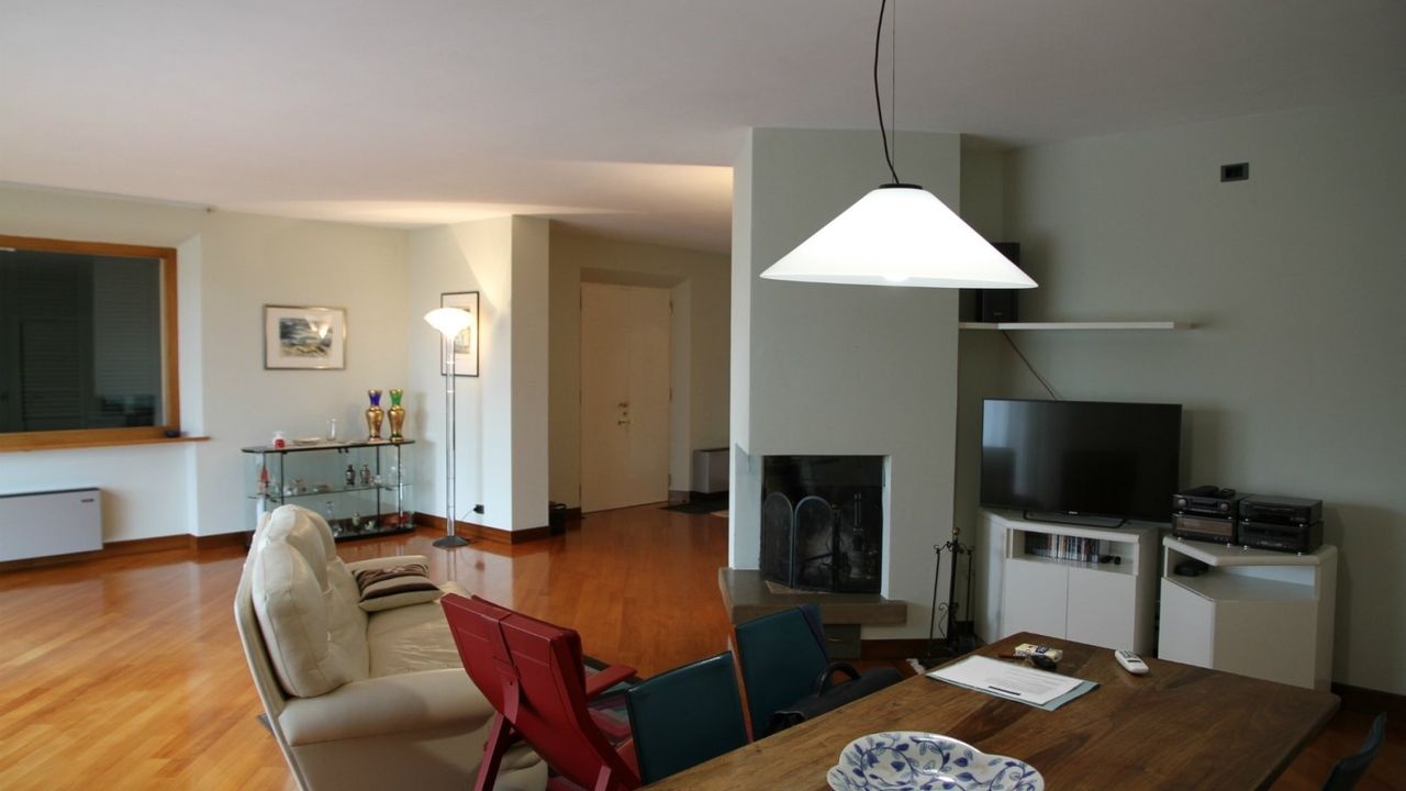 The dwelling is characterised by structural elements in exposed concrete and large plastered surfaces, contrasting with the large windows set in wooden frames. The large rooms give the dwelling a special taste.
