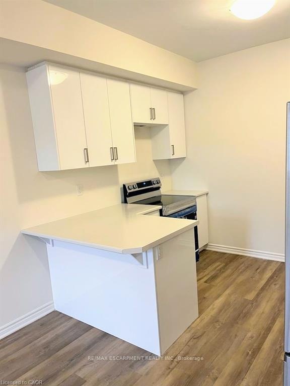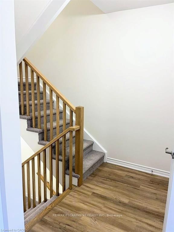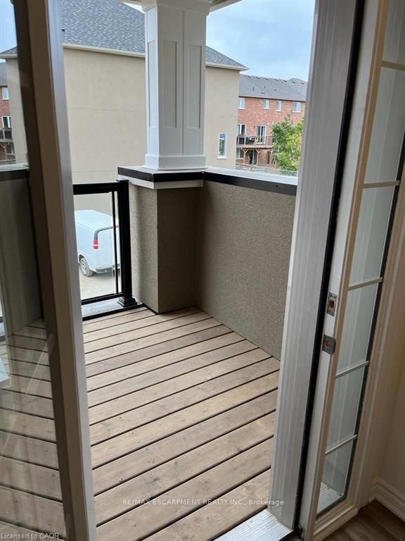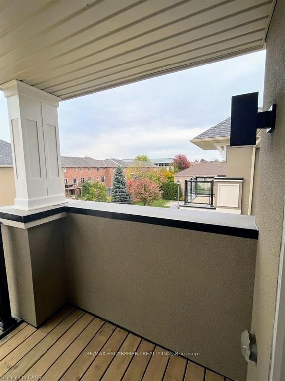 Welcome to modern living in the highly sought-after "Treescapes of Ancaster" community, a serene enclave surrounded by lush green space, yet just minutes from all major city conveniences. Don't miss this exceptional opportunity to live in a 2023 built, three storey townhome featuring a rare below grade basement, ideal for extra storage or additional living space. A charming glass front entryway and spacious front porch greet you, with visitor parking conveniently nearby for effortless entertaining. The bright main level bonus room offers the perfect setting for a home office or den, complete with interior access to both the garage and basement. As you walk upstairs the spacious open concept layout with gleaming luxury vinyl flooring throughout is sure to impress. On this level you will find a bright living space, powder room and modern white chef's kitchen with extended height upper cabinets, stainless steel appliances and breakfast bar with seating making this a perfect space to entertain. Step out to a private balcony, overlooking mature trees, for a moment of tranquility. The upper level includes a 4-piece bathroom, two generous bedrooms, and a primary suite with a massive walk in closet. Convenient upper level laundry enhances everyday comfort and practicality. Located minutes from Hwy 403, and steps to top rated schools, trails, and conservation areas, this home blends nature, convenience, and modern elegance in one perfect package.
