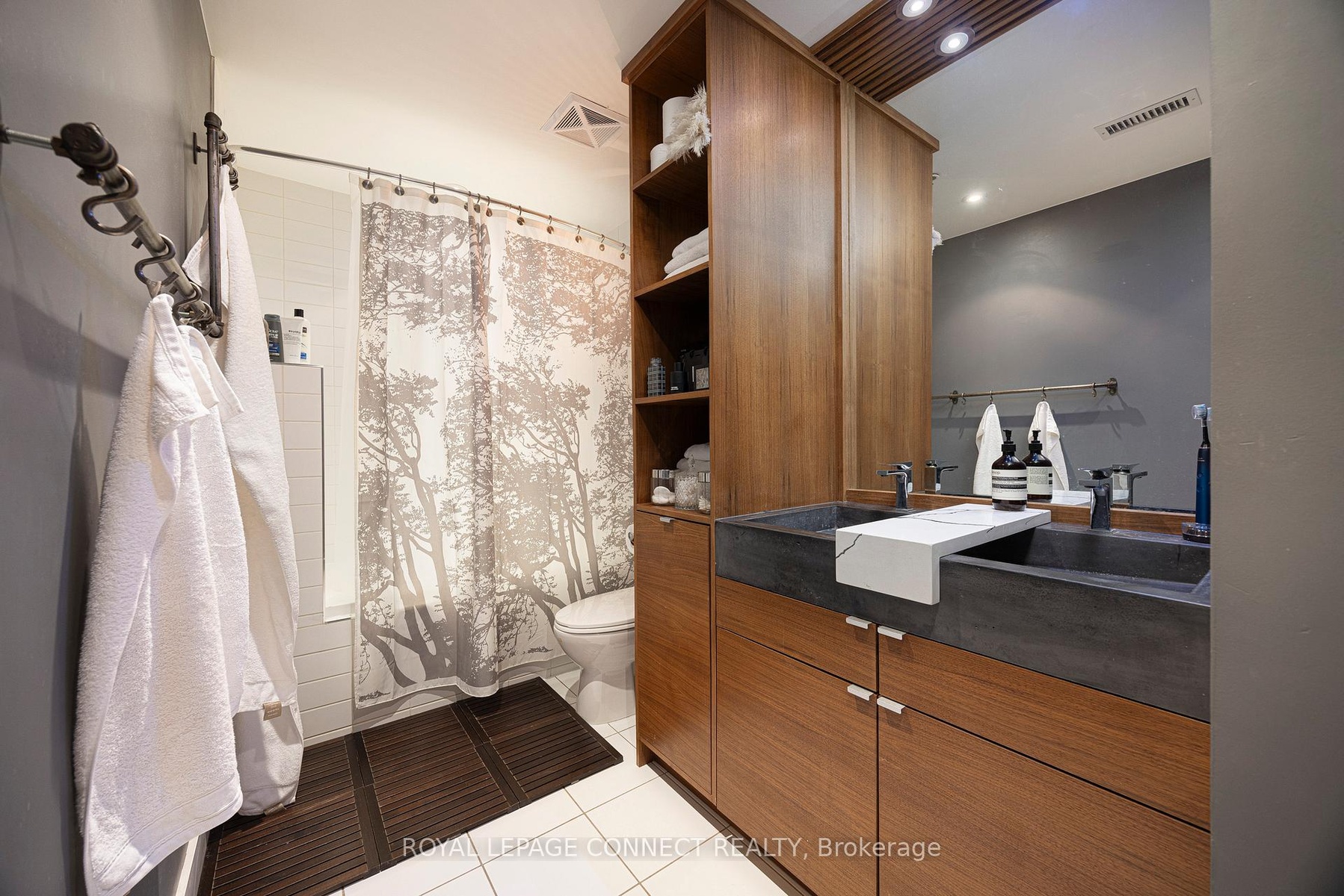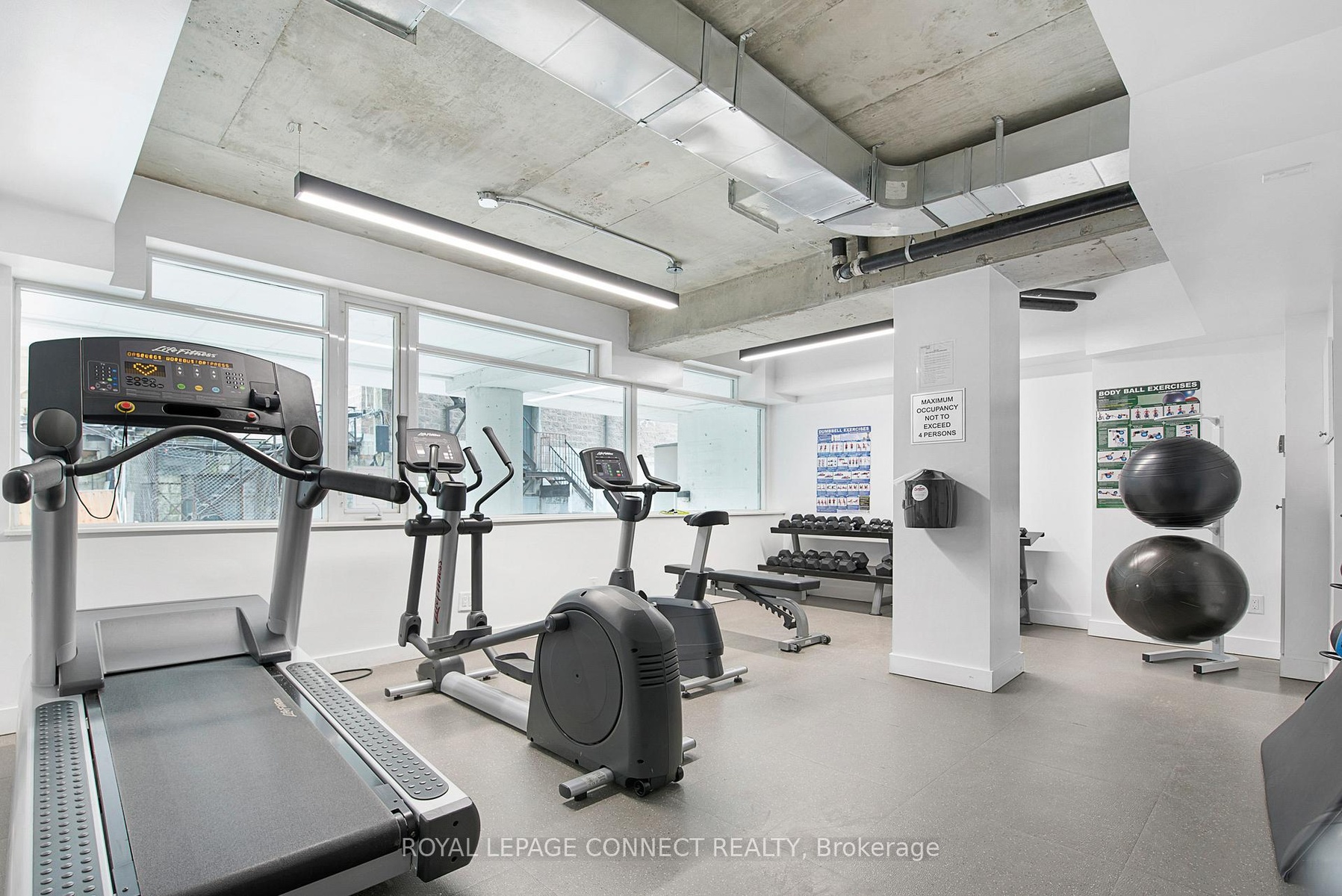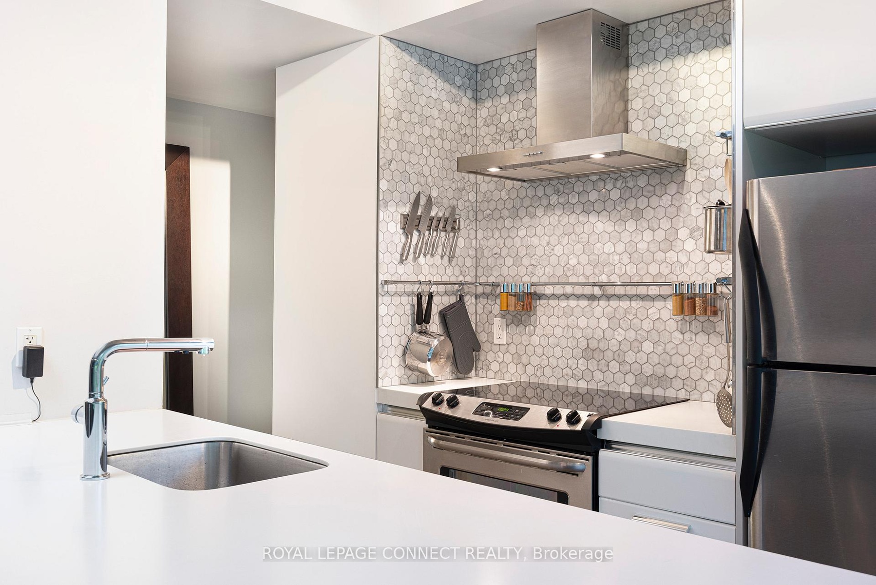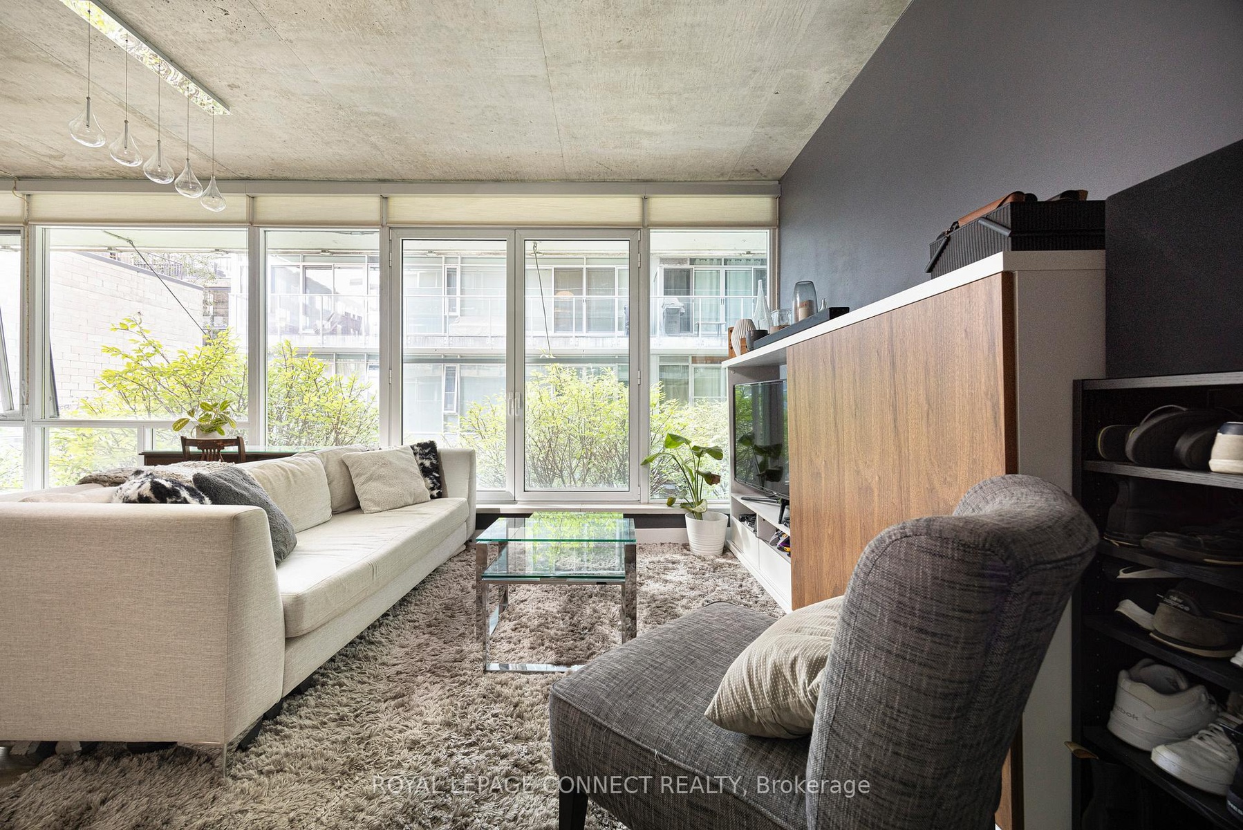 Experience sophisticated living in the heart of King West! This large one bedroom, one bathroom unit features over 700 square feet of living space, 9ft exposed concrete ceilings, an oversized kitchen island and your own mini bar. The perfect place for entertaining your guests! Ample storage including a custom built-in. Two lovely Juliette balconies overlooking the trees in the quiet courtyard, meticulously designed by Philippe Starck. Access everything that King West has to offer with the city's trendiest restaurants, shops and vibrant nightlife right out your doorstep! Come and see for yourself!