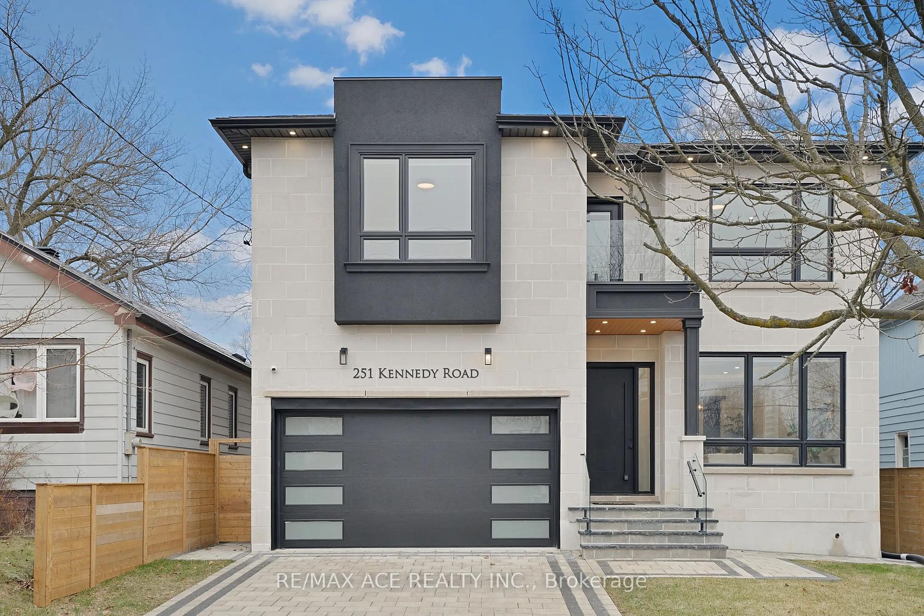 Welcome to 251 Kennedy Road, a delightful 2-storey detached home nestled in the heart of Scarborough's friendly and sought-after neighborhood. This spacious, inviting home offers ample room for families of all sizes, featuring 4 cozy bedrooms and 5 full bathrooms, plus a convenient powder room for guests. With 10-foot ceilings on the main floor and 9-foot ceilings on the second and basement levels, the home feels open, airy, and bright throughout. The main floor also offers a dedicated office space, perfect for those working from home or needing a quiet area for study or creativity. The legal basement is a true gem, with two additional bedrooms, its own private entrance, and ample living space ideal for extended family, guests, or even rental income potential. The charming brick exterior adds timeless appeal, while the generous lot provides plenty of outdoor space for backyard picnics, gardening, or simply relaxing in your own private retreat. The convenience of both a garage and extra driveway parking makes everyday life a little easier. Perfectly located near the vibrant intersection of Kennedy Road and St. Clair Avenue, this home is close to parks, schools, public transit, and shopping, offering the ideal mix of convenience and comfort. 251 Kennedy Road isn't just a house its a place where memories are made, and its ready to welcome you home.