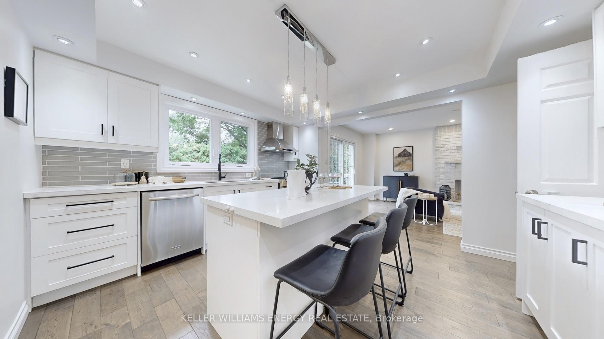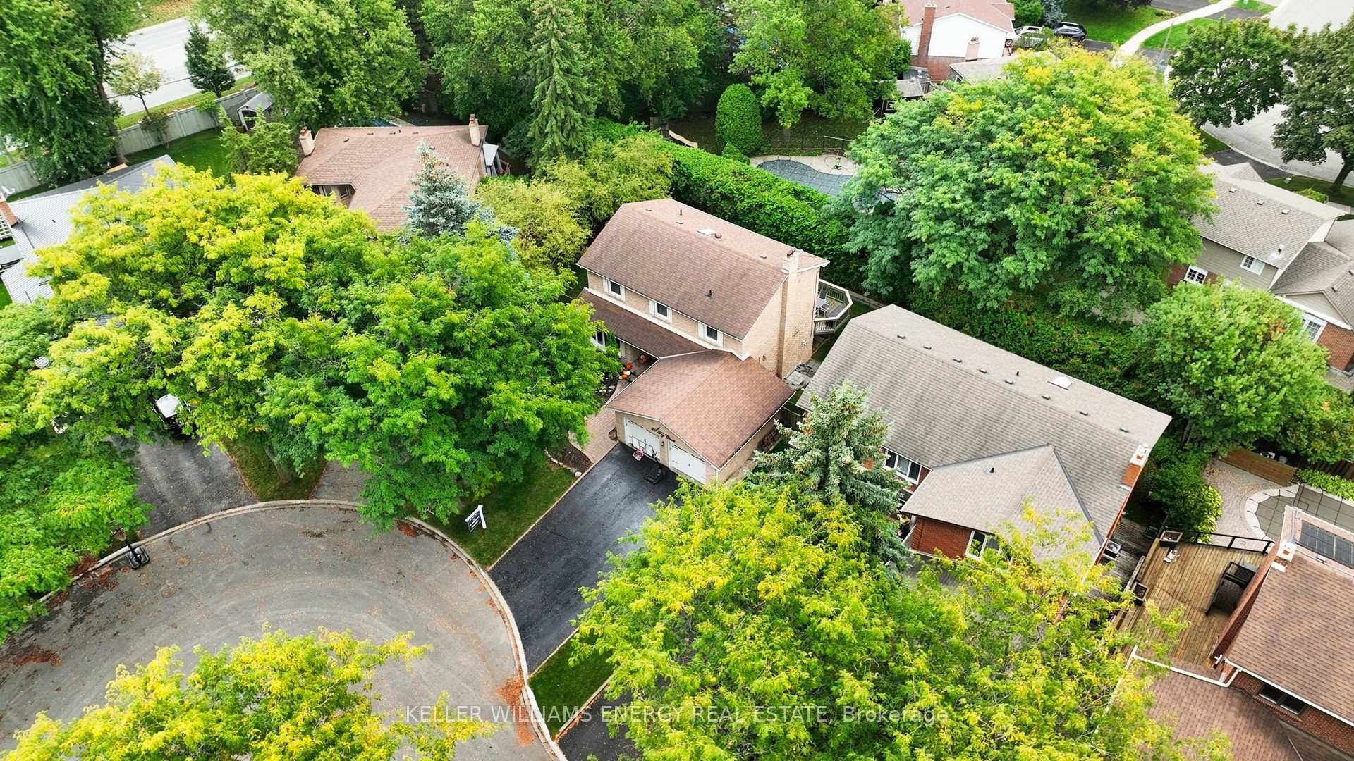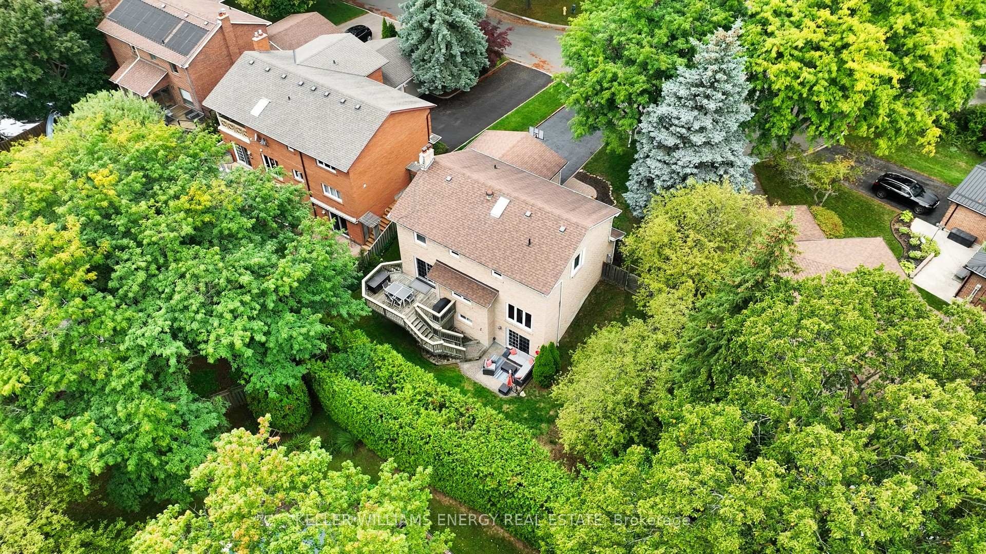 Nestled at the end of a quiet court, this move-in ready home enjoys a rare pie-shaped lot surrounded by mature trees and privacy. Inside, sunlight pours through large windows, creating a warm, inviting atmosphere. Hardwood floors flow across the main level, where open living and dining spaces set the stage for gatherings of any size. The kitchen stands out with stainless steel appliances, a chic grey tile backsplash, abundant cupboard space, and an island that provides both extra prep room and a casual dining spot beneath pendant lighting. Just steps away, the family room invites cozy evenings by the wood-burning fireplace, while sliding glass doors offer a seamless connection to the deck and private backyard. A main-floor powder room and convenient laundry round out this level. Upstairs, the primary suite is a true retreat with its walk-in closet and stunning custom ensuite showcasing an oversized open tile shower. A skylight brightens the upper level, while three additional bedrooms and a beautifully updated full bath provide comfort and flexibility for family and guests. The finished basement expands the living space with a fifth bedroom, a spacious recreation room, and a full bathroom with walk-in shower, along with direct walkout access to the tranquil backyard setting. Situated in highly sought-after Markham Village, this home is just minutes from historic Unionville, with shopping, dining, and entertainment all nearby. Families will also appreciate the excellent schools, York Region Transit, nearby parks, and Markham Stouffville Hospital all just moments away. **Recent upgrades: All windows (2022), attic insulation (2021), bathrooms (2020), fully finished basement (2020), Garage Door (2020), rear interlock stairs and retaining wall (2020), pot lights throughout (2020), California shutters (2020), new front entry door (2019), washer/dryer (2019)**