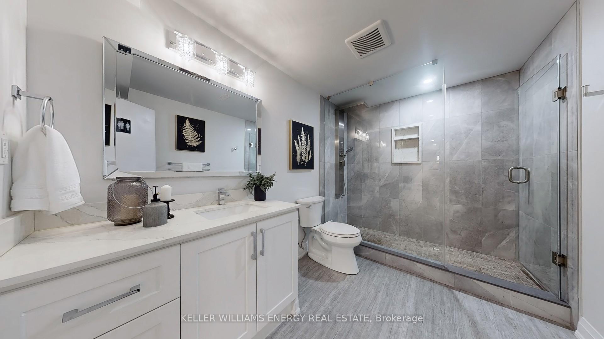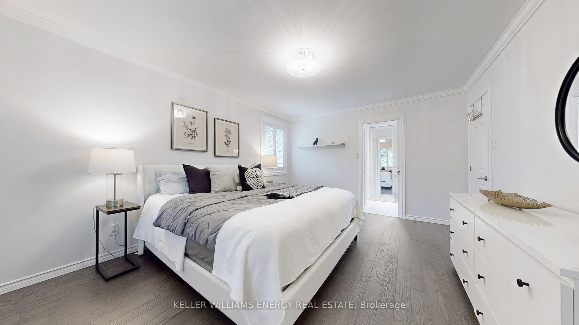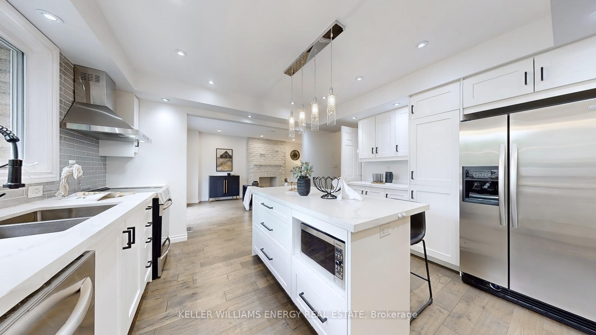 Nestled at the end of a quiet court, this move-in ready home enjoys a rare pie-shaped lot surrounded by mature trees and privacy. Inside, sunlight pours through large windows, creating a warm, inviting atmosphere. Hardwood floors flow across the main level, where open living and dining spaces set the stage for gatherings of any size. The kitchen stands out with stainless steel appliances, a chic grey tile backsplash, abundant cupboard space, and an island that provides both extra prep room and a casual dining spot beneath pendant lighting. Just steps away, the family room invites cozy evenings by the wood-burning fireplace, while sliding glass doors offer a seamless connection to the deck and private backyard. A main-floor powder room and convenient laundry round out this level. Upstairs, the primary suite is a true retreat with its walk-in closet and stunning custom ensuite showcasing an oversized open tile shower. A skylight brightens the upper level, while three additional bedrooms and a beautifully updated full bath provide comfort and flexibility for family and guests. The finished basement expands the living space with a fifth bedroom, a spacious recreation room, and a full bathroom with walk-in shower, along with direct walkout access to the tranquil backyard setting. Situated in highly sought-after Markham Village, this home is just minutes from historic Unionville, with shopping, dining, and entertainment all nearby. Families will also appreciate the excellent schools, York Region Transit, nearby parks, and Markham Stouffville Hospital all just moments away. **Recent upgrades: All windows (2022), attic insulation (2021), bathrooms (2020), fully finished basement (2020), Garage Door (2020), rear interlock stairs and retaining wall (2020), pot lights throughout (2020), California shutters (2020), new front entry door (2019), washer/dryer (2019)**