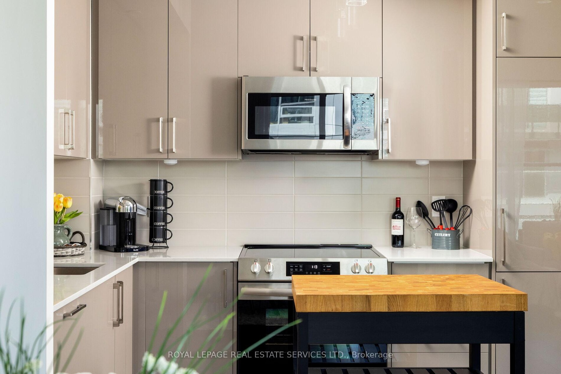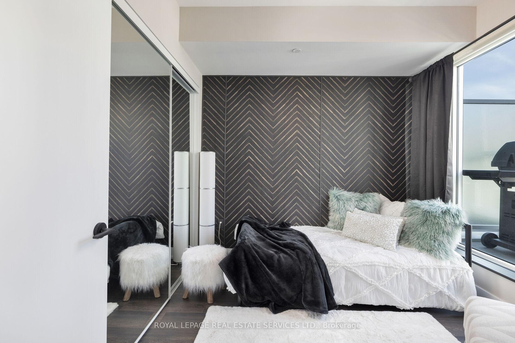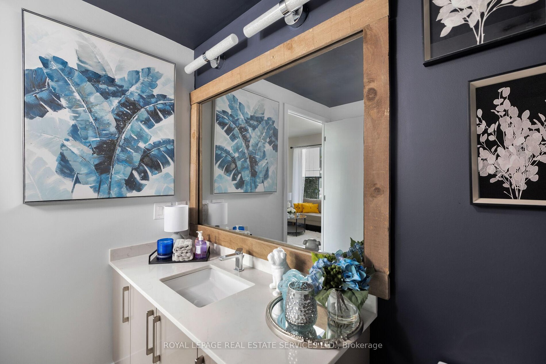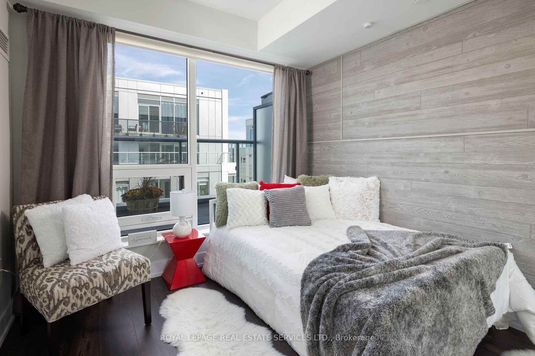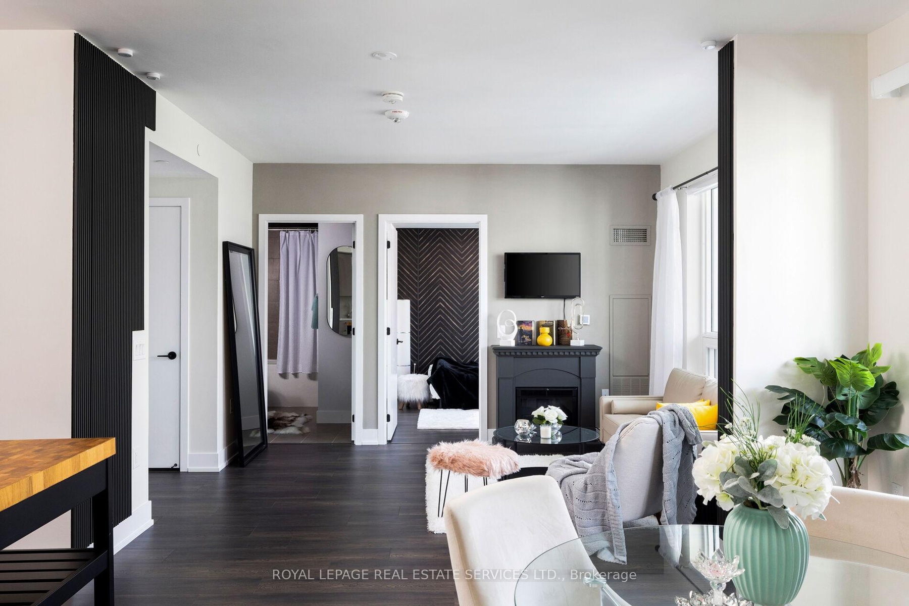 Beautiful and ready to move into! The stunning Cedar model, a 2-bedroom, 2-bathroom residence, spans 802 sq. ft. of contemporary living space with an additional 200 sq. ft. terrace equipped for barbequing & alfresco dining. Only 7th floor suites allow for BBQ. This posh suite features nine-foot ceilings, wide-plank laminate flooring, custom-designed cabinetry, quartz countertops, island, chic lighting, custom blinds & high-end kitchen appliances. The open-concept kitchen & living areas flow seamlessly to the terrace, offering exciting courtyard views and offers freestanding fireplace. The primary bedroom boasts a luxurious 3-piece ensuite with an oversized shower, while the second bedroom enjoys access to a lavish 4-piece bath with a deep soaker tub/shower combination. This suite promises a fabulous lifestyle in every detail, complete with in-suite laundry & underground parking and locker, even for visitors. Ideally located near Oakville Hospital & major highways, with easy access to Bronte GO Station, The Branch ensures convenience is always within reach. Immerse yourself in the sophisticated, cosmopolitan lifestyle offered by Branch Condominiums, a modern architectural gem nestled in the very desirable community of Palermo. This newly built development, consisting of two eight-story towers connected by a walking bridge, epitomizes refined living with stellar amenities designed for relaxation & well-being. At its core is a visually stunning courtyard & a grand three-story lobby leading to luxurious spaces like a state-of-the-art gym, yoga studio, rain room, steam room, media lounge, cocktail bar & a resort-style pool with a captivating linear gas fireplace. Credit check and references. No pets and no smoking.