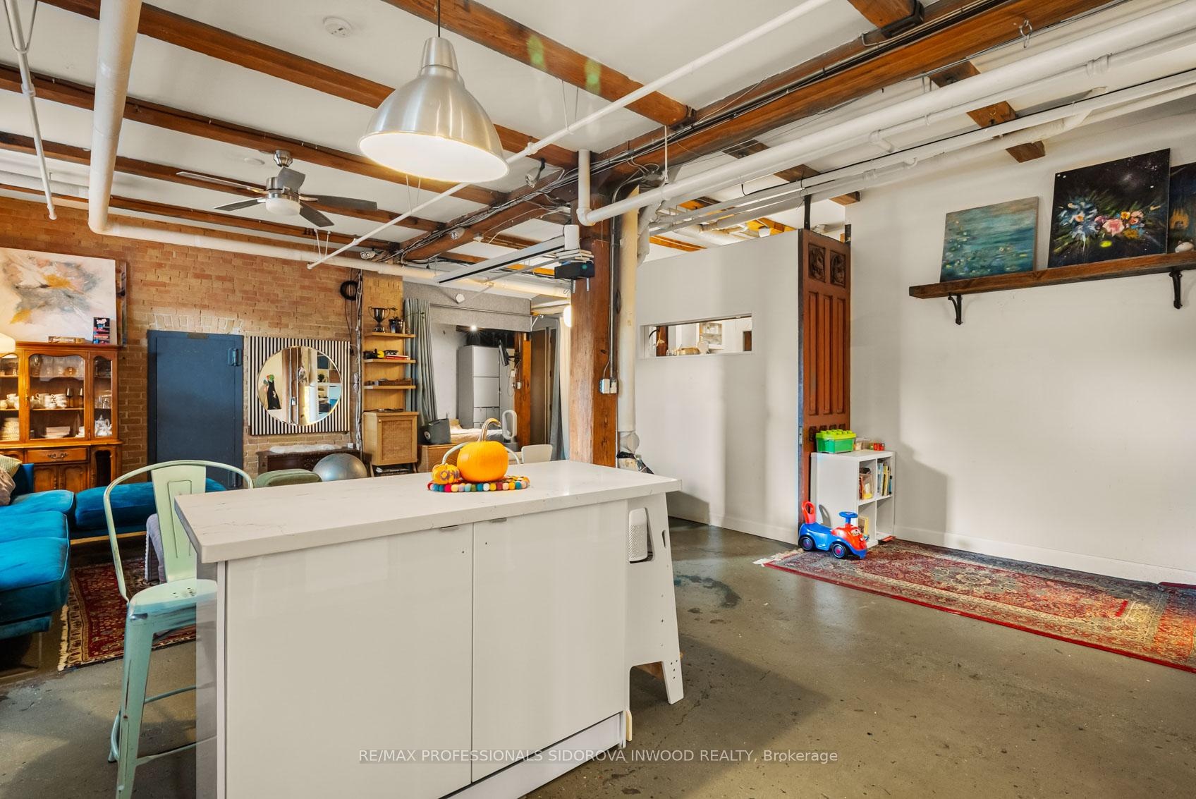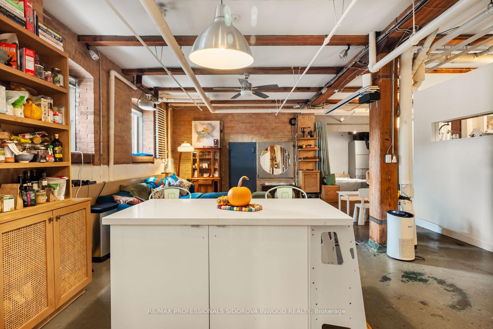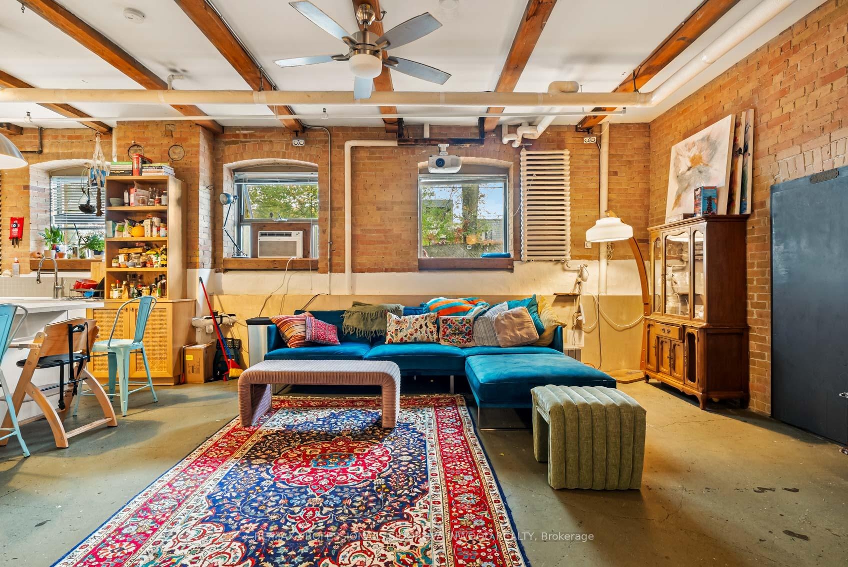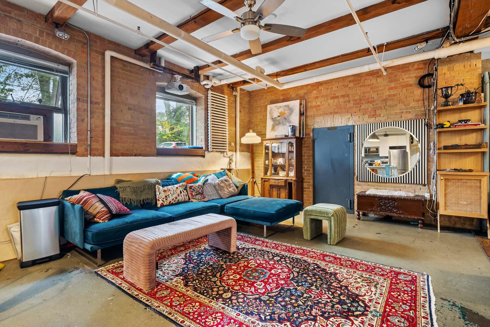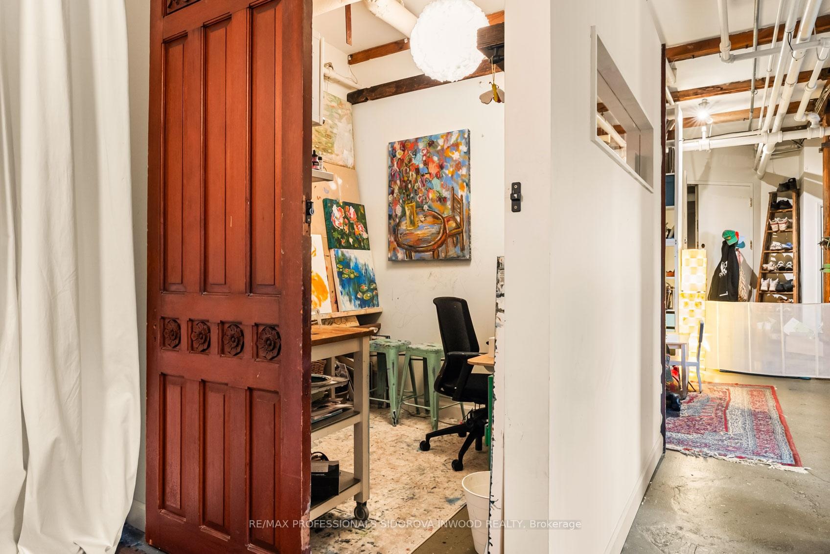 Rare opportunity to lease a stunning ground level true century hard loft located at 10 Morrow Avenue, steps from Roncesvalles Village & High Park. Multipurpose commercial studio or office space featuring wood post & beam, exposed brick, concrete floors, tall ceilings, and an original vault/safe with arched brick ceiling.Approximately 1100' of open concept space with studio room, storage closets, kitchen and bath. Available December 1, 2025 and priced at $3750 plus fixed utilities, TMI and parking, plus HST.