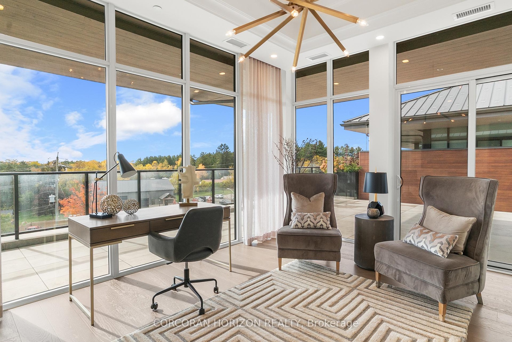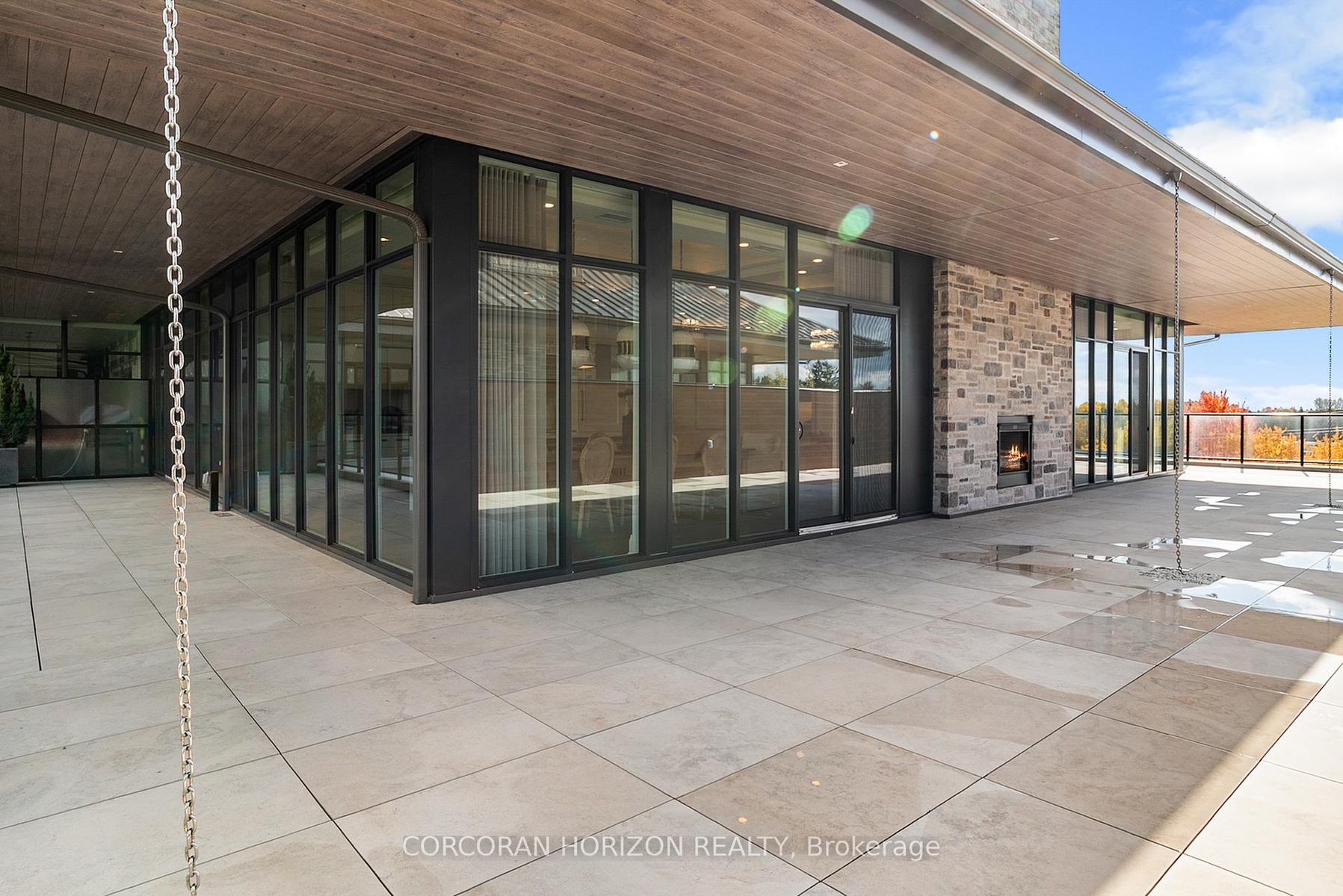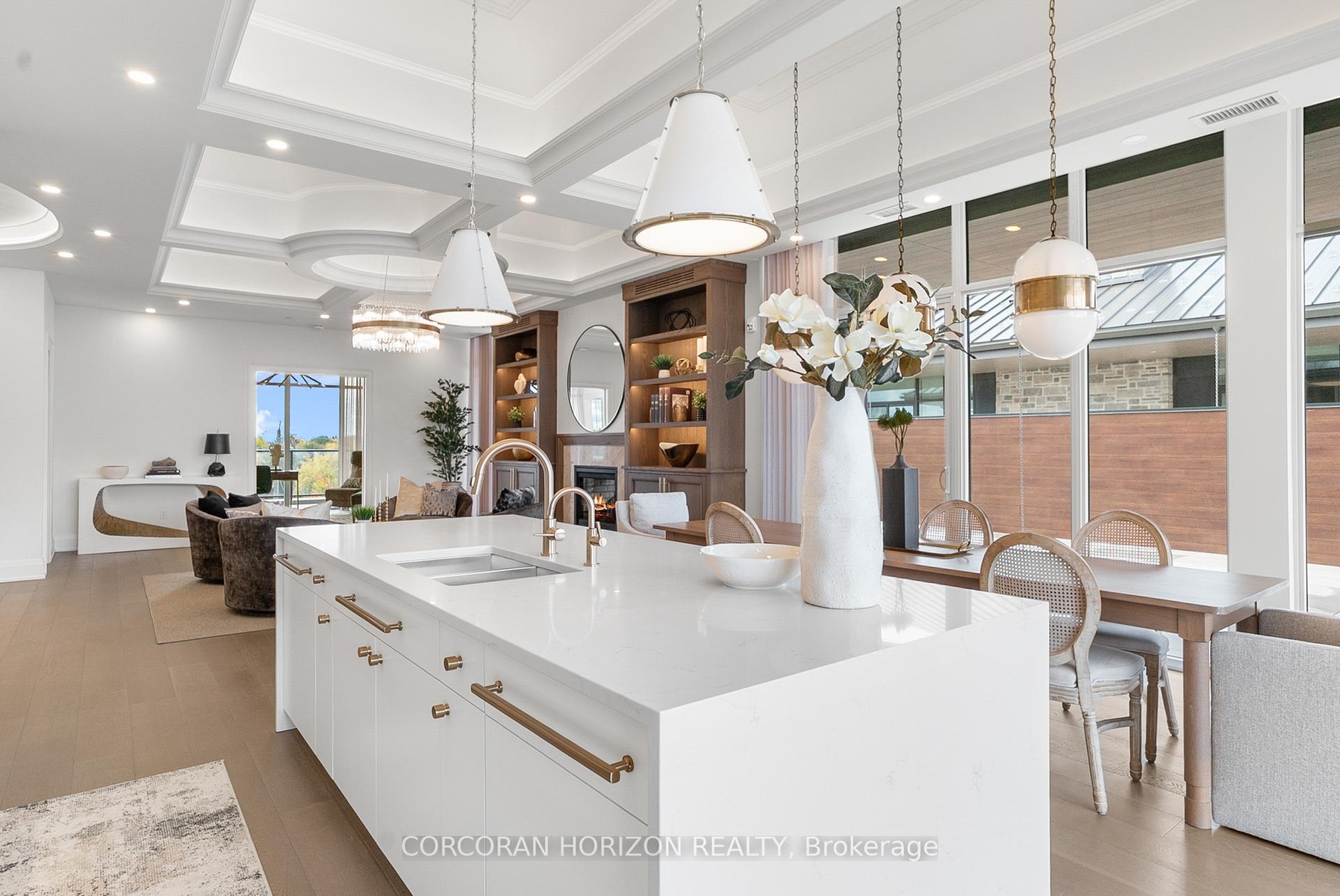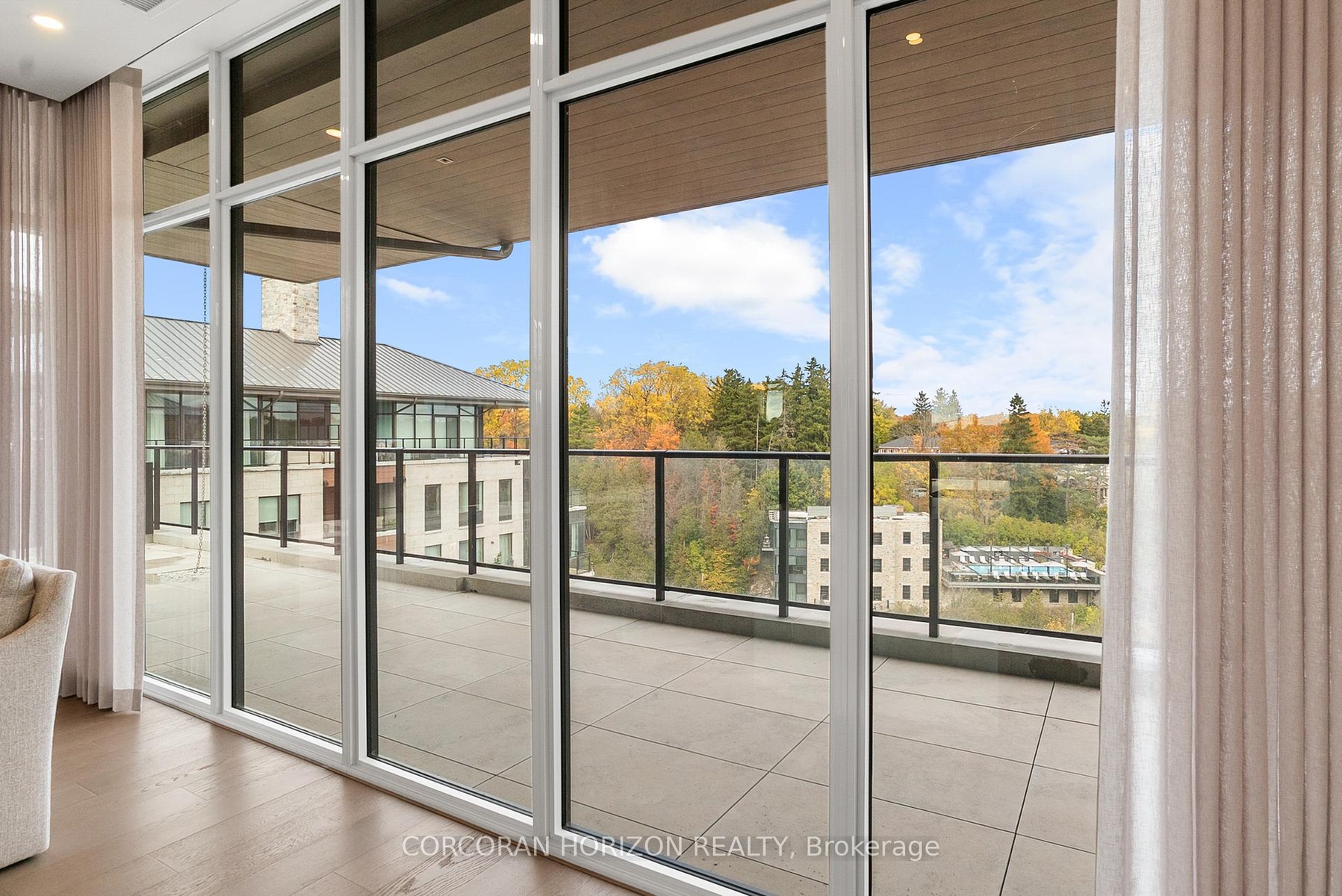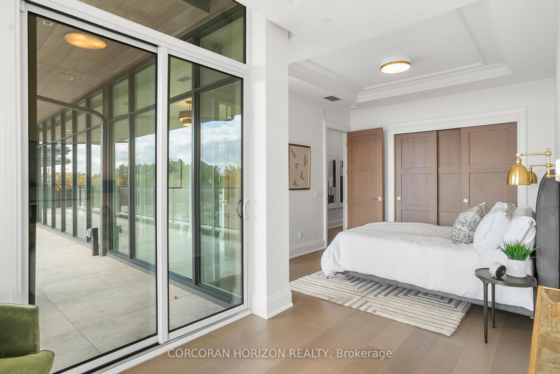 Introducing The Terrace Penthouse the premier residence at The Elora Mill Residences, offering an unmatched blend of indoor elegance and outdoor Luxury. This one-of-a-kind home features an expansive 2,400 sq.ft. wraparound terrace, complete with open-air and covered spaces, anchored by a striking double-sided stone fireplace perfect for year-round entertaining and relaxation. Inside, you will find 2289 sq.ft of living space and over $400,000 in premium upgrades which elevate every detail. Soaring 10-ft custom ceilings, softly curved architectural walls, and a dramatic two-sided fireplace set a sophisticated tone throughout the open-concept living space. Designed with the entertainer in mind, this home includes a wet bar, butlers pantry, and a chefs kitchen equipped with top-tier Miele appliances, extra-tall custom cabinetry, and an oversized island with bar seating. The open dining space is perfect for both casual dining or entertaining. The layout offers exceptional flexibility, with a spacious bonus room ideal for a home office, formal dining room or additional bedroom. The primary bedroom suite is thoughtfully positioned for privacy, featuring a walk-in closet and spa-inspired ensuite with a soaker tub, oversized glass shower, dual vanities, and private water closet. A second bedroom is located in its own wing with its own ensuite and sitting area providing comfort for guests or family members. Additional highlights include a grand entry with 2 closets, powder room, full laundry room, two parking spaces, and storage locker. Residents of The Elora Mill Residences enjoy resort-style amenities, including concierge service, a lobby coffee bar, gym and yoga studio, furnished terrace with river views, and an outdoor pool with spectacular views of the river. Located just steps from Elora's top restaurants, cafés, galleries, and shops this penthouse offers an unparalleled lifestyle in one of Ontario's most charming communities.