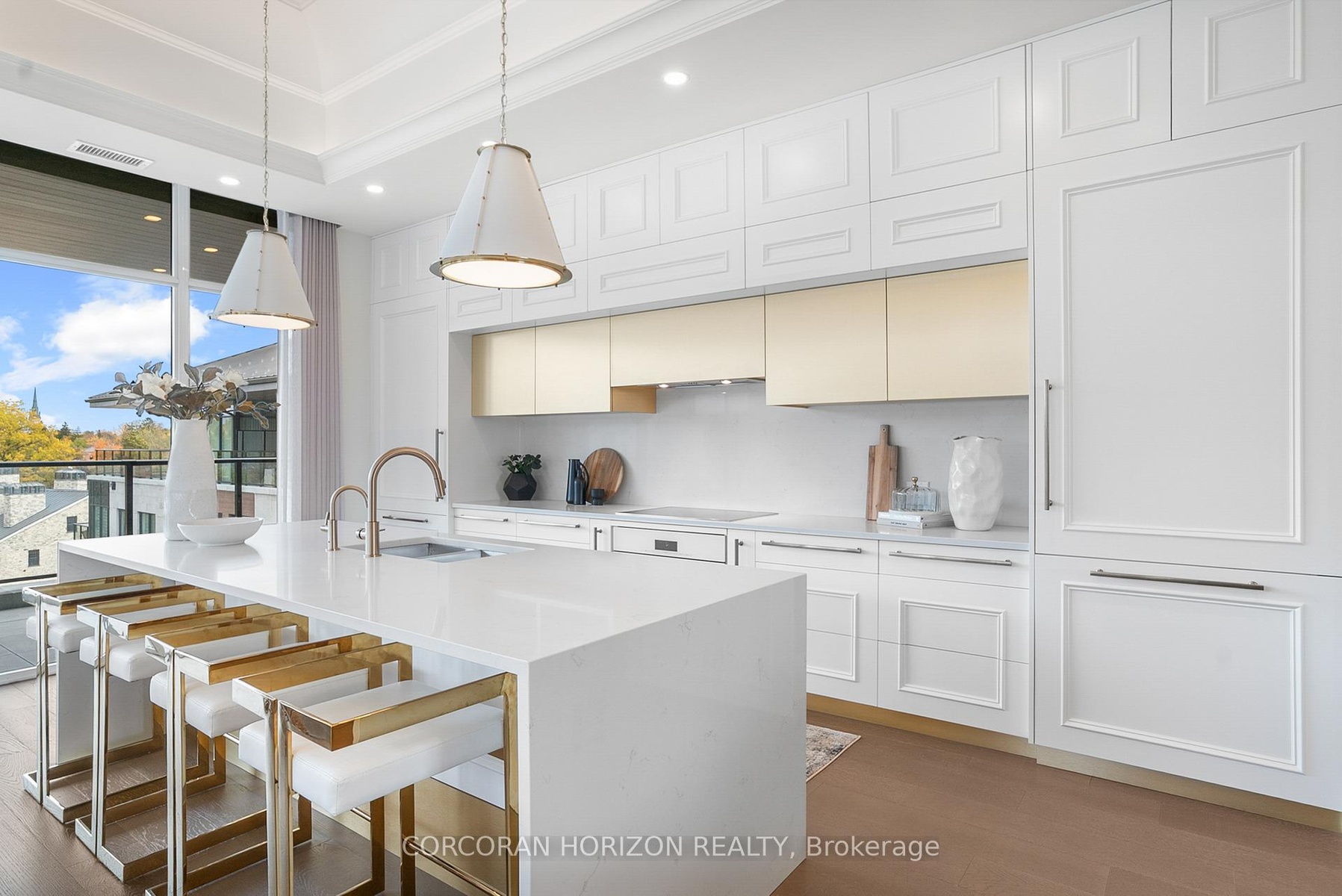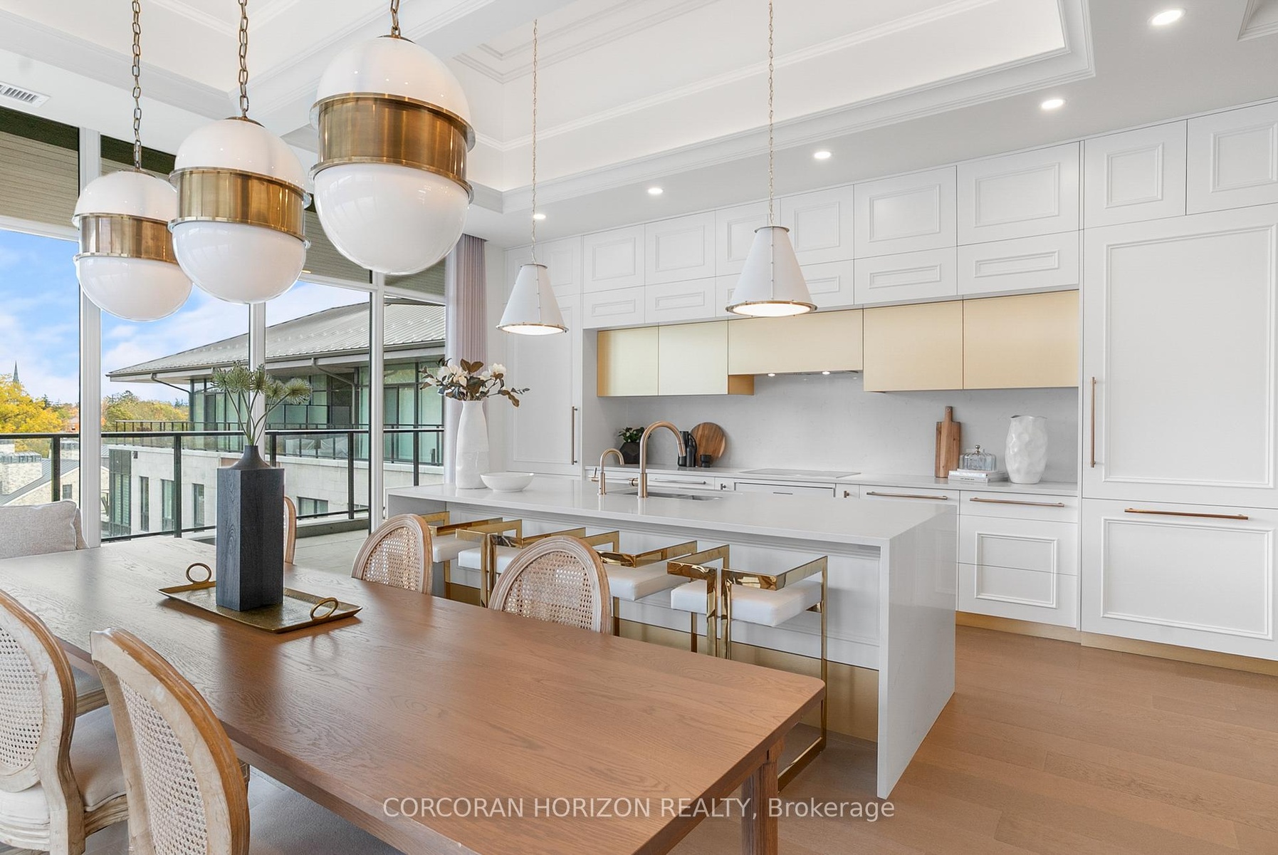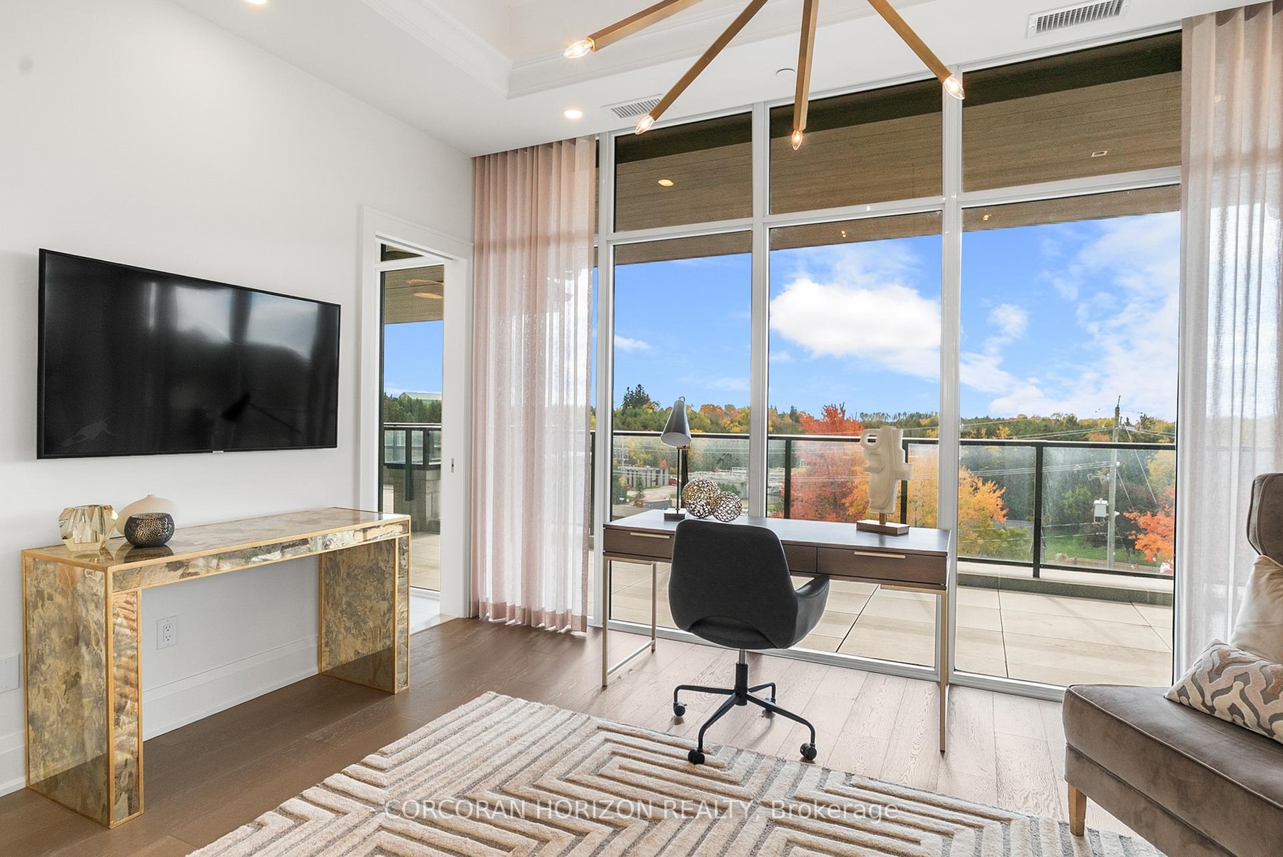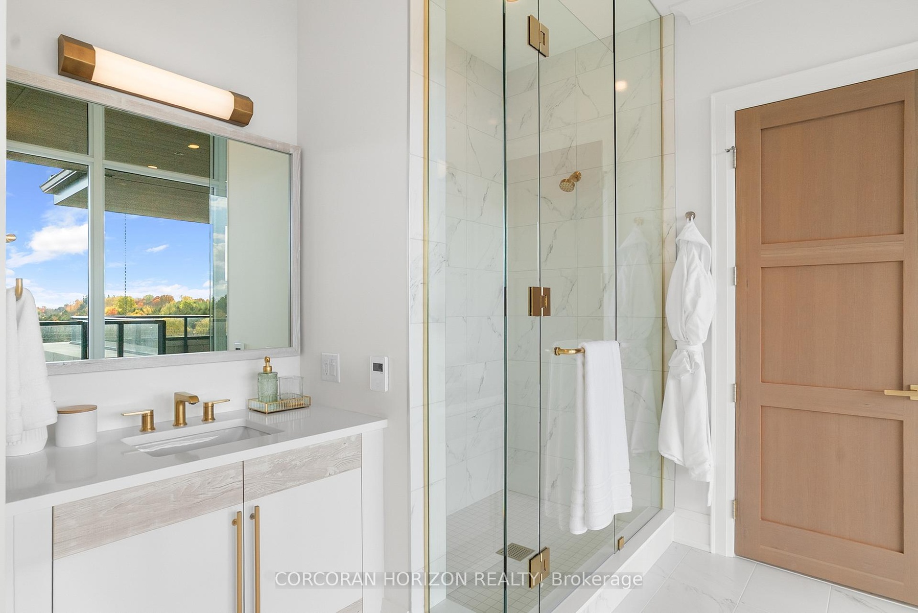 Introducing The Terrace Penthouse the premier residence at The Elora Mill Residences, offering an unmatched blend of indoor elegance and outdoor Luxury. This one-of-a-kind home features an expansive 2,400 sq.ft. wraparound terrace, complete with open-air and covered spaces, anchored by a striking double-sided stone fireplace perfect for year-round entertaining and relaxation. Inside, you will find 2289 sq.ft of living space and over $400,000 in premium upgrades which elevate every detail. Soaring 10-ft custom ceilings, softly curved architectural walls, and a dramatic two-sided fireplace set a sophisticated tone throughout the open-concept living space. Designed with the entertainer in mind, this home includes a wet bar, butlers pantry, and a chefs kitchen equipped with top-tier Miele appliances, extra-tall custom cabinetry, and an oversized island with bar seating. The open dining space is perfect for both casual dining or entertaining. The layout offers exceptional flexibility, with a spacious bonus room ideal for a home office, formal dining room or additional bedroom. The primary bedroom suite is thoughtfully positioned for privacy, featuring a walk-in closet and spa-inspired ensuite with a soaker tub, oversized glass shower, dual vanities, and private water closet. A second bedroom is located in its own wing with its own ensuite and sitting area providing comfort for guests or family members. Additional highlights include a grand entry with 2 closets, powder room, full laundry room, two parking spaces, and storage locker. Residents of The Elora Mill Residences enjoy resort-style amenities, including concierge service, a lobby coffee bar, gym and yoga studio, furnished terrace with river views, and an outdoor pool with spectacular views of the river. Located just steps from Elora's top restaurants, cafés, galleries, and shops this penthouse offers an unparalleled lifestyle in one of Ontario's most charming communities.