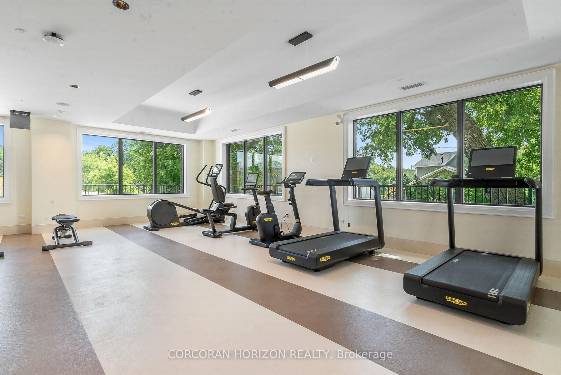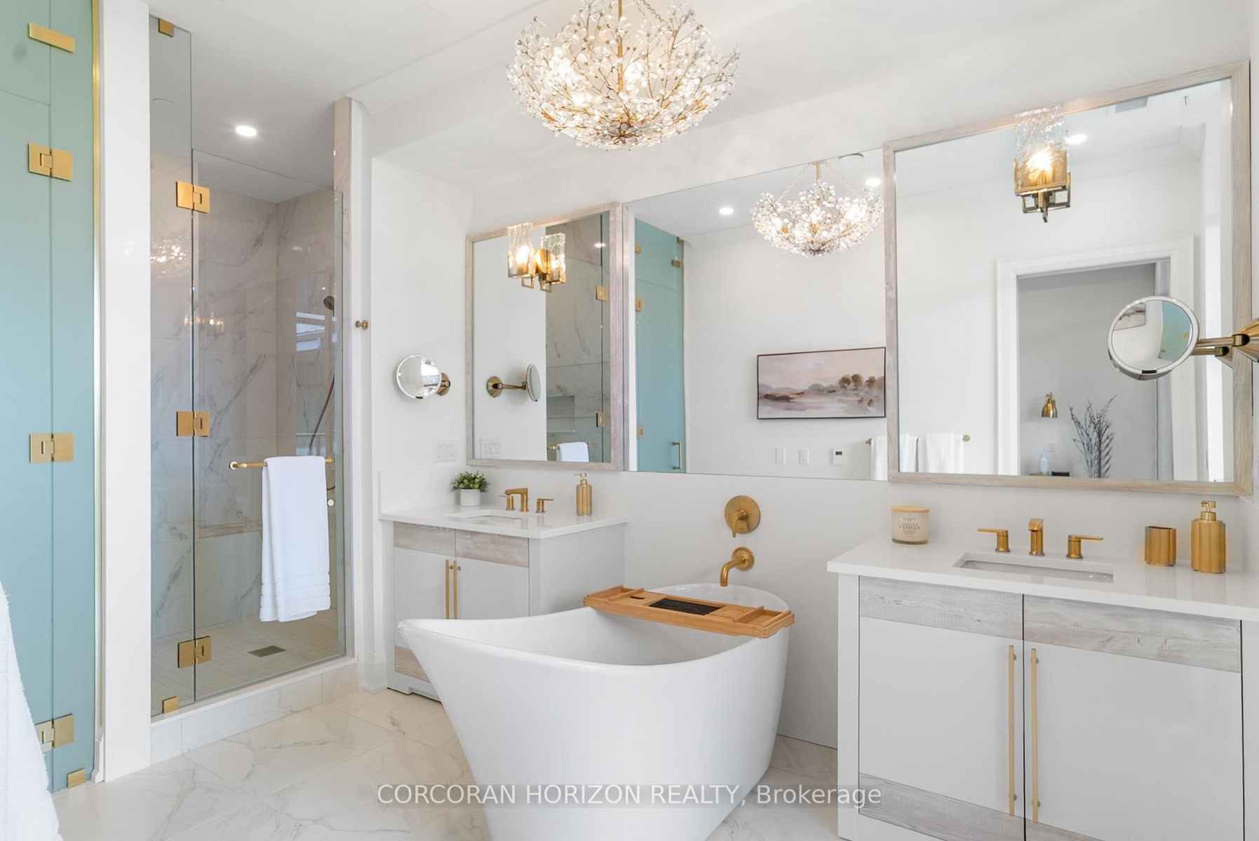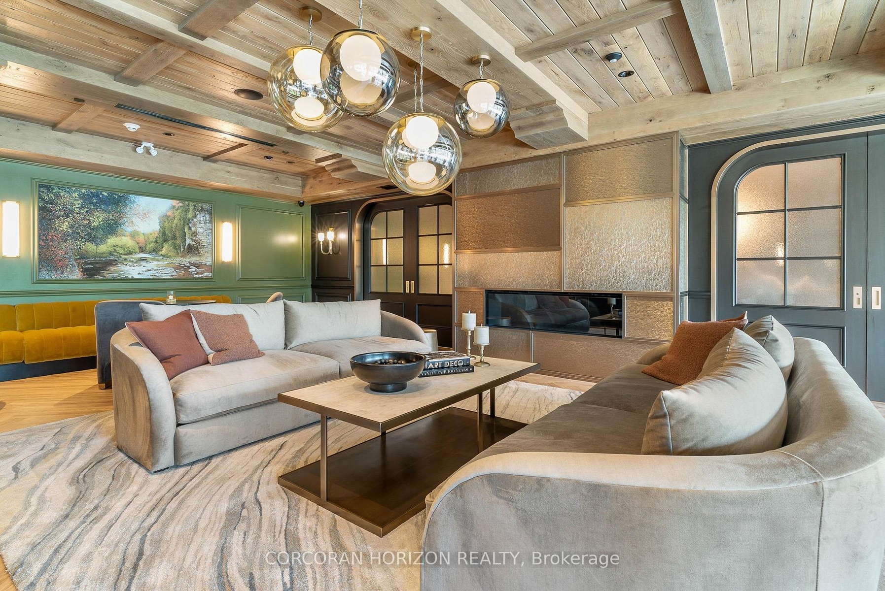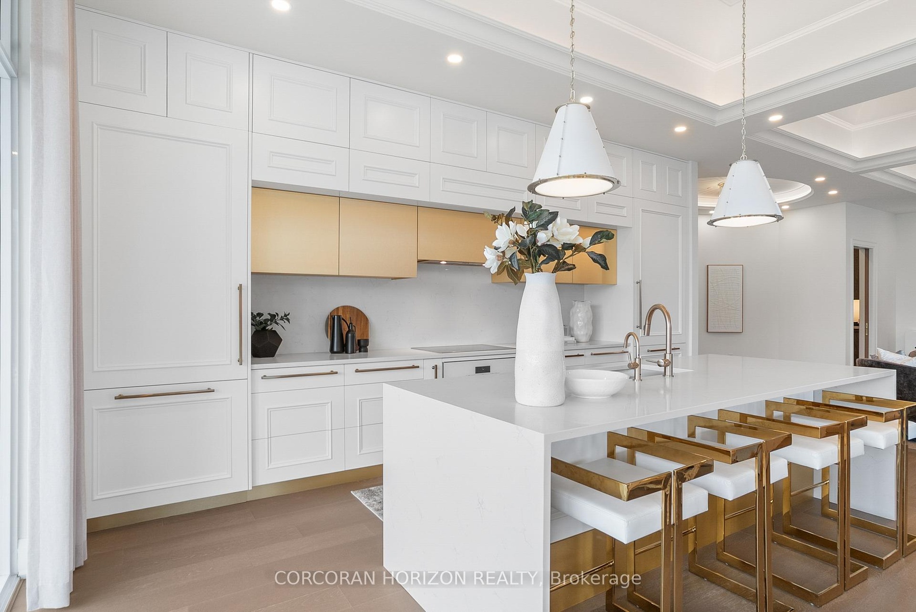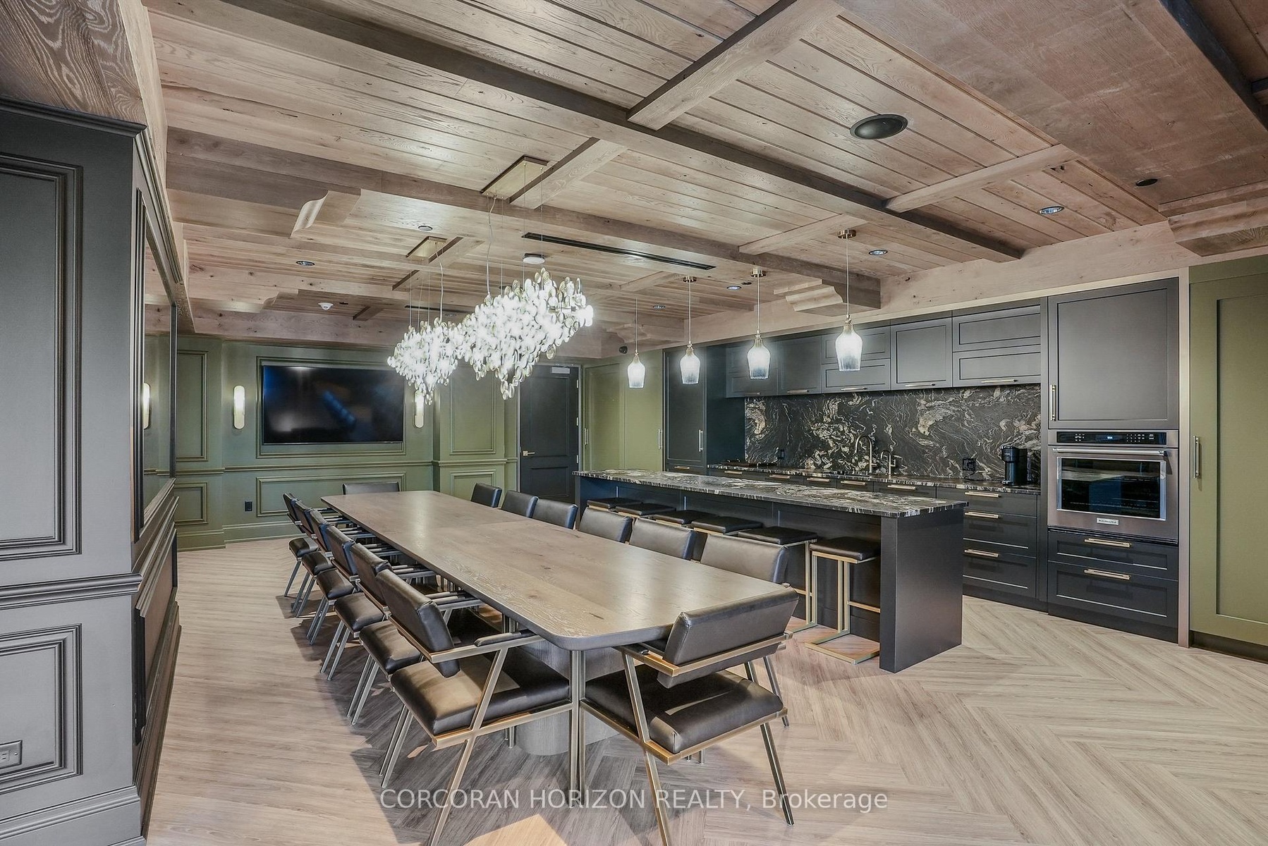 Introducing The Terrace Penthouse the premier residence at The Elora Mill Residences, offering an unmatched blend of indoor elegance and outdoor Luxury. This one-of-a-kind home features an expansive 2,400 sq.ft. wraparound terrace, complete with open-air and covered spaces, anchored by a striking double-sided stone fireplace perfect for year-round entertaining and relaxation. Inside, you will find 2289 sq.ft of living space and over $400,000 in premium upgrades which elevate every detail. Soaring 10-ft custom ceilings, softly curved architectural walls, and a dramatic two-sided fireplace set a sophisticated tone throughout the open-concept living space. Designed with the entertainer in mind, this home includes a wet bar, butlers pantry, and a chefs kitchen equipped with top-tier Miele appliances, extra-tall custom cabinetry, and an oversized island with bar seating. The open dining space is perfect for both casual dining or entertaining. The layout offers exceptional flexibility, with a spacious bonus room ideal for a home office, formal dining room or additional bedroom. The primary bedroom suite is thoughtfully positioned for privacy, featuring a walk-in closet and spa-inspired ensuite with a soaker tub, oversized glass shower, dual vanities, and private water closet. A second bedroom is located in its own wing with its own ensuite and sitting area providing comfort for guests or family members. Additional highlights include a grand entry with 2 closets, powder room, full laundry room, two parking spaces, and storage locker. Residents of The Elora Mill Residences enjoy resort-style amenities, including concierge service, a lobby coffee bar, gym and yoga studio, furnished terrace with river views, and an outdoor pool with spectacular views of the river. Located just steps from Elora's top restaurants, cafés, galleries, and shops this penthouse offers an unparalleled lifestyle in one of Ontario's most charming communities.
