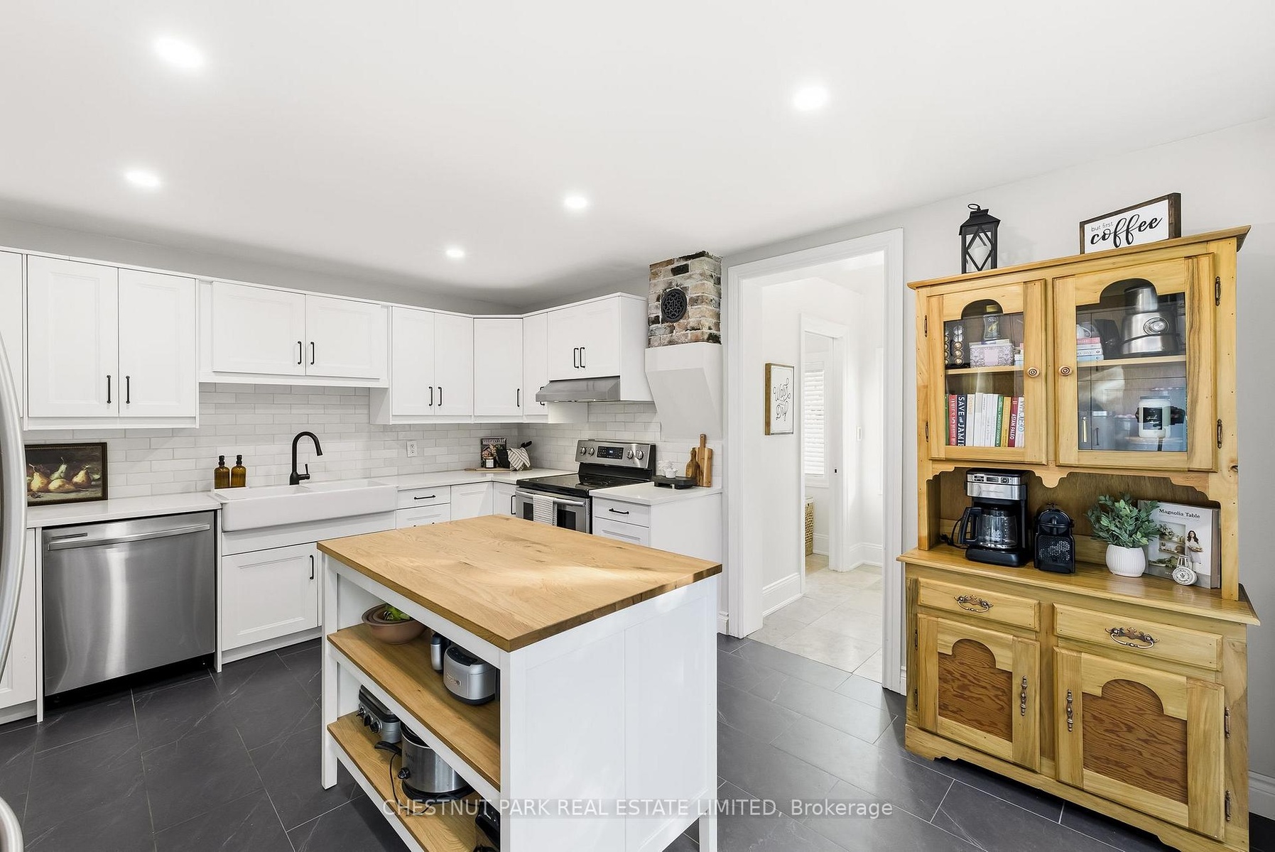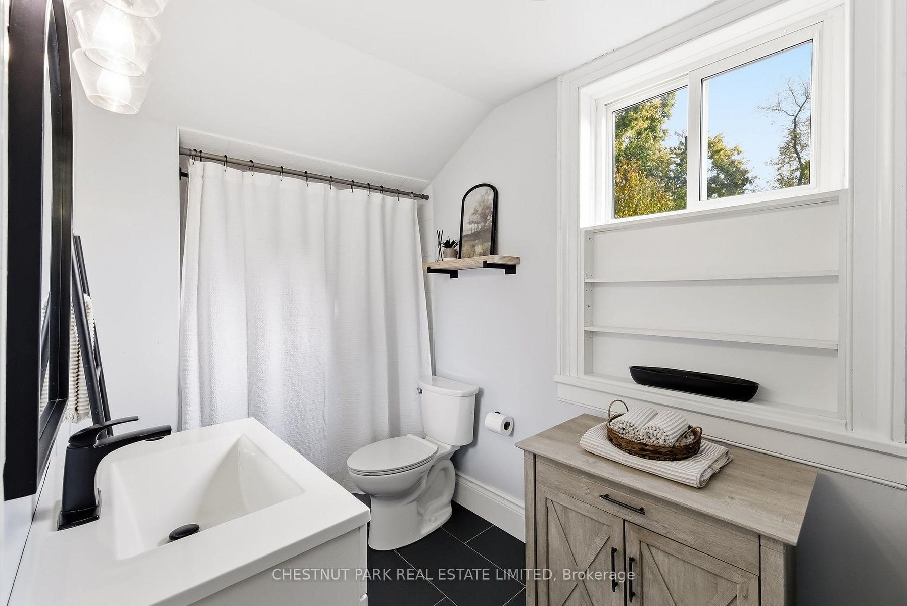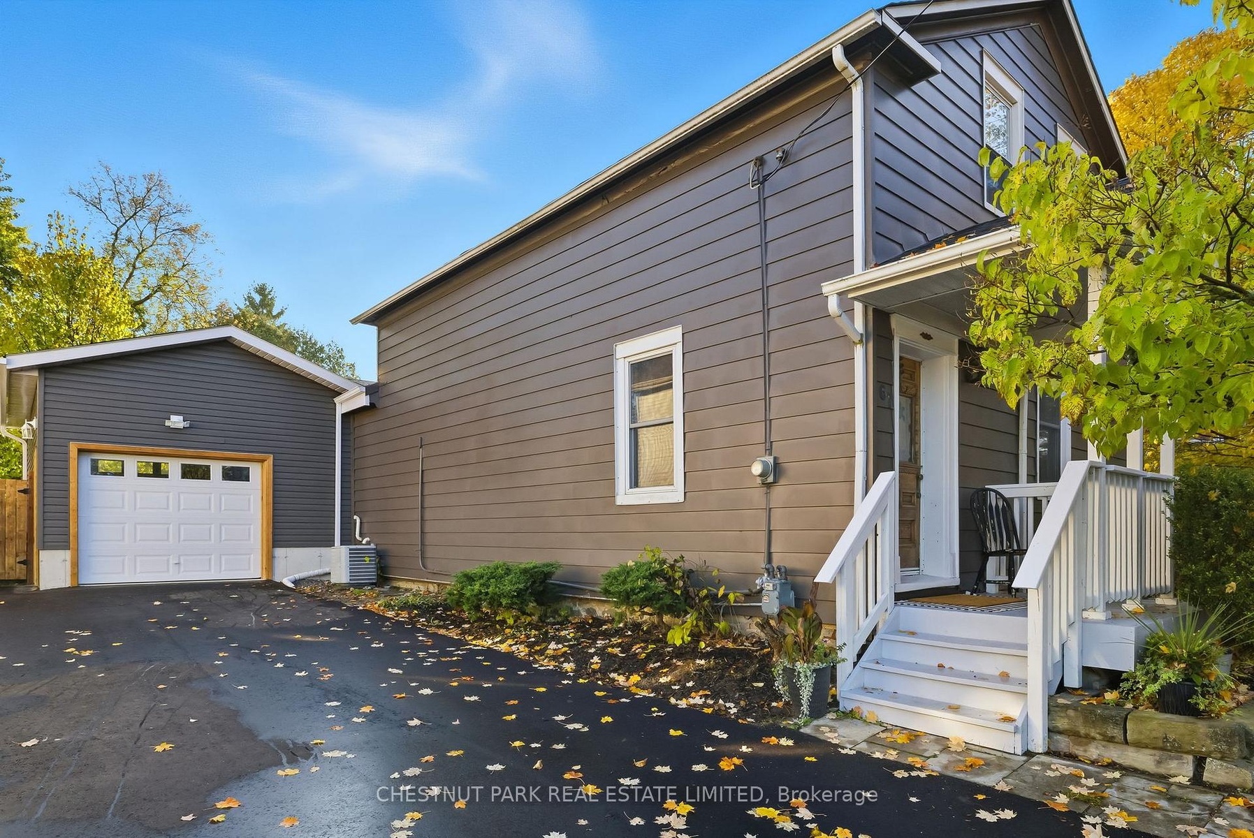 Downtown Uxbridge Century Home with Brand New Garage! Set on a private, fully fenced 66 x 165 ft lot, this detached 3-bedroom, 2-bathroom century home offers 1,828 square feet, and combines heritage charm with extensive updates throughout. A brand-new 16 x 24 ft garage (2024) is a standout feature, offering double doors (front and back) and direct access to the basement for convenient storage. Inside, the home has been painted top to bottom (2025) and features bright, spacious rooms with large windows and abundant natural light. The open-concept living and dining areas provide an inviting flow for everyday living and entertaining with newly finished (2025) white oak hardwood running throughout. A fully renovated kitchen (2024) showcases new tile flooring, custom cabinetry, quartz countertops, and a farmhouse sink, with a walkout (new door 2022) to the deck and backyard. The convenient main-floor laundry adds practicality to the thoughtful layout adjacent a main floor 3 piece bath with freestanding tub. Upstairs, the home's wide-plank pine hardwood floors, add to the historic feel of the home. The renovated bathroom (2021) features new flooring, updated shower tile surround, and a new vanity (2025), blending classic style with modern comfort. Major updates include driveway repaved (2025), furnace and A/C (2019), roof (~2015), and upstairs windows (2022). Outdoor living spaces include a covered front porch for morning coffee and a private back deck for relaxing summer afternoons.This property delivers the comfort of modern living paired with the enduring charm of a century home - all on a spectacular lot within walking distance to Uxbridge's favourite local shops, schools and trails. - *Extra rough-in under stairs for powder room. **Floorplans attached.