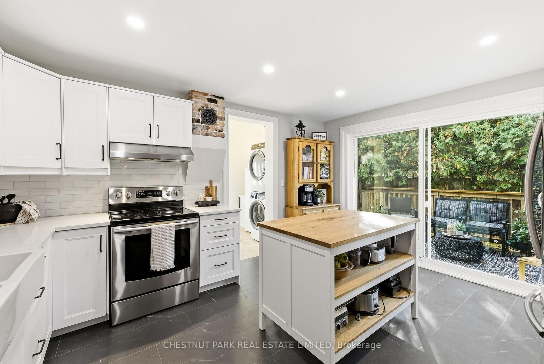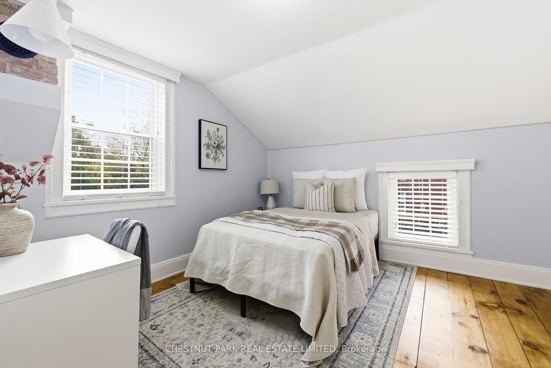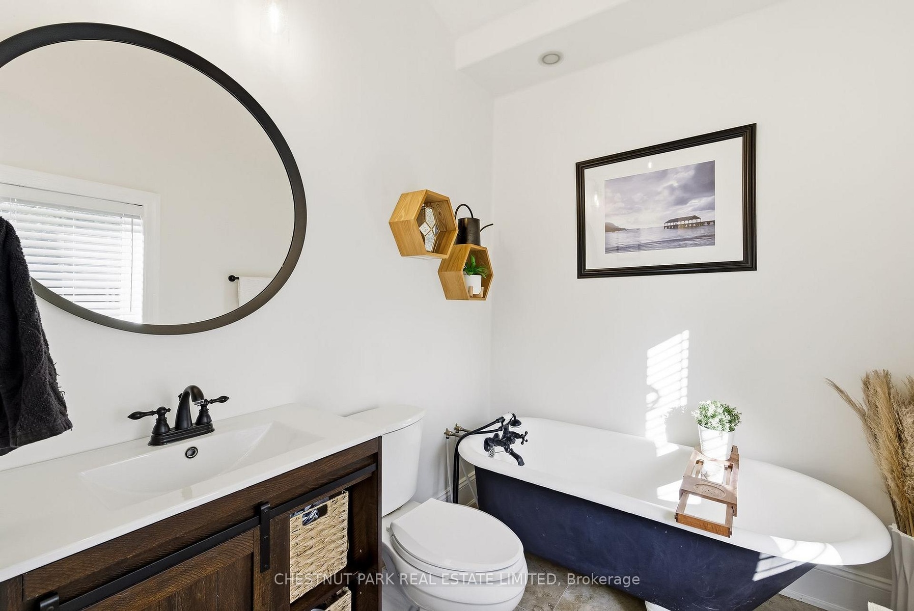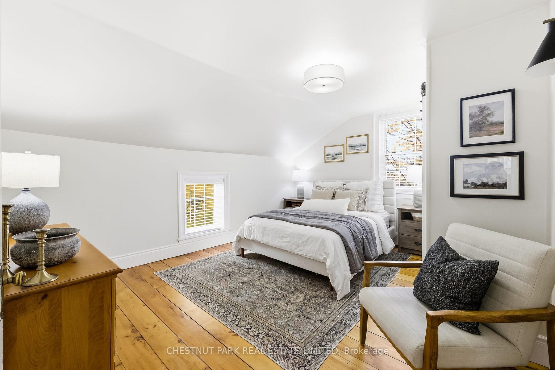 Downtown Uxbridge Century Home with Brand New Garage! Set on a private, fully fenced 66 x 165 ft lot, this detached 3-bedroom, 2-bathroom century home offers 1,828 square feet, and combines heritage charm with extensive updates throughout. A brand-new 16 x 24 ft garage (2024) is a standout feature, offering double doors (front and back) and direct access to the basement for convenient storage. Inside, the home has been painted top to bottom (2025) and features bright, spacious rooms with large windows and abundant natural light. The open-concept living and dining areas provide an inviting flow for everyday living and entertaining with newly finished (2025) white oak hardwood running throughout. A fully renovated kitchen (2024) showcases new tile flooring, custom cabinetry, quartz countertops, and a farmhouse sink, with a walkout (new door 2022) to the deck and backyard. The convenient main-floor laundry adds practicality to the thoughtful layout adjacent a main floor 3 piece bath with freestanding tub. Upstairs, the home's wide-plank pine hardwood floors, add to the historic feel of the home. The renovated bathroom (2021) features new flooring, updated shower tile surround, and a new vanity (2025), blending classic style with modern comfort. Major updates include driveway repaved (2025), furnace and A/C (2019), roof (~2015), and upstairs windows (2022). Outdoor living spaces include a covered front porch for morning coffee and a private back deck for relaxing summer afternoons.This property delivers the comfort of modern living paired with the enduring charm of a century home - all on a spectacular lot within walking distance to Uxbridge's favourite local shops, schools and trails. - *Extra rough-in under stairs for powder room. **Floorplans attached.