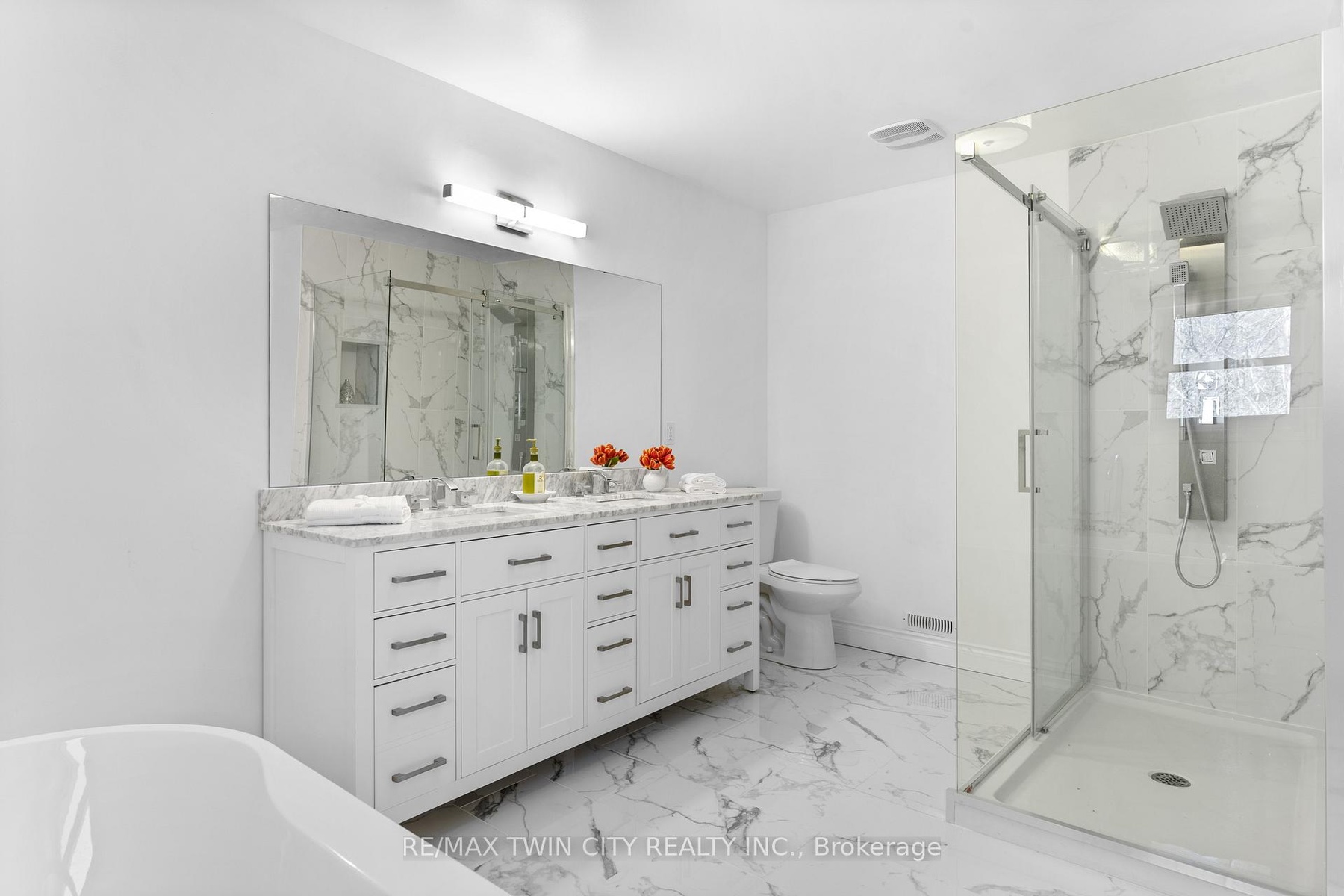 With over 4ooo sqft of usable space and 6 bedrooms, you will have plenty of room for the entire family. This home has had an amazing transformation that was completed in 2022 with every detail on point. As soon as you enter the front door you will quickly be impressed. On the main floor there is a powder room, laundry with entry to the garage, a door to the side yard and an office space which could also be used as a guest bedroom. Now the show stopper, the rest of the main floor is open concept! There are no walls between the family room, kitchen and dinning room. The kitchen was custom designed by Barzotti. Beautifully crafted and includes a giant 10-foot island that easily sits 6 people, quartz counter tops, stainless-steel appliances. Upstairs: Massive primary bedroom with ensuite (soaker tub, glass shower, double sinks), a large walk-in closet, 3 more large bedrooms and a full washroom. Downstairs: two bedrooms, rec room, kitchenette and full washroom, large storage room and cold room. Backyard: gorgeous stone patio approximately 560 sqft (2023), and a shed. Private yard with no back neighbors, a gate at the back fence to take walks through the forest which leads to Santa Maria Park. Great location. Close to schools, shopping, parks, river trails, and quick access to 401 or 403.