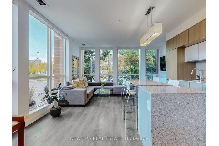 Experience vibrant downtown living in this modern 2-storey townhome featuring your own private entrance, in the heart of Toronto's exciting east side, 10 min walk to The Distillery, Leslieville, Cabagetown and Riverdale . Just moments from TTC, the Gardiner Expressway, and the Don Valley Parkway. Offering 1,234 sq.ft. of interior living space plus 202 sq.ft. of outdoor area, this corner unit is filled with natural sunlight through floor-to-ceiling windows. Includes 2 parking space (located directly below the unit for convenience) and 1 locker. Built to LEED Gold certification standards, the building features heat recovery ventilators, water-efficient faucets and toilets, and other eco-conscious systems that contribute to high environmental performance. The unit boasts 9-ft ceilings throughout most areas, professional landscaping with a built-in sprinkler system, and a bright, modern open-concept layout. Great long-term rental investment potential. excellent Walk, Bike and Transit Score. Unobstructed views of the MLSE Athletic Grounds featuring a FIFA-quality soccer field, running track, and outdoor hockey