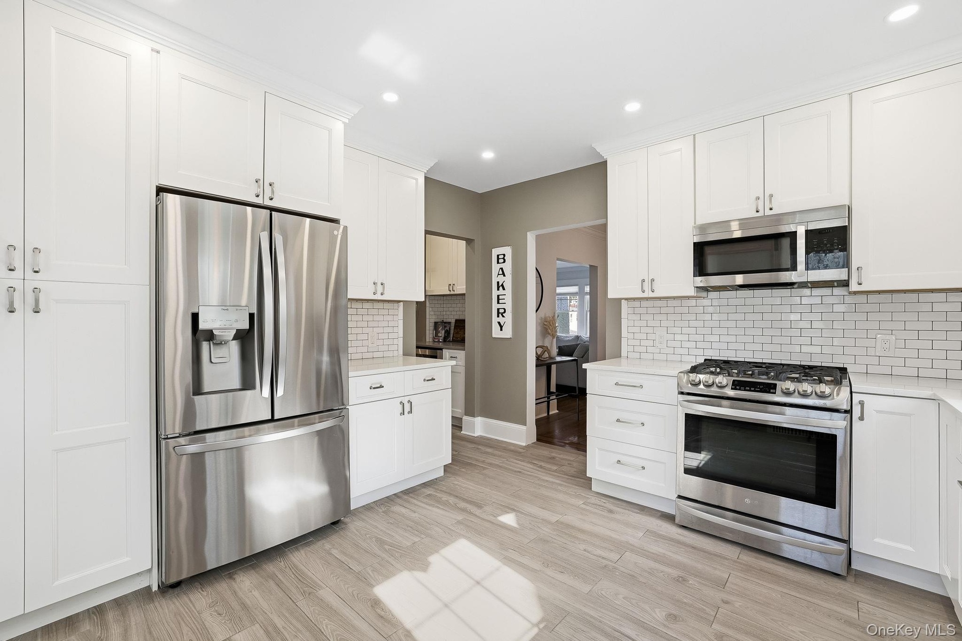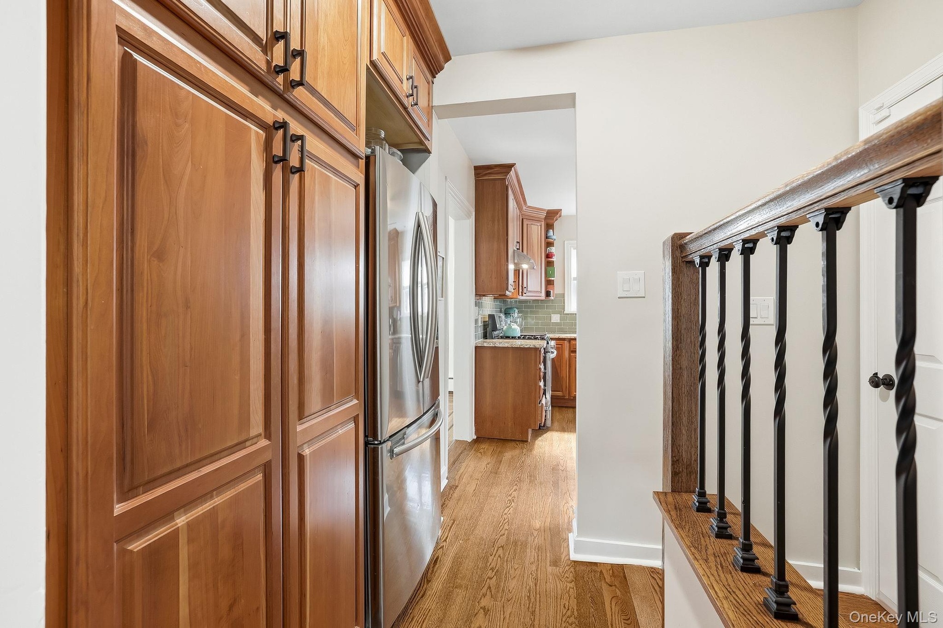 Excellent investment or multi-generational living opportunity! This beautifully maintained classic stucco two-family home is ideally located near Rye Ridge Shopping Center, Crawford Park, and downtown Port Chester, offering convenience, versatility, and turnkey appeal. Each tastefully updated unit features a bright and inviting layout with a spacious living room with fireplace, formal dining room, and kitchen with adjacent butler’s pantry and mudroom/laundry area. The first-floor unit enjoys direct access to the basement, which provides finished storage space and access to the attached oversized one-car garage, while the second-floor unit benefits from a walk-up attic offering ample finished storage or flex space. The home’s interiors blend timeless character with thoughtful modern updates, including gleaming hardwood floors, new windows, neutral paint colors, modern lighting, and efficient split-system climate control throughout. The kitchens are designed for both style and function. One featuring rich wood cabinetry with stainless steel appliances and tile backsplash, and the other showcasing crisp white cabinetry and generous storage. The bedrooms – 3 in each unit - are spacious and filled with natural light. The full baths are beautifully updated with white subway tile, sleek vanities, and modern fixtures. Outside, both units have access to the fenced-in backyard with manicured lawn, ideal for outdoor entertaining and relaxation. Whether you’re seeking a smart investment or a flexible living arrangement, this home delivers exceptional comfort, modern updates, and low-maintenance living in a sought-after Port Chester location.