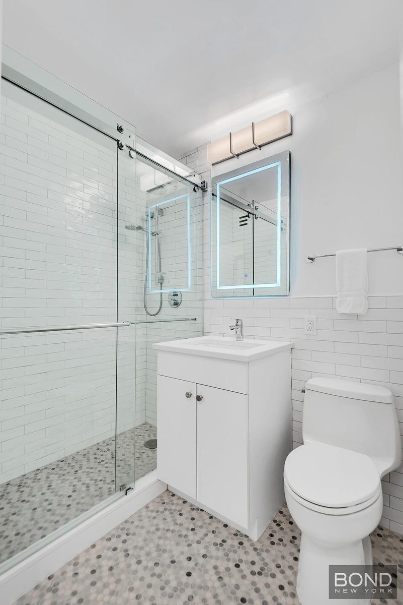 Walk into unit 26A and you are immediately greeted by a wall of North facing windows with dazzling wide open views. The open concept layout flows from the entry foyer into the spacious living/dining area, which holds a large closet. The renovated open kitchen is a beautiful combination of classic style and casual sophistication. Designer stainless steel appliances and the palette of whites in the countertop, textured subway tiles and cabinets is design with no expiration date! . The bedroom, positioned away from the main living area, offers privacy and quiet with more stunning city views, plus a walk in closet. The renovated bath is adjacent to the bedroom. With a walk in shower, cool palette of white and gray tiles and marble flooring it feels both luxurious and modern.