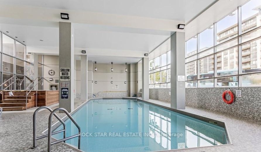 Located at Thornhill Towers, this move-in ready 1 bedroom is on the 5th floor facing north. Close to all amenities - schools, public transportation, Highway, grocery & restaurants. Bight open concept kitchen over looking the dining and living area with walk-out balcony. Just over 600 sq feet with no carpet. Good size bedroom with double sliding closet doors. Amenities include 24 hour security, gym, party room, pool, etc.