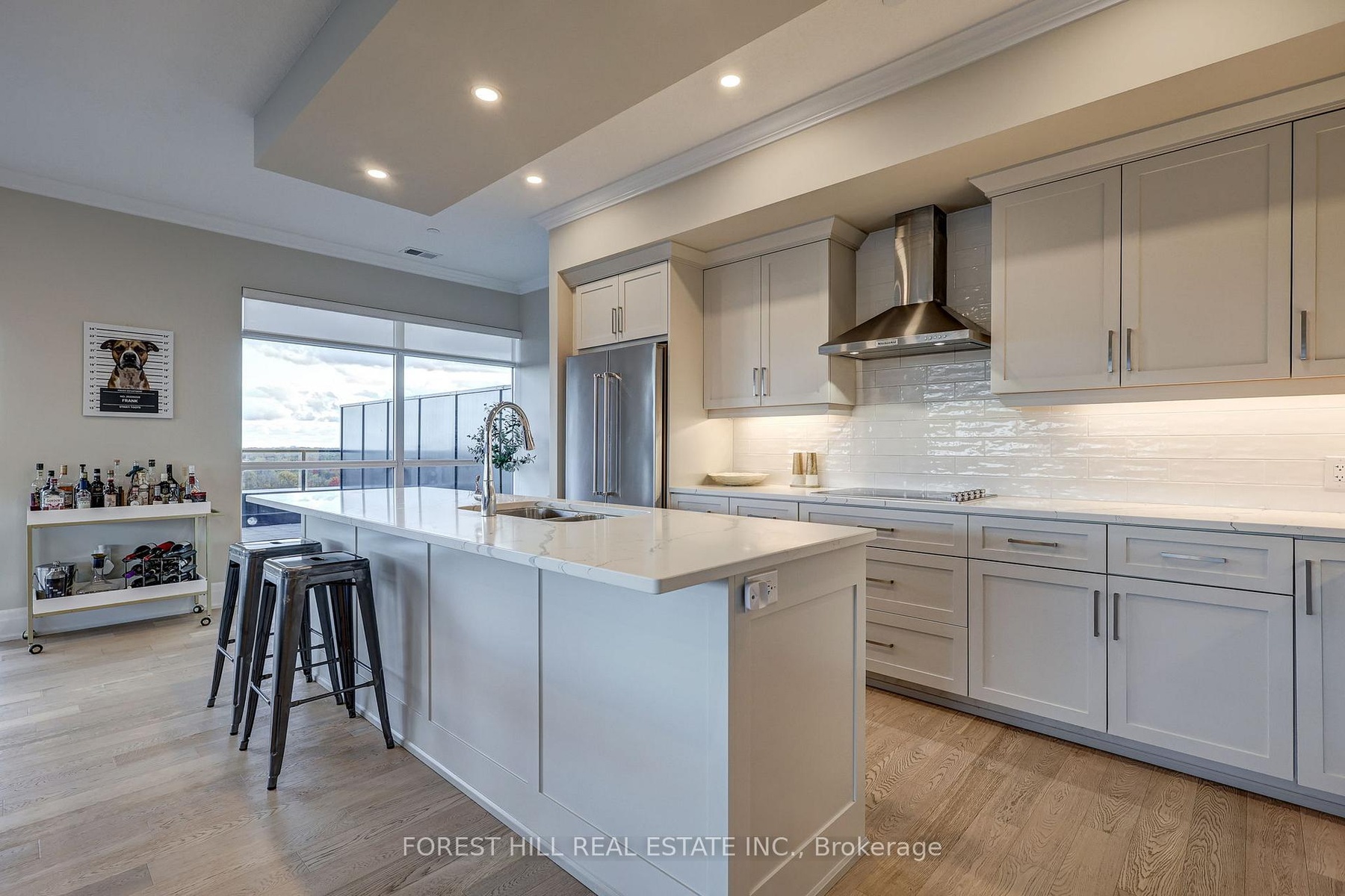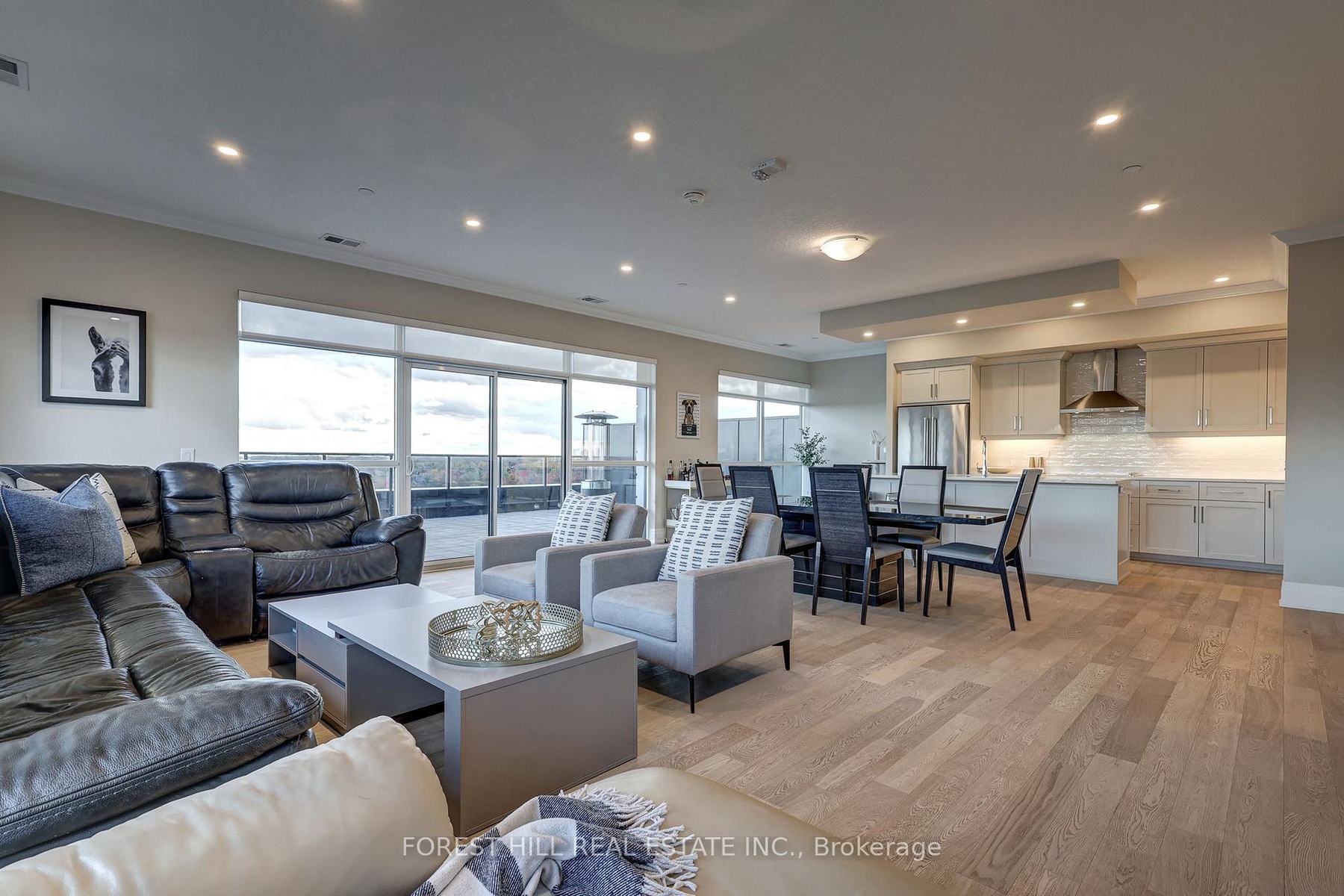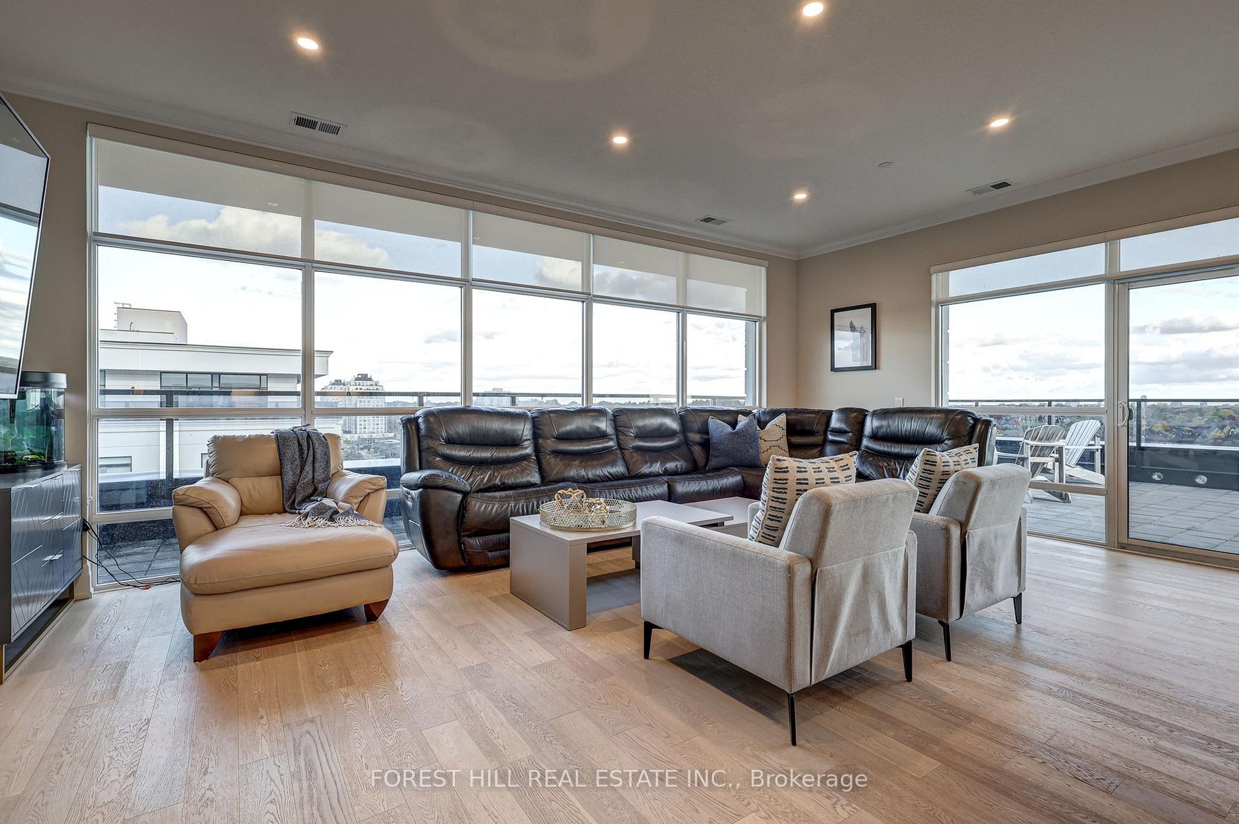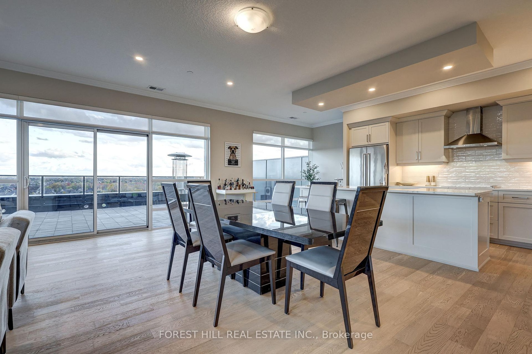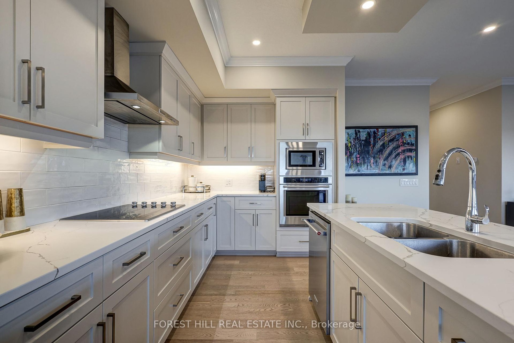 Luxury Penthouse Living at NorthLink. Experience elevated living in this one-of-a-kind penthouse suite at NorthLink - offering nearly 1,800 sq ft of sophisticated interior space and an extraordinary wrap-around terrace of almost 1,000 sq ft with breathtaking panoramic views over the lovely Forest City. Flooded with natural light through floor-to-ceiling windows, this 3-bedroom, 2-bath residence combines refined finishes with comfort and functionality. The chef's kitchen features custom cabinetry, quartz countertops, a full KitchenAid appliance package (including dual wall ovens and wine fridge), and an oversized island perfect for entertaining. The primary suite offers stunning views, a large walk-in closet with a custom closet system, a spa-inspired ensuite with heated floors, double vanity and a glass-enclosed shower. Two additional bedrooms provide flexibility for guests, a home office, or den. Enjoy rich engineered hardwood floors, custom storage, in-suite laundry, and two premium underground parking spaces - plus a large private locker. Residents enjoy access to exceptional on-site amenities: pickleball courts, a fitness centre, golf simulator, guest suite and scenic walking/bike paths. Located moments from Masonville's shopping, dining and the city's best recreation, this penthouse offers the ultimate in North London luxury living.