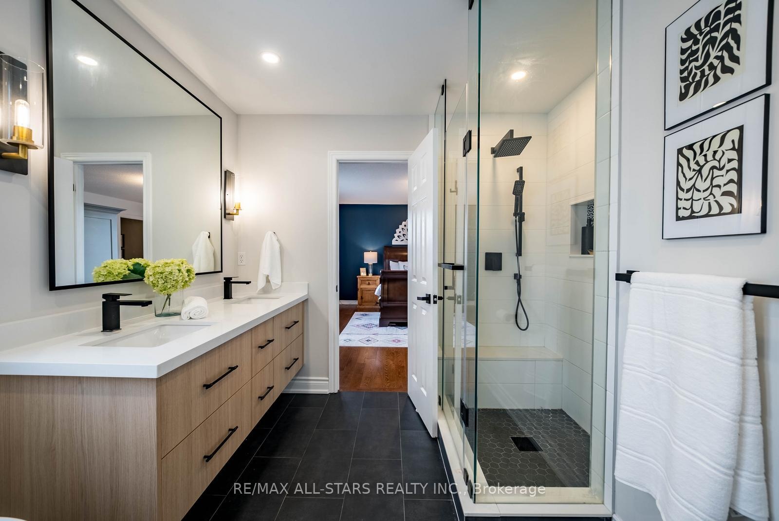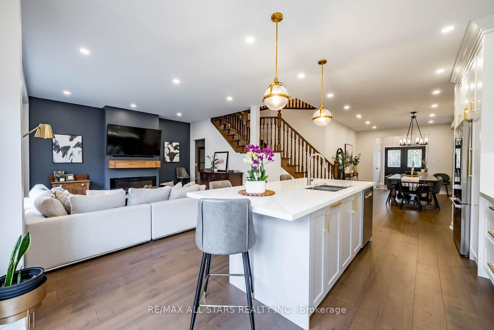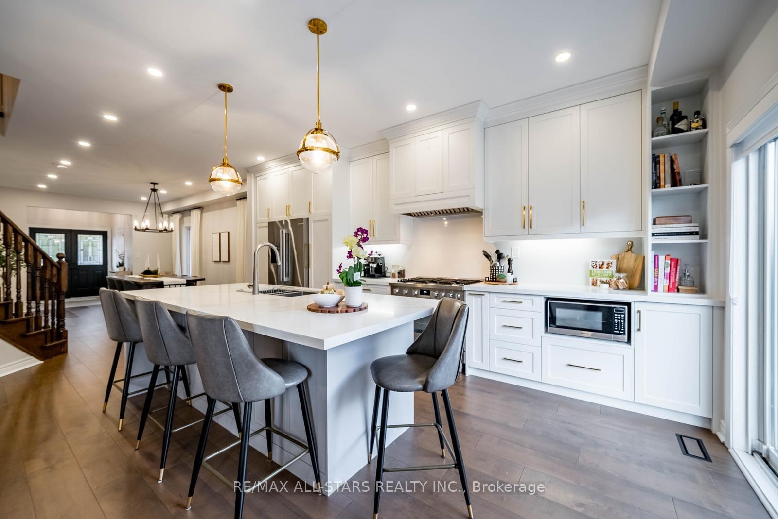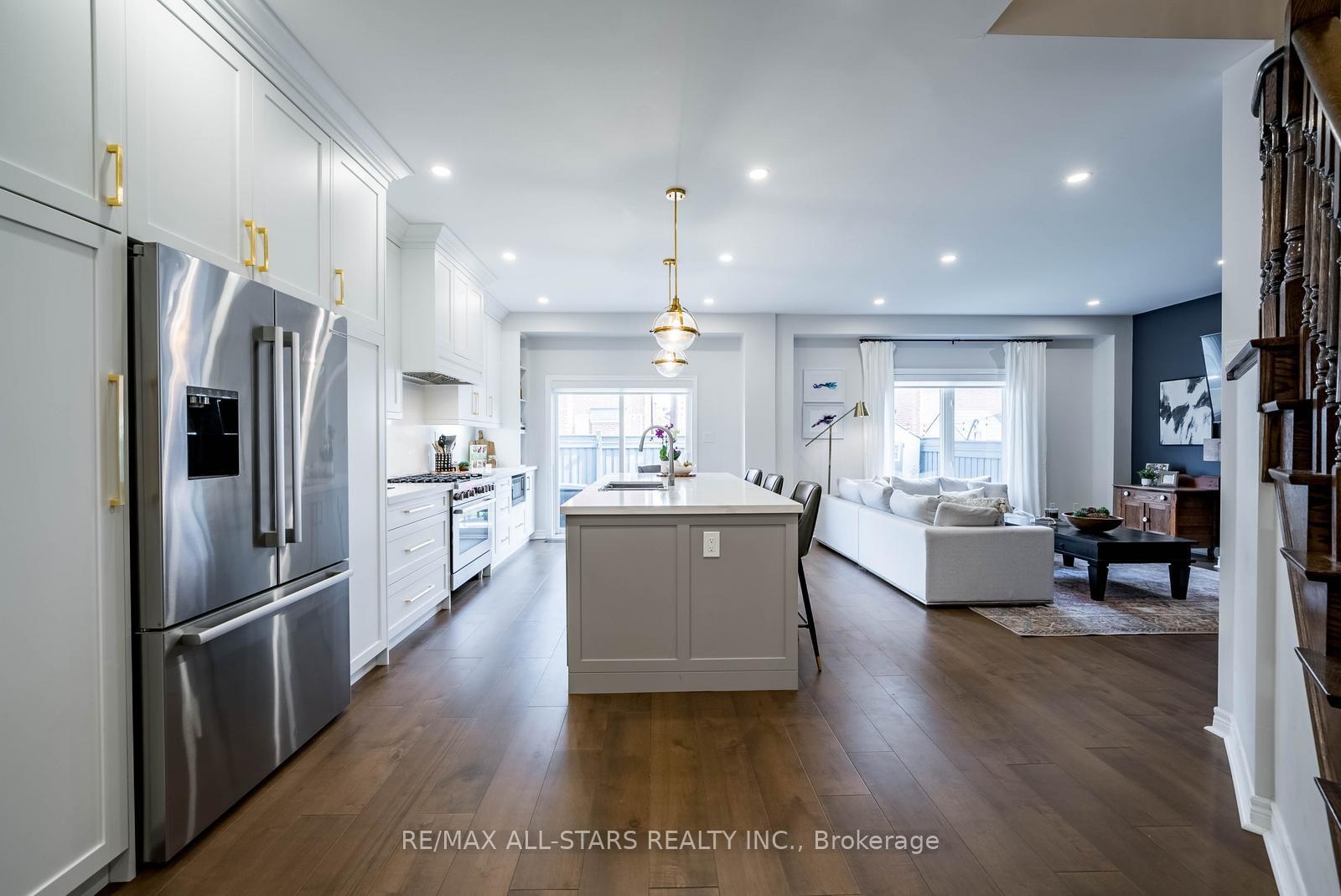 Get ready to be impressed! This stunning 4-bedroom, 4-bathroom home on a quiet, family-friendly street offers style, comfort, and convenience. Featuring 9-foot ceilings, elegant flooring, and designer lighting, the open-concept main floor includes a beautifully renovated two-tone kitchen with quartz counters, high-end appliances, and a spacious island that flows into the inviting family room with fireplace. Upstairs, the private primary suite includes a walk-in closet and updated ensuite, while three additional bedrooms share another full upgraded bath and a convenient laundry room. The finished basement adds flexible living space with a 4-piece bath - perfect for a rec room, gym, or guest suite. Enjoy a low-maintenance backyard with a stone patio and greenery. Located near top-rated schools, parks, GO Stations, and Stouffville's vibrant Main Street - this modern, updated move-in-ready home truly has it all!