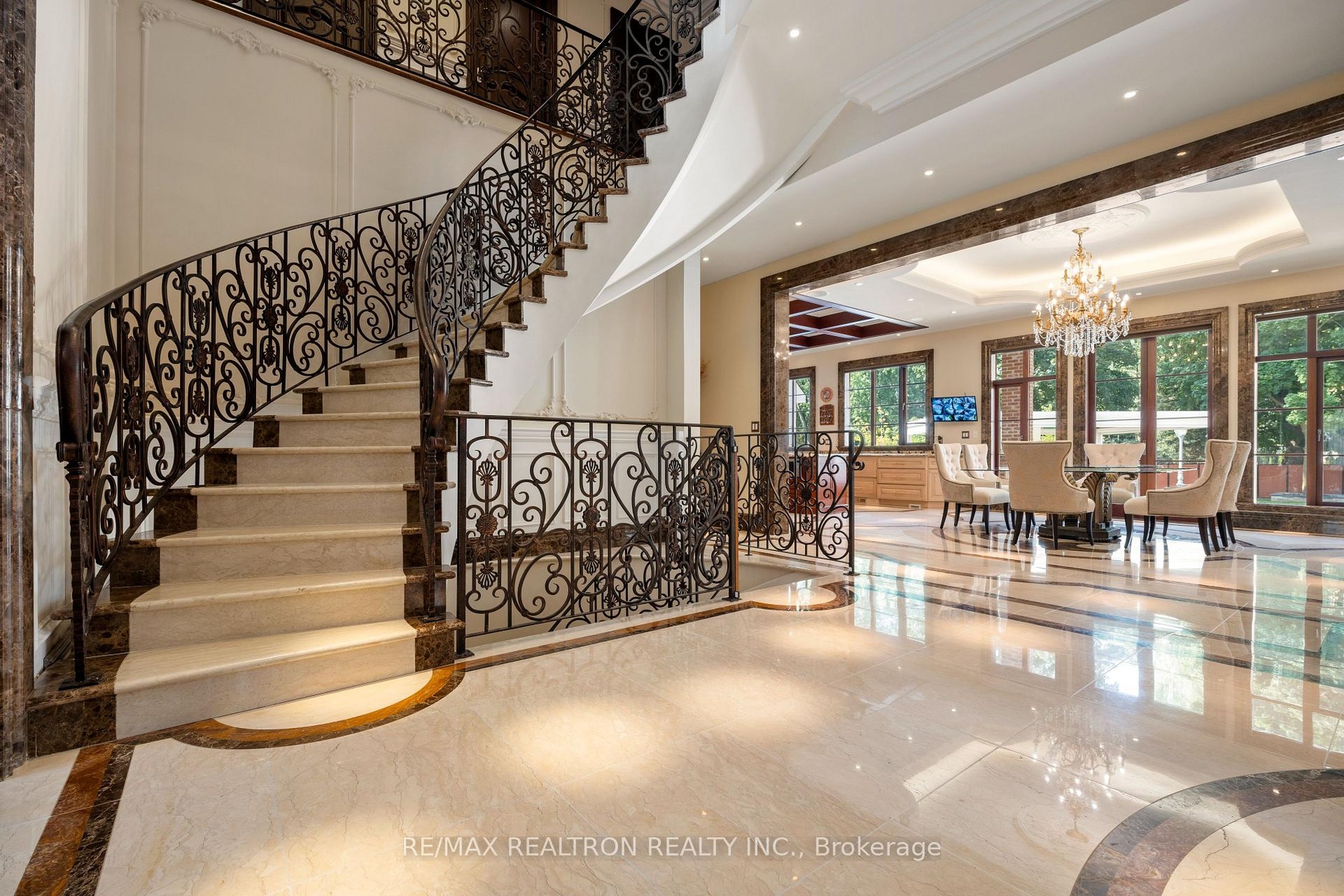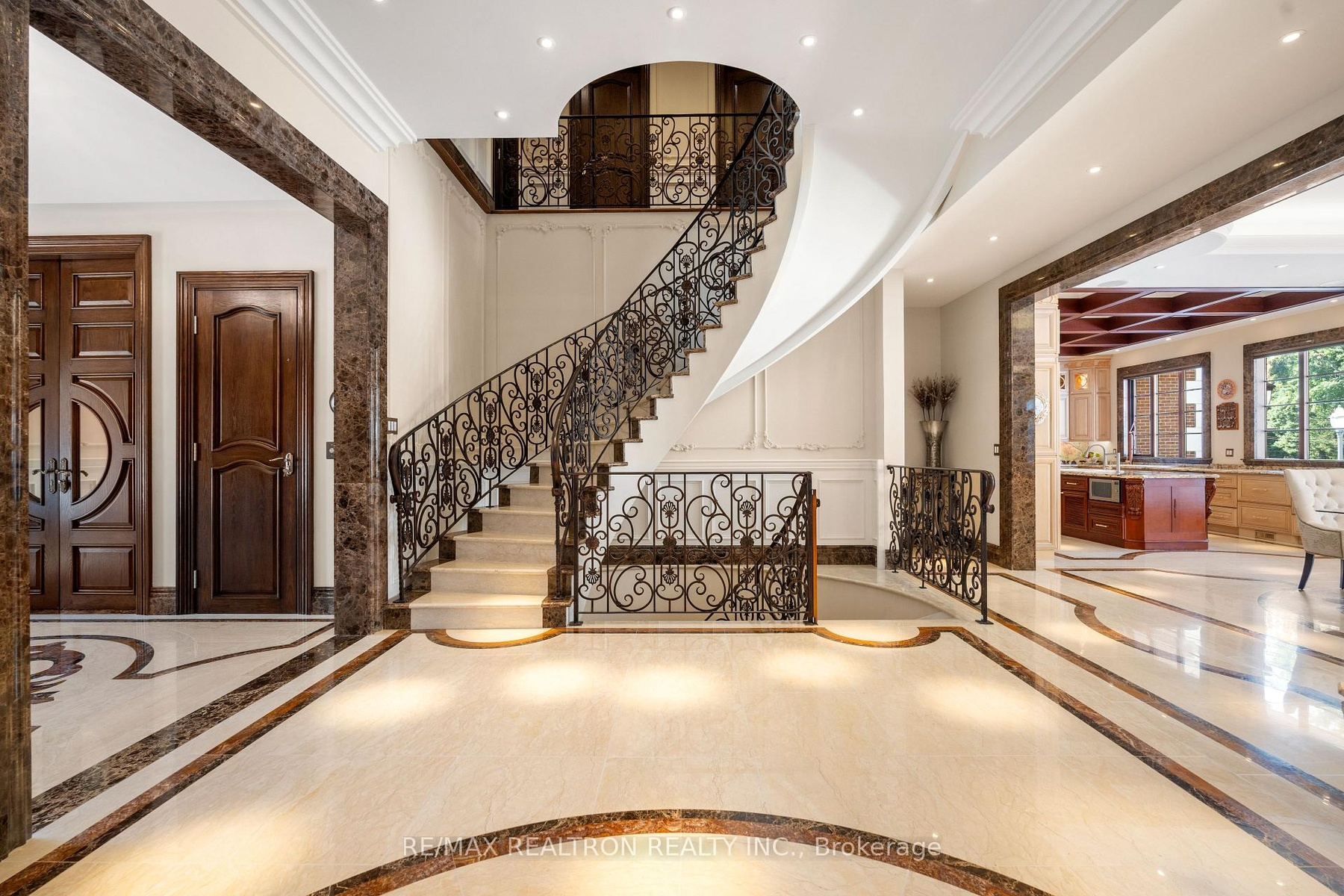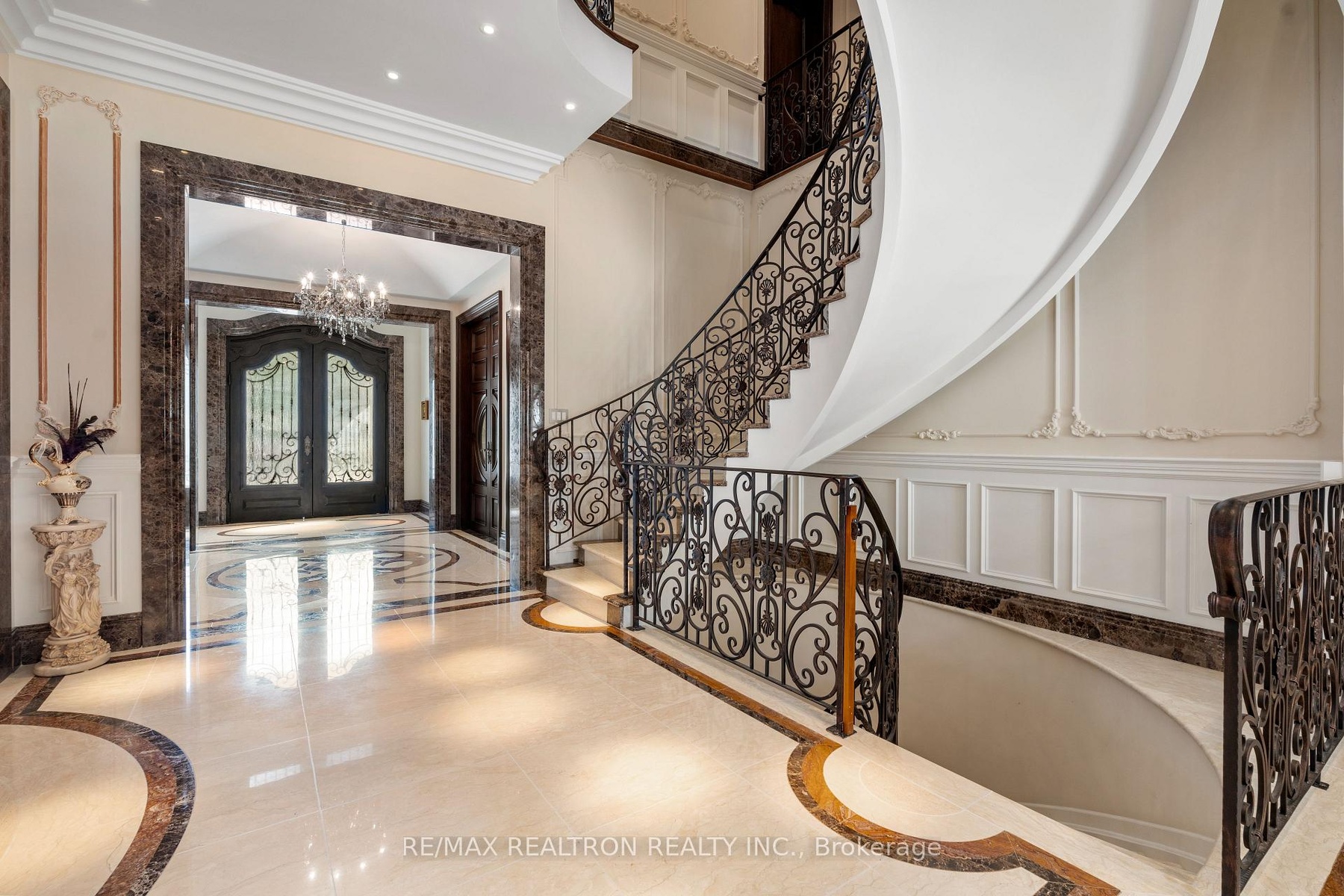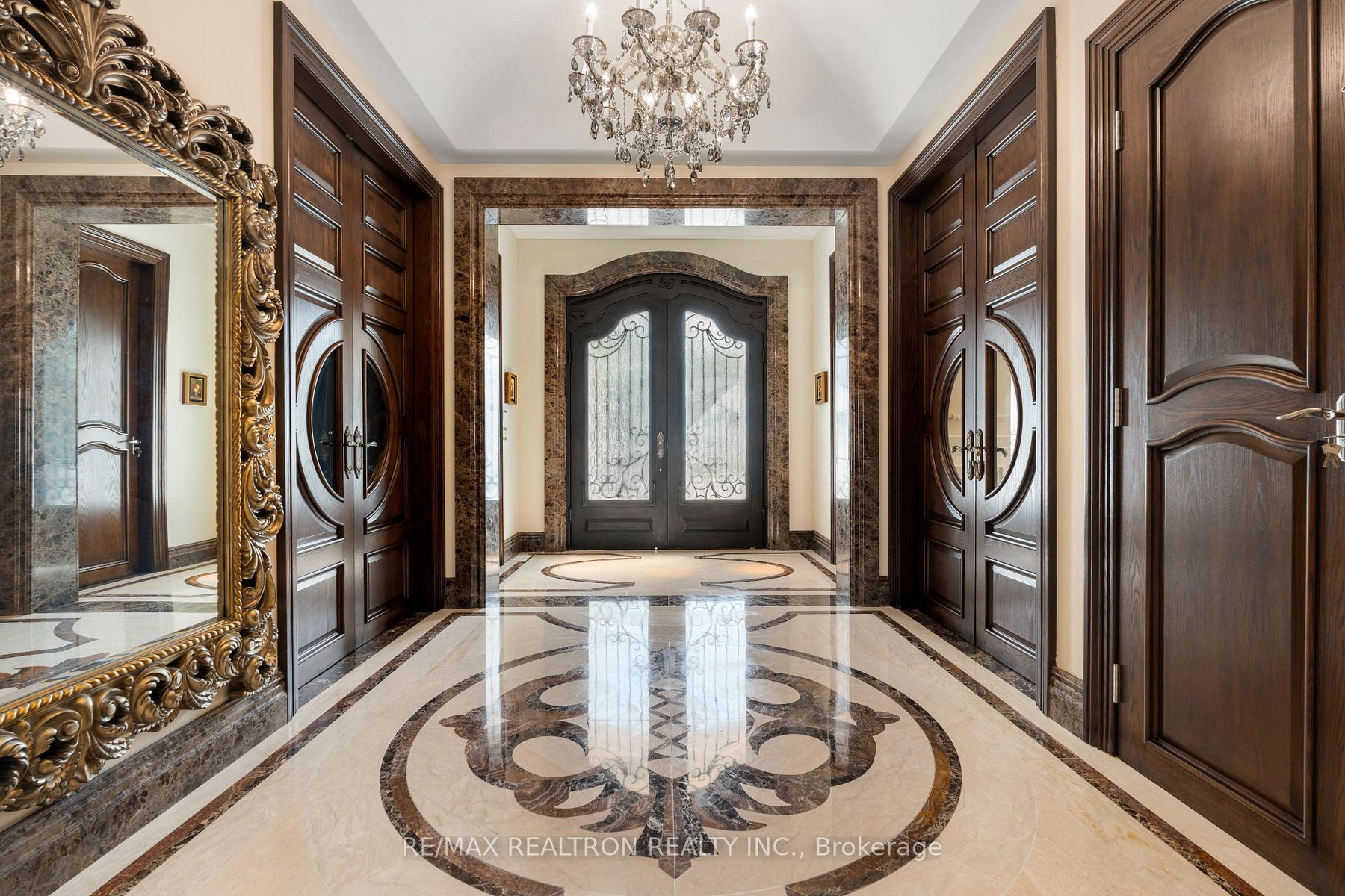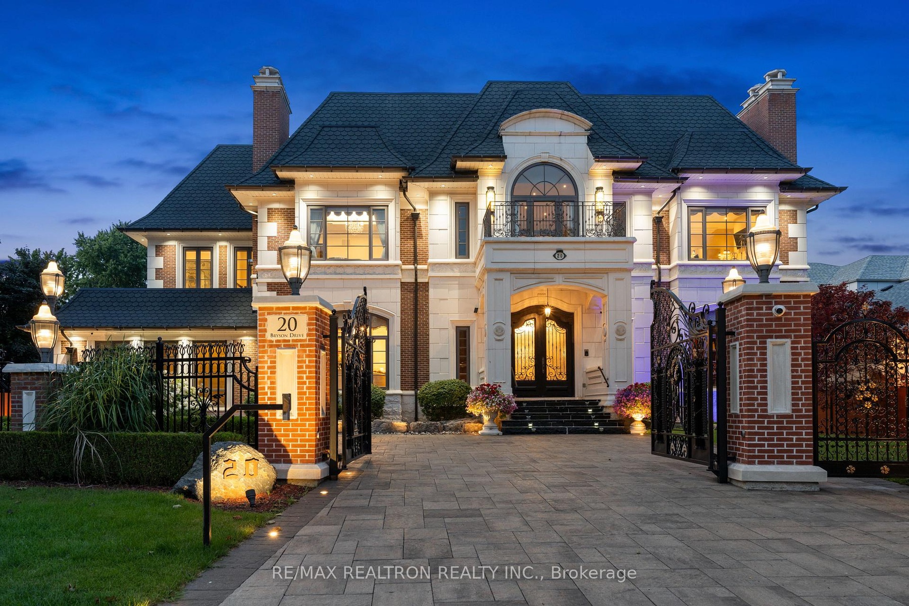 Exceptional Luxury Awaits! Welcome to 20 Bryson Drive, situated on the most prestigious street in South Richvale, Richmond Hill. This is a rare offering featuring an impressive 11,000 square feet of master craftsmanship. Enter through a gated entrance onto a interlocked circular driveway, leading to a home equipped with cutting-edge smart home technology. The main level, pool area, lower level, and bathrooms boast heated flooring. An elevator provides convenience, while a 20-seat, three-tiered movie theatre with a projection system and speakers offers cinematic experiences.Enjoy year-round relaxation in the full-size indoor swimming pool and hot tub, both enhanced by 20-foot-high ceilings, skylights, and illuminated lighting. The backyard is an entertainer's paradise, featuring extensive stone tile interlocking, a large covered veranda patio accessible from the kitchen, family room, and indoor pool area, and a spacious pergola with automated retractable coverings. The custom-built loggia, complete with folding patio doors, hosts a fully equipped outdoor kitchen, oversized wet bar, and entertainment center. Relax by the gas fire pit or enjoy movies in the backyard courtyard with its own projection system. The expansive second-floor terrace offers multiple walk-outs, providing even more space for outdoor enjoyment. **EXTRAS** GOURMET CHEF'S KITCHEN W/ PREP KITCHEN + W/I FREEZER. HEATED FLOORING ON MAIN LEVEL/ POOL AREA/ LOWER LEVEL + WASHROOMS** ELEVATOR*~INSPIRING HAND CRAFTED CENTER HALL STAINED GLASS SKYLIGHT!~ GOLF SIMULATION SYSTEM, WET BAR + WINE CELLAR