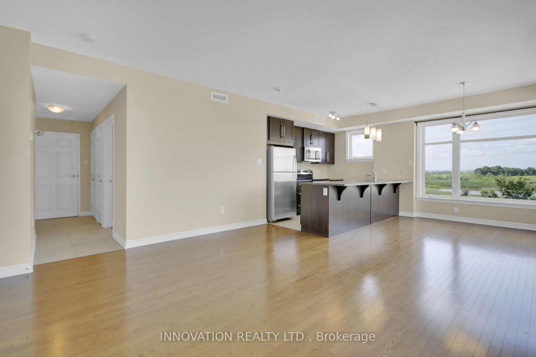 Welcome to 180 Guelph Private Unit #201. Located in Kanata Lakes/Heritage Hills this property has 2 bedrooms, 2 bathrooms + a den. The layout, light and view will not disappoint! Featuring a sprawling living/dining/kitchen area with the best views on the street. Hardwood floors throughout. Contemporary kitchen with 5 stainless steel appliances. Large island and breakfast bar. Breezy outdoor space with covered balcony. Spacious primary bedroom with a superb view, and a 3pc ensuite bathroom. The 2nd bedroom is directly across the hall from another 4pc main bathroom. Den is full of possibilities: office, rec room, craft room. In-unit laundry. Great amenities; club house with kitchen, work out area. Underground parking spot and storage locker. 180 Guelph Private features an elevator that takes you right upstairs.