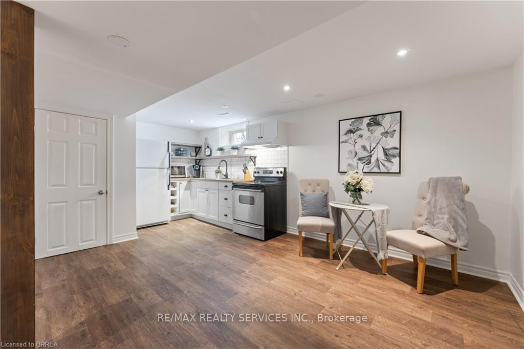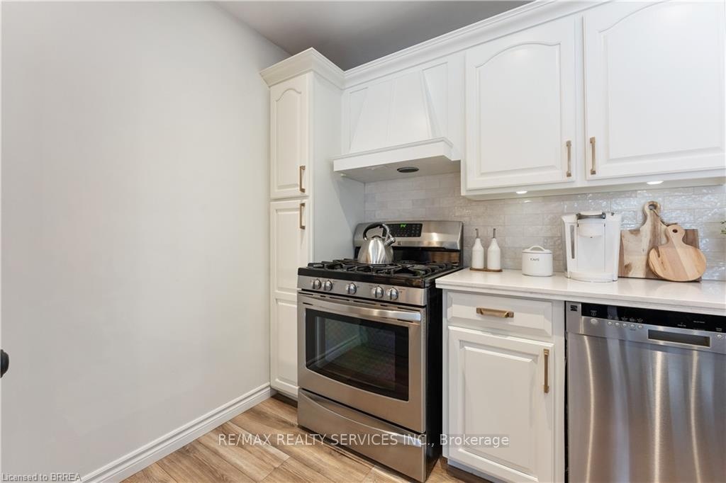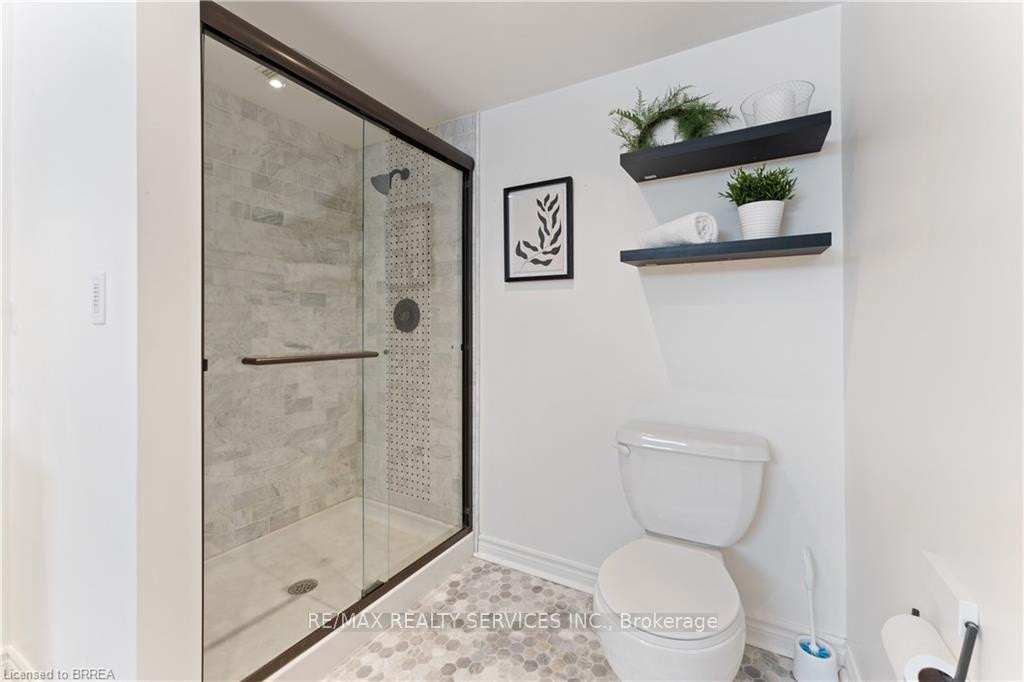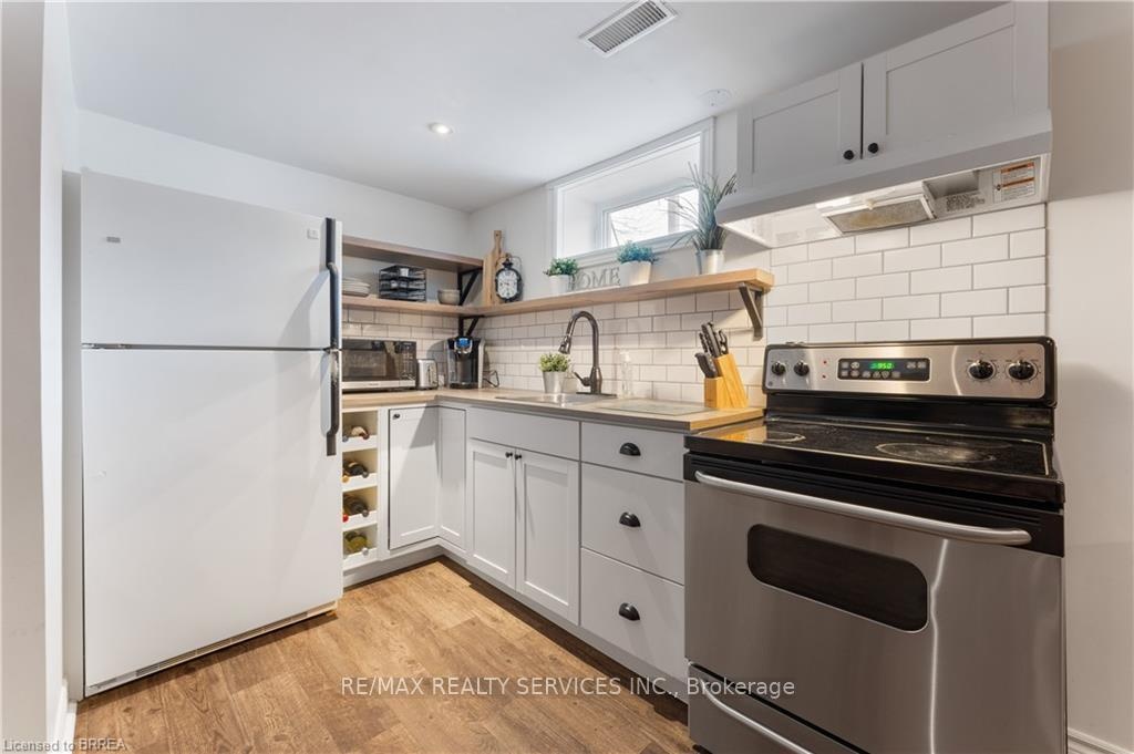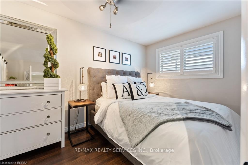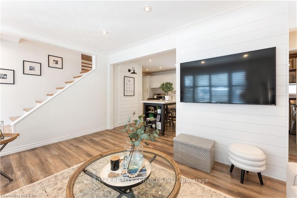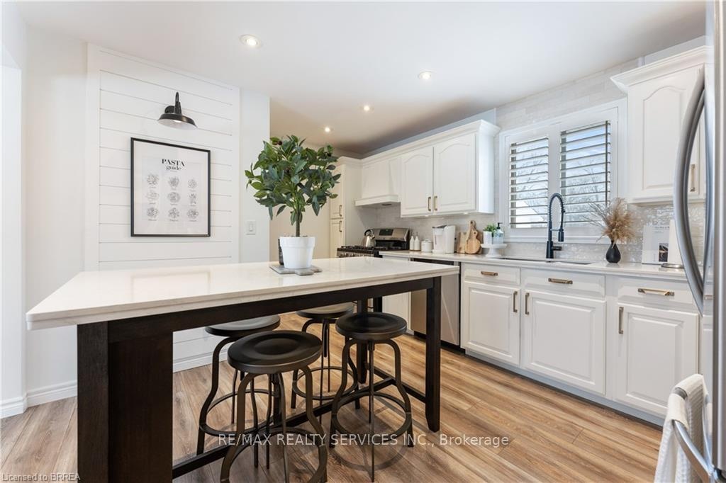 Beautifully renovated inside and out! This 3-bedroom, 2-bathroom home sits on a quiet dead-end street in Brantford and offers modern living at its finest. Enjoy a bright living room with a stylish shiplap accent wall, California shutters, and pot lights throughout. The kitchen features quartz countertops, sleek cabinetry, and a matte black faucet-perfect for entertaining with an open flow to the living area. The main level includes two bedrooms, a spa-like bathroom with a floating vanity, standalone tub, and rainfall shower, plus a convenient laundry room. Upstairs, relax in your spacious second living area with a gas fireplace and walkout to a raised deck. The fully finished basement adds even more space, ideal for an in-law suite, complete with kitchen, living room, bedroom, and modern bath. Move-in ready and beautifully updated-this home truly has it all!