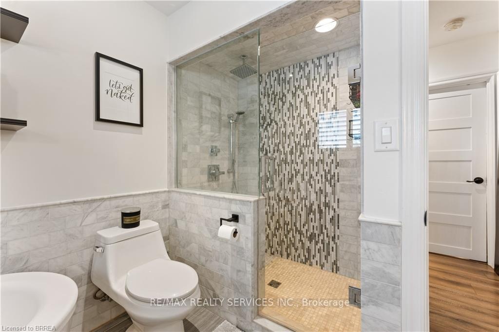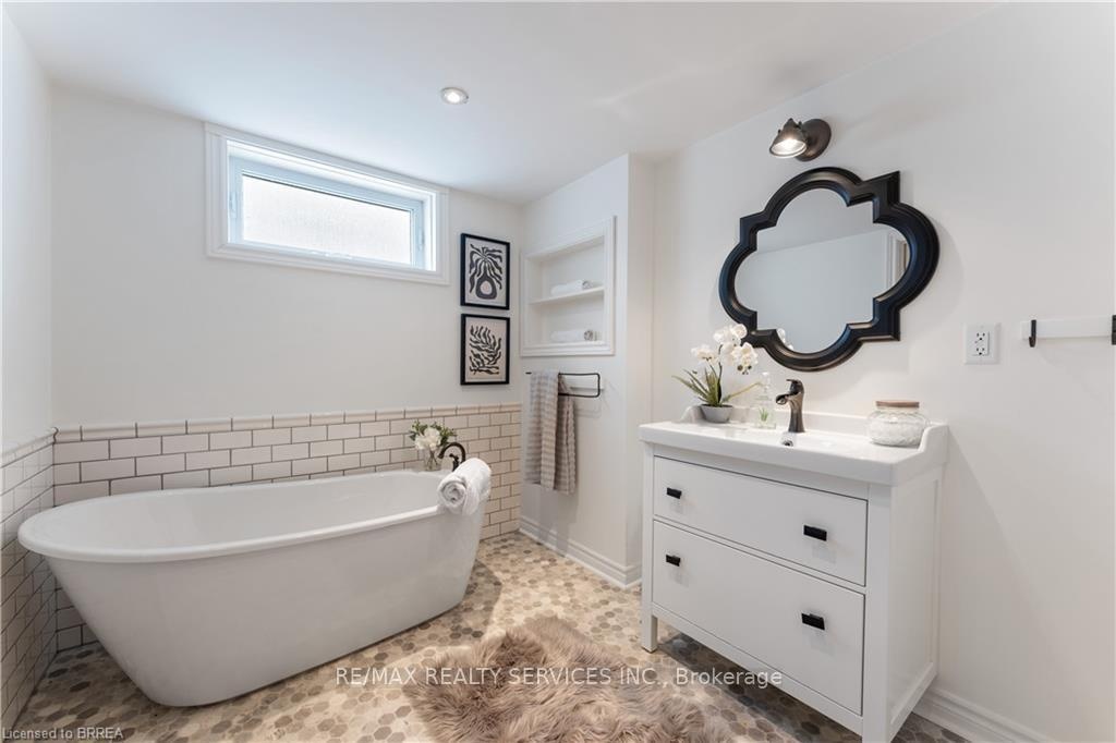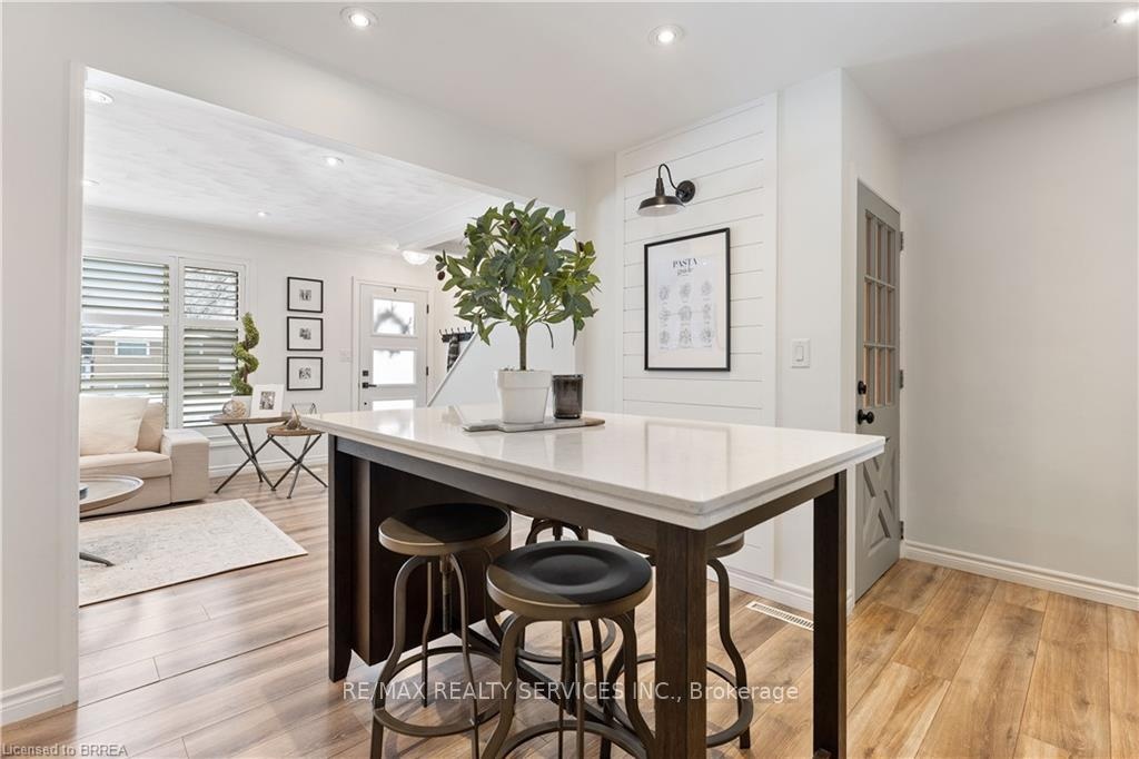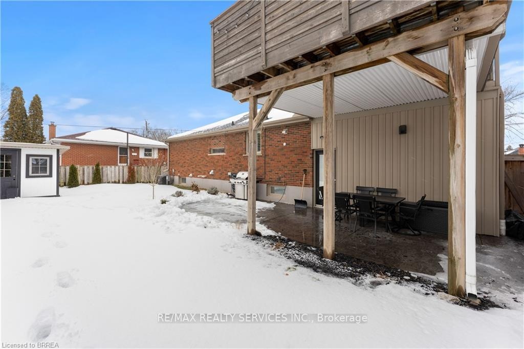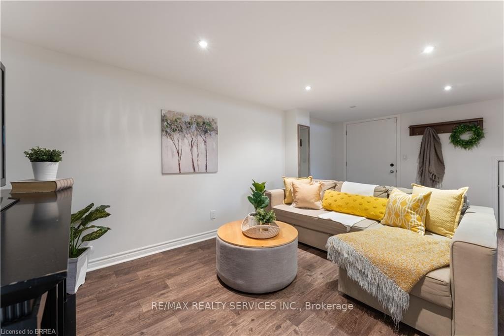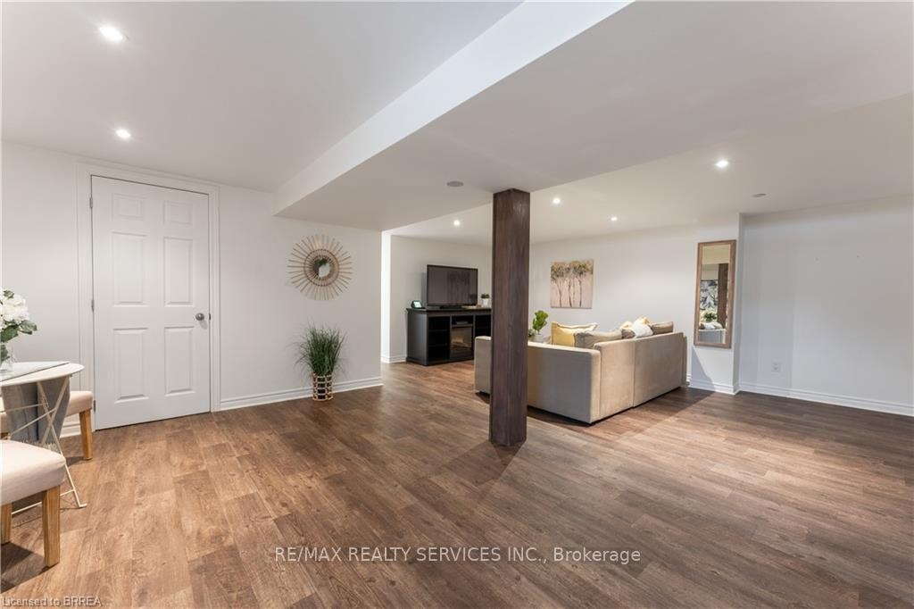 Beautifully renovated inside and out! This 3-bedroom, 2-bathroom home sits on a quiet dead-end street in Brantford and offers modern living at its finest. Enjoy a bright living room with a stylish shiplap accent wall, California shutters, and pot lights throughout. The kitchen features quartz countertops, sleek cabinetry, and a matte black faucet-perfect for entertaining with an open flow to the living area. The main level includes two bedrooms, a spa-like bathroom with a floating vanity, standalone tub, and rainfall shower, plus a convenient laundry room. Upstairs, relax in your spacious second living area with a gas fireplace and walkout to a raised deck. The fully finished basement adds even more space, ideal for an in-law suite, complete with kitchen, living room, bedroom, and modern bath. Move-in ready and beautifully updated-this home truly has it all!