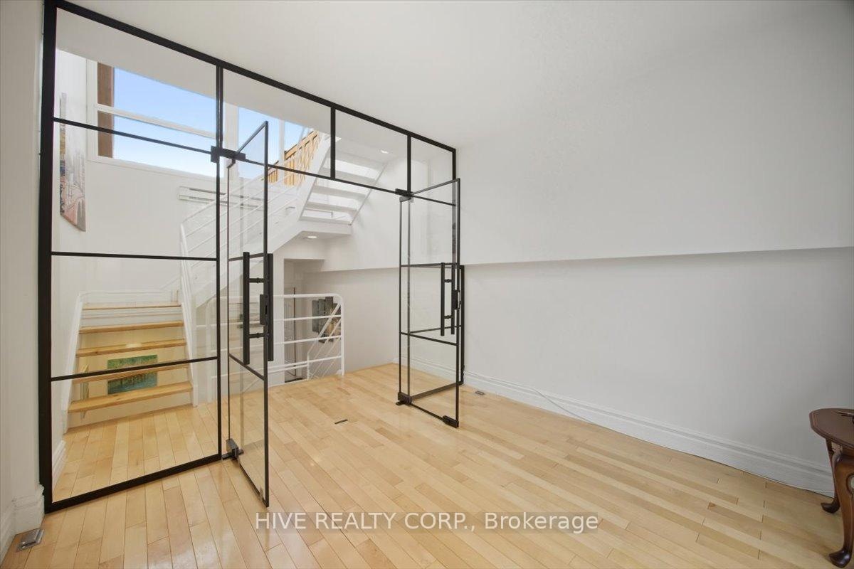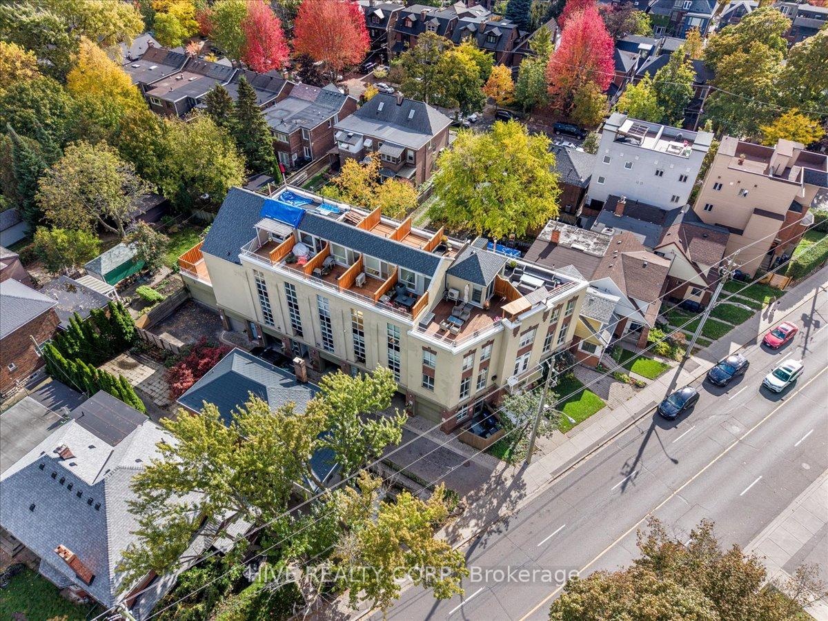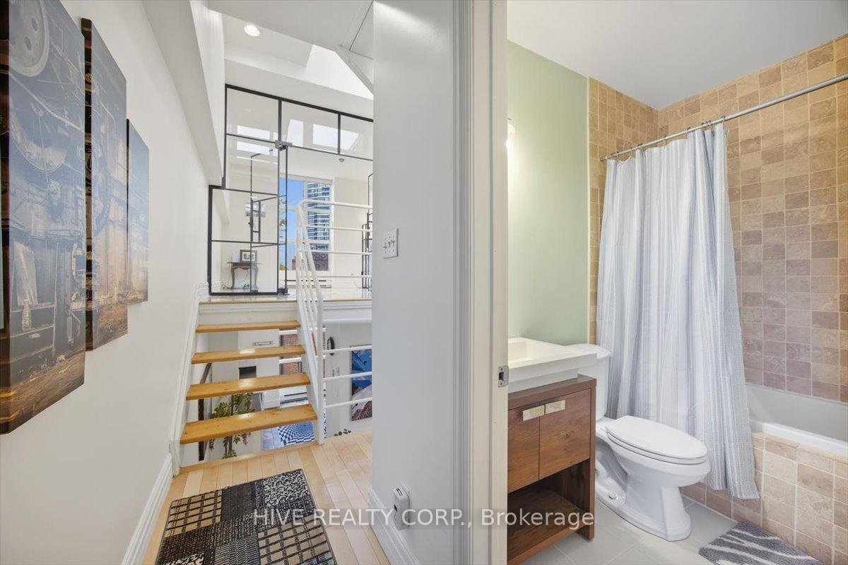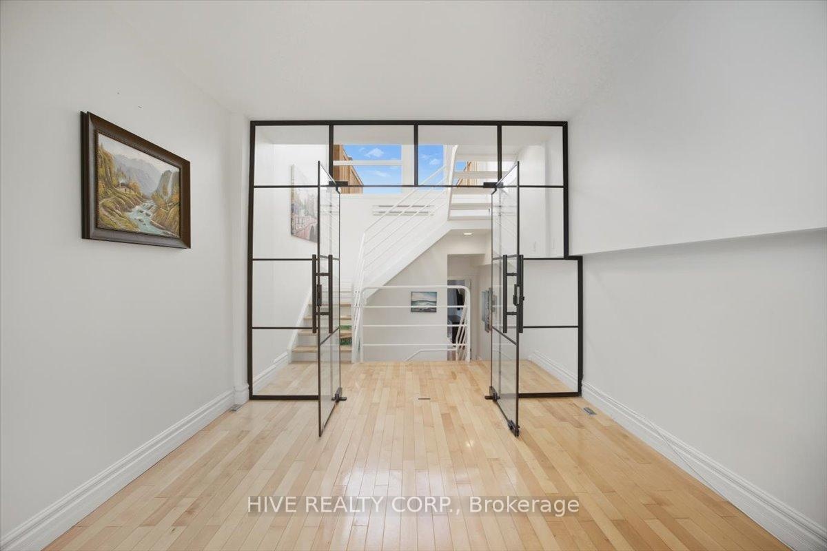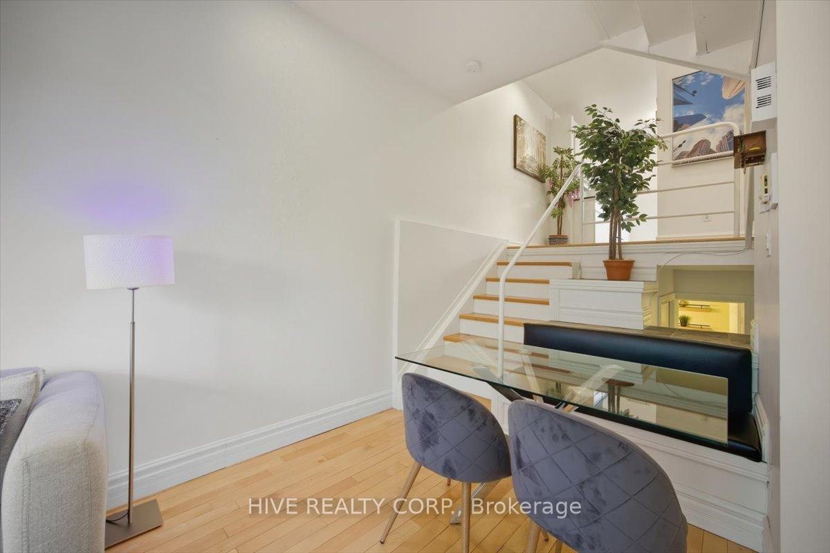 Discover a home that is anything but ordinary. Nestled within the coveted Playter Estates, The Historical Don Hall Lofts present a phenomenal 2-bedroom, 2-bathroom townhouse, once a vibrant 1920s dance hall and later a hippie commune.Now, this multi-level sanctuary is a light-filled retreat. Soaring 10-foot ceilings and massive, tall windows bathe the open-concept space in sunshine. The second bedroom is a masterpiece of flexibility, featuring a sleek glass wall system that can be a sun-drenched home office, a peaceful nursery, or a bright and airy bedroom. A gas fireplace creates a cozy ambiance, perfect for unwinding in your Living/Dining space.Step outside to your own private escape with two rooftop terraces that offer a serene perch above a quaint, tree-lined street. This is urban living with unparalleled tranquility, yet you're moments from the Broadview Transit Hub, the Don Valley Trail system, and the energy of the Danforth. Parking and storage locker complete this exceptional offering.Seize the chance to own a truly artistic home in one of Toronto's most sought-after neighbourhoods. Your history-rich oasis awaits.