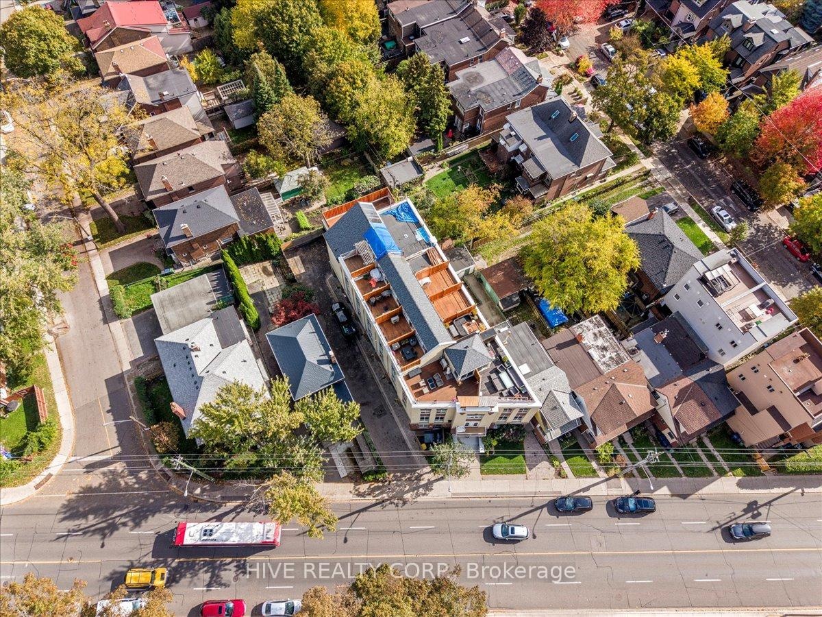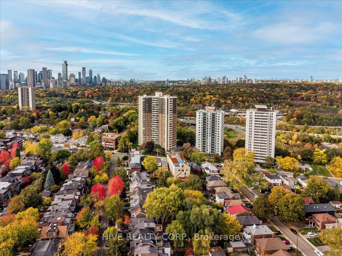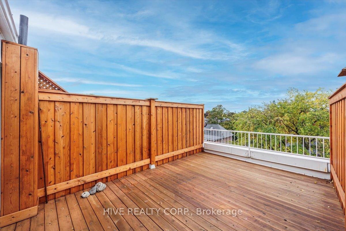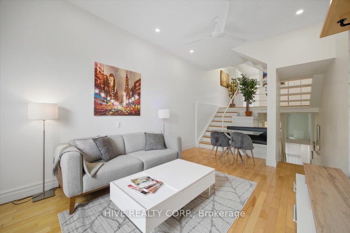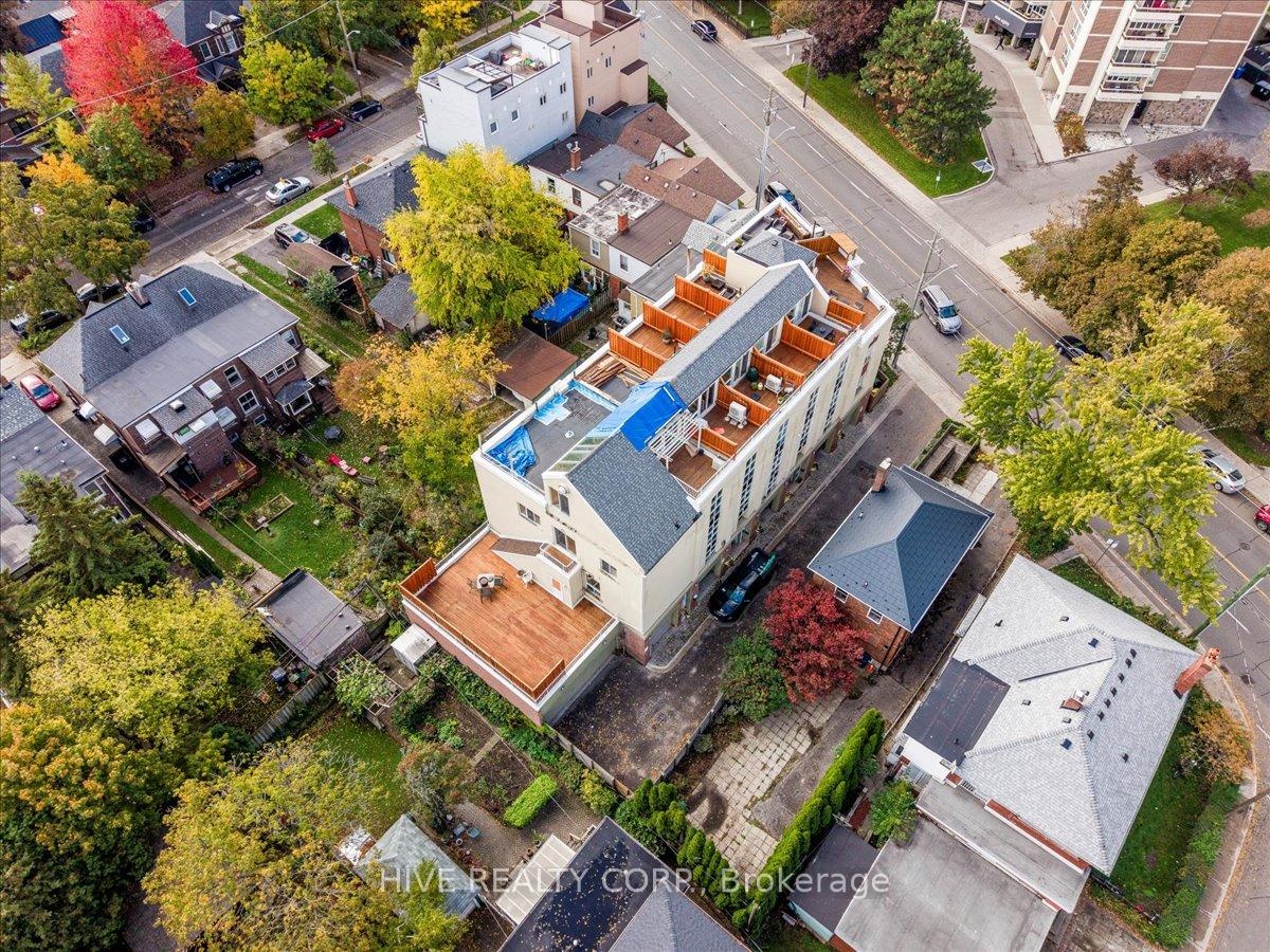 Discover a home that is anything but ordinary. Nestled within the coveted Playter Estates, The Historical Don Hall Lofts present a phenomenal 2-bedroom, 2-bathroom townhouse, once a vibrant 1920s dance hall and later a hippie commune.Now, this multi-level sanctuary is a light-filled retreat. Soaring 10-foot ceilings and massive, tall windows bathe the open-concept space in sunshine. The second bedroom is a masterpiece of flexibility, featuring a sleek glass wall system that can be a sun-drenched home office, a peaceful nursery, or a bright and airy bedroom. A gas fireplace creates a cozy ambiance, perfect for unwinding in your Living/Dining space.Step outside to your own private escape with two rooftop terraces that offer a serene perch above a quaint, tree-lined street. This is urban living with unparalleled tranquility, yet you're moments from the Broadview Transit Hub, the Don Valley Trail system, and the energy of the Danforth. Parking and storage locker complete this exceptional offering.Seize the chance to own a truly artistic home in one of Toronto's most sought-after neighbourhoods. Your history-rich oasis awaits.