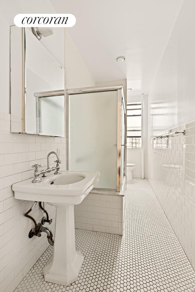 Bathed in soft, natural light, this elegant prewar home unfolds with effortless flow. Soaring 9-foot ceilings crown an expansive living and dining area, creating a beautifully proportioned space for both quiet moments and refined entertaining.