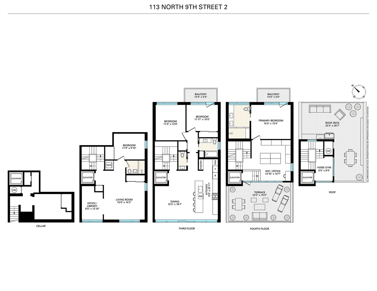Impeccable contemporary luxury awaits in this sun-splashed four-bedroom, three-and-a-half-bathroom triplex condominium featuring dramatic proportions, upscale designer finishes, and three levels of private outdoor space in the heart of North Williamsburg, just two blocks from McCarren Park.