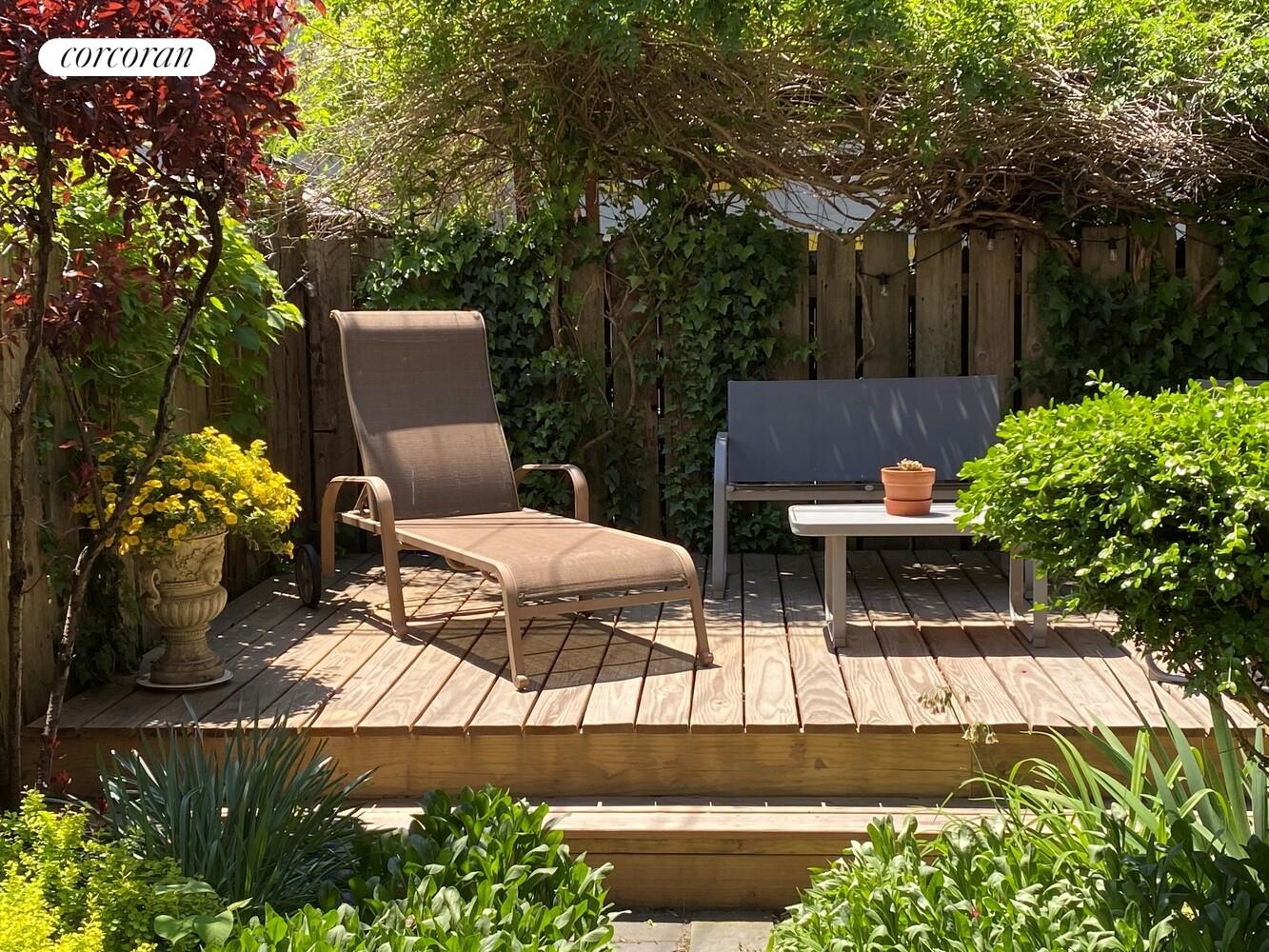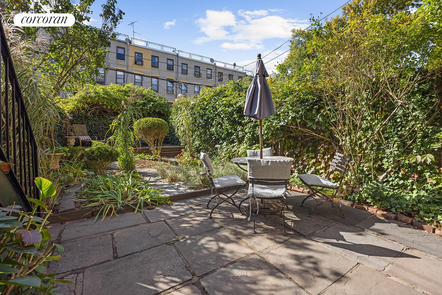 The top floor offers even more possibilities, with a large front-facing bedroom, a central storage area, an additional rear bedroom, and a hall laundry room with an accompanying bathroom. The inviting garden-level apartment, with private entrance under the stoop, features a spacious bedroom in the front and open kitchen/living area that opens out to the garden, seamlessly extending the living space outdoors.