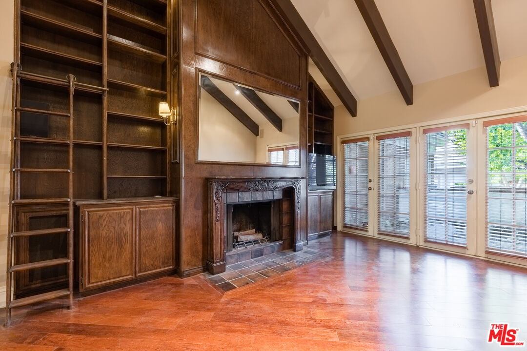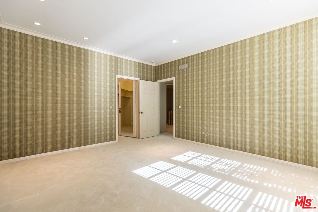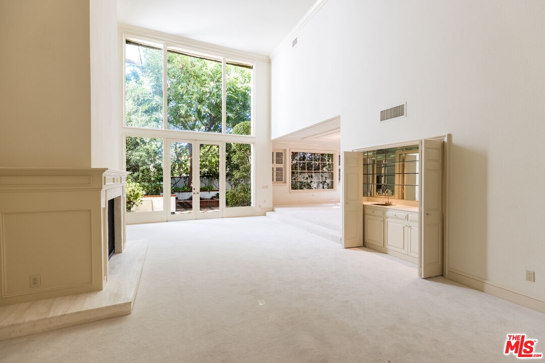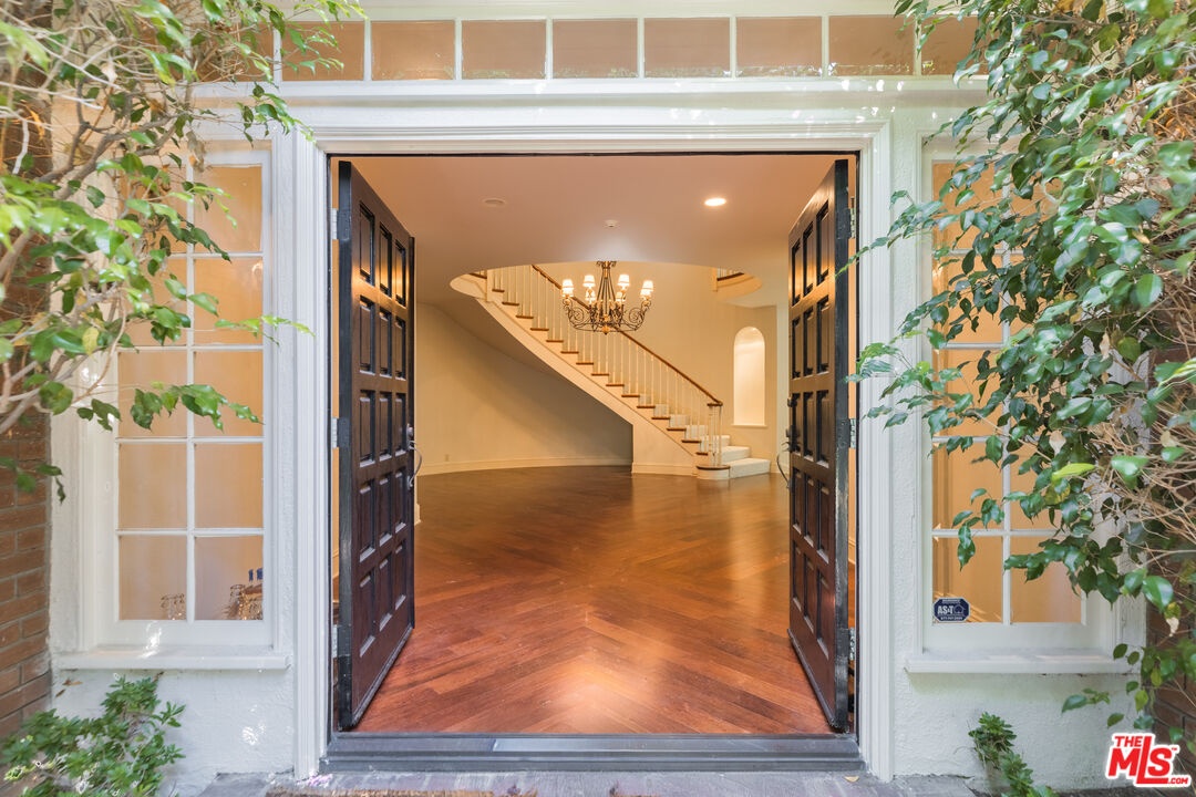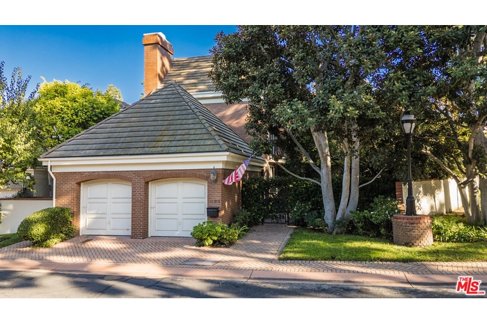 This exceptional 3-bedroom, 4-bathroom 4,018 square foot corner townhome delivers resort-style living in the highly desirable guard-gated Ridge area of Mountain Gate in Brentwood Hills. Located in a very secluded area with 24 hr. security and unmatched serenity. Stanley Kramer, American Film Director, was the original owner of this property set behind a private iron gate with a beautiful courtyard offering complete privacy with only one common wall. This lavish home boasts a formal entry, dramatic staircase, expansive living room with fireplace, wet bar, soaring vaulted ceilings, floor-to-ceiling luminous windows, and elegant French doors displaying a well-manicured wrap-around yard and patios that are perfect for entertaining or quiet relaxation in a zen-like atmosphere with mature trees and koi pond. Spacious eat-in kitchen featuring Miele refrigerator, Wolf dual-convection ovens, Bosch dishwasher, two walk-in pantries and center island. The kitchen has easy access to the formal dining and living areas. One bedroom with ensuite bathroom is conveniently located on the first floor. Additional highlights include a library with fireplace and its own private patio, a dedicated laundry room and a double-attached garage with direct access to the home. Upstairs, retreat to an over-sized luxurious primary suite with a sitting area and a private Juliet balcony with tree-lined views. A huge spa-like bath offers a soaking tub, dual vanities, and a separate shower and bidet. Separately located upstairs is a private 2nd bedroom that has easy access to a full bath. The HOA includes community Pool/Spa, Trash Valet, exterior EQ and Fire Insurance as well as roof coverage. You will have the option to join Mountain Gate Country Club that offers golf, tennis, spa and dining. Easy 405 Freeway access, shopping, dining & spectacular hiking trails. Enjoy the tranquil, resort-like lifestyle and make this stunning colonial-style home yours. Call for a private showing.