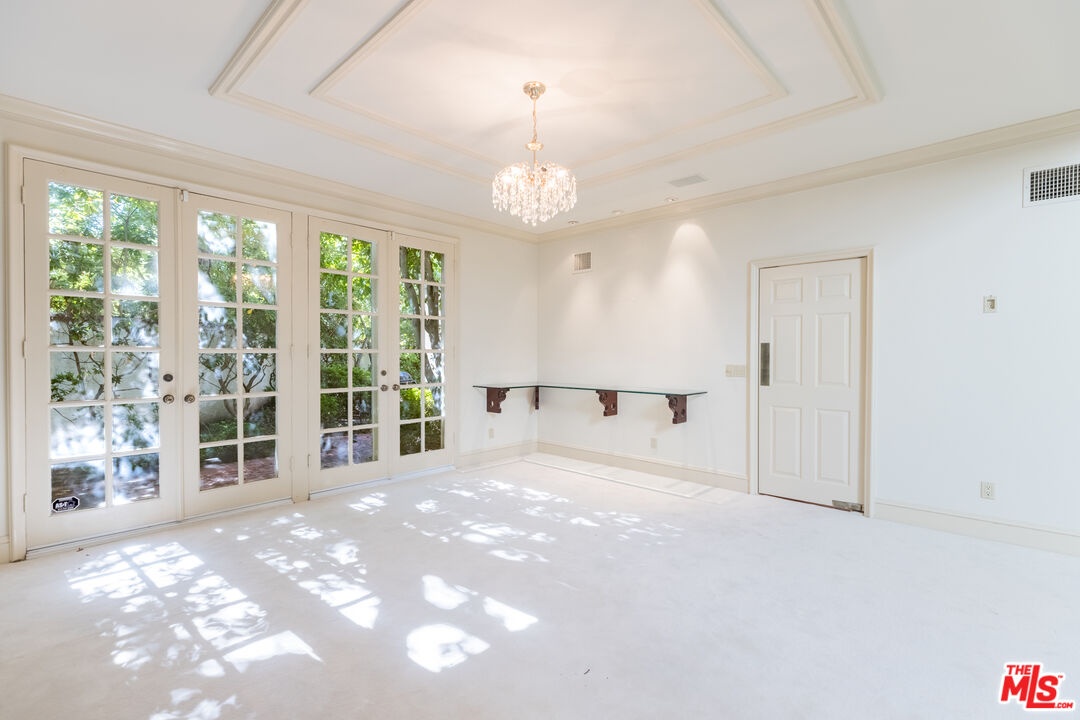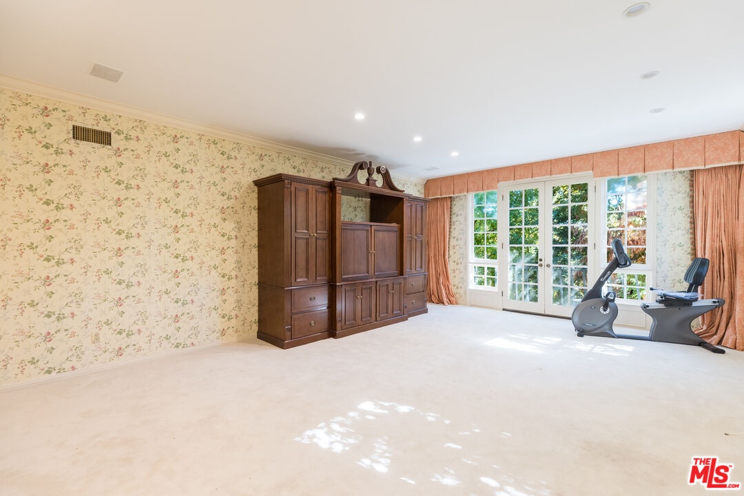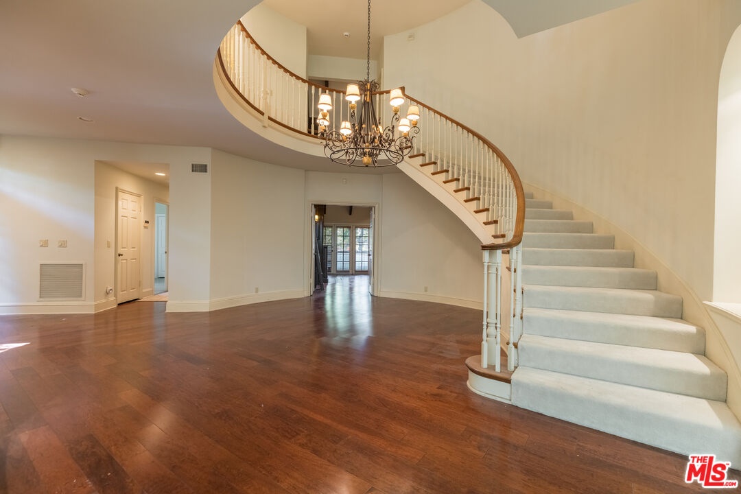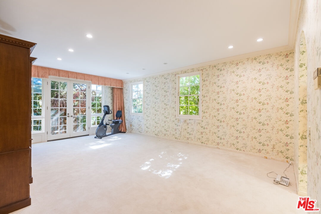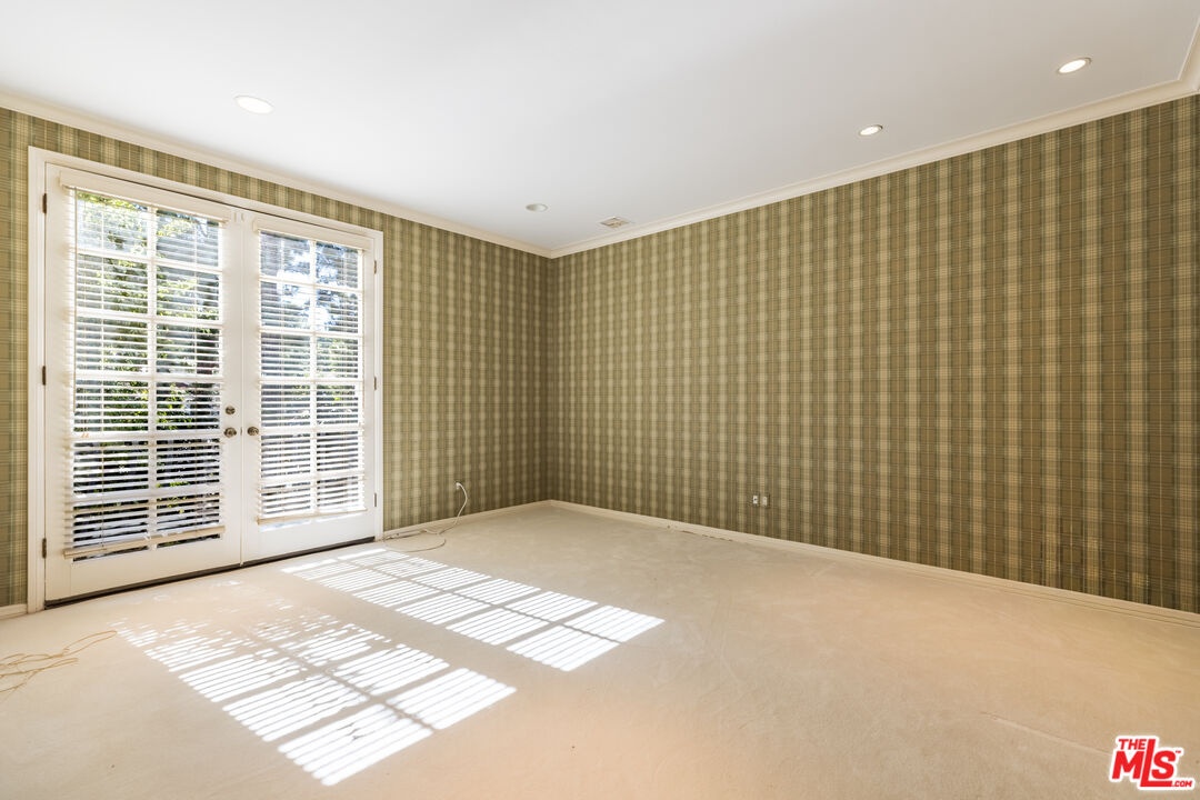 This exceptional 3-bedroom, 4-bathroom 4,018 square foot corner townhome delivers resort-style living in the highly desirable guard-gated Ridge area of Mountain Gate in Brentwood Hills. Located in a very secluded area with 24 hr. security and unmatched serenity. Stanley Kramer, American Film Director, was the original owner of this property set behind a private iron gate with a beautiful courtyard offering complete privacy with only one common wall. This lavish home boasts a formal entry, dramatic staircase, expansive living room with fireplace, wet bar, soaring vaulted ceilings, floor-to-ceiling luminous windows, and elegant French doors displaying a well-manicured wrap-around yard and patios that are perfect for entertaining or quiet relaxation in a zen-like atmosphere with mature trees and koi pond. Spacious eat-in kitchen featuring Miele refrigerator, Wolf dual-convection ovens, Bosch dishwasher, two walk-in pantries and center island. The kitchen has easy access to the formal dining and living areas. One bedroom with ensuite bathroom is conveniently located on the first floor. Additional highlights include a library with fireplace and its own private patio, a dedicated laundry room and a double-attached garage with direct access to the home. Upstairs, retreat to an over-sized luxurious primary suite with a sitting area and a private Juliet balcony with tree-lined views. A huge spa-like bath offers a soaking tub, dual vanities, and a separate shower and bidet. Separately located upstairs is a private 2nd bedroom that has easy access to a full bath. The HOA includes community Pool/Spa, Trash Valet, exterior EQ and Fire Insurance as well as roof coverage. You will have the option to join Mountain Gate Country Club that offers golf, tennis, spa and dining. Easy 405 Freeway access, shopping, dining & spectacular hiking trails. Enjoy the tranquil, resort-like lifestyle and make this stunning colonial-style home yours. Call for a private showing.
