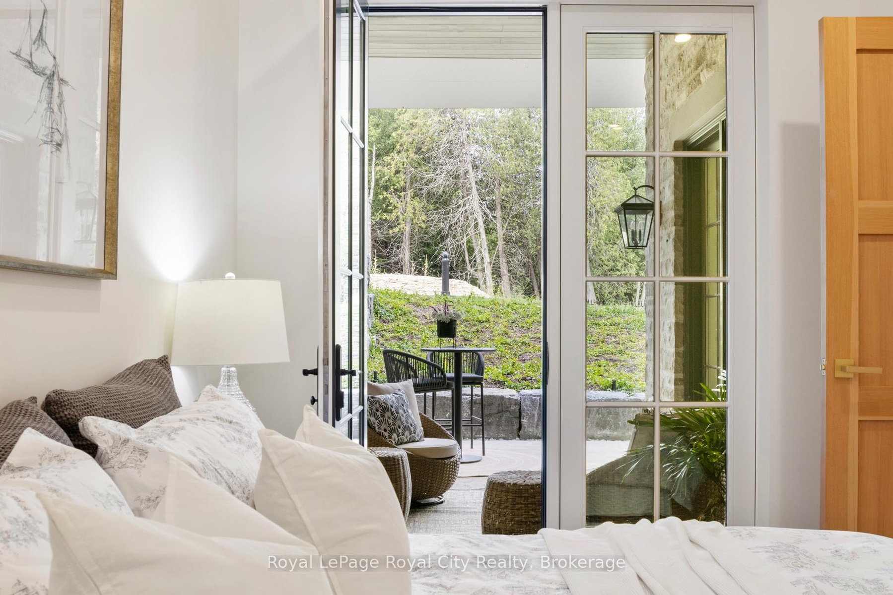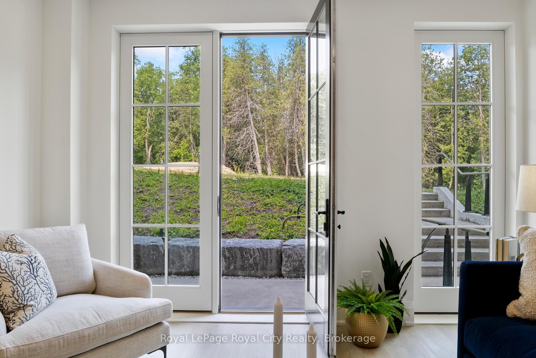 Welcome to The Foundry at Elora Mill Residences, an art collectors dream and your opportunity to own one of the most private layouts in the entire complex. This stunning one-bedroom plus den residence offers over 1,400 sq. ft. of thoughtfully designed living space, with a 200+ sqft private outdoor terrace. Both the living room and bedroom feature garden door walkouts, seamlessly connecting you to your terrace and the scenic pathway along the rivers edge.The extensively upgraded interior is equally impressive. A formal entryway with a double-door closet and a luxurious 155 sq. ft. foyer sets the tone, perfect for welcoming guests and keeping your space beautifully organized, a storage opportunity rarely found in condo living. Just beyond the entrance, you will find a self contained Laundry Room, a Study, perfect for a home Office or a Guest room and a 3pc bathroom with elegant finishes, heated floors and automated toilet. Continuing down the hall, enter the Kitchen, with an impressive design that showcases chic finishes alongside top-of-the-line Miele appliances and numerous cabinetry upgrades that offer convenience and functionality to this stunning work space. The quiet serenity of the trees along the Grand River set the backdrop for the open concept living space, with 3 oversized garden Windows, the Living and Dining areas have an abundance of natural light. The primary Bedroom with the luxurious garden door walkout, and a walk-through dressing room leading to the 5 piece Ensuite with large glass shower, stand alone soaker tub, automatic toilet, double sink, hardwired magnifying mirror and heated floors. Pre-wired for Electric Blinds, though as mentioned above, this location is very private.