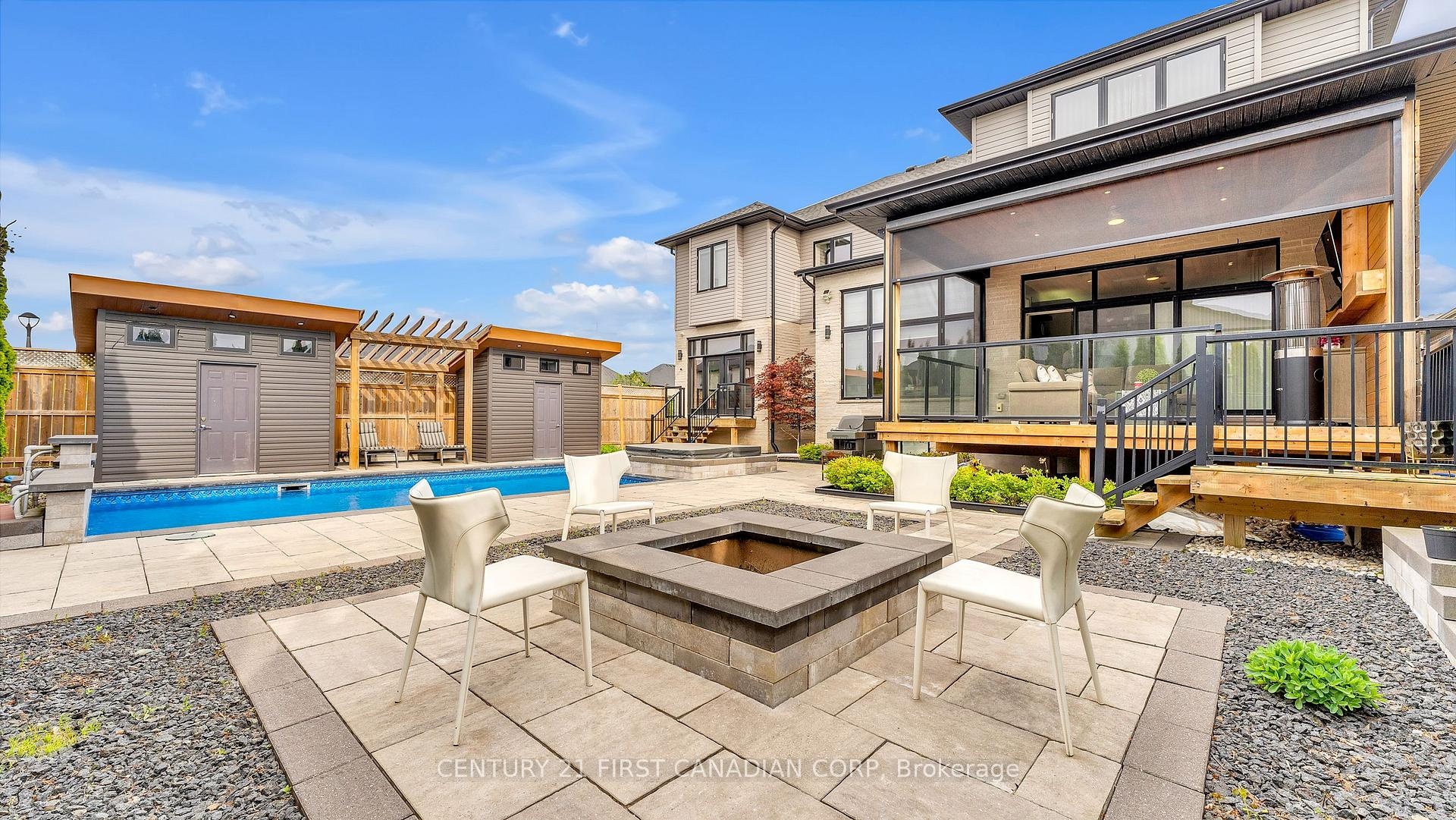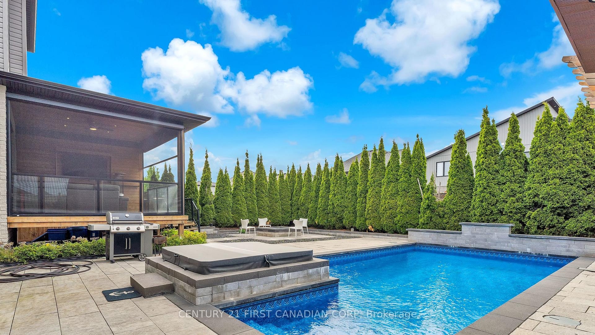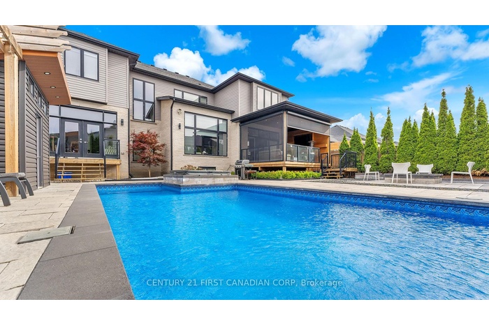 Get ready to be wowed! This extraordinary custom-built executive home redefines luxury living in the heart of Talbot Village Phase 5, blending timeless design, modern comfort, and unmatched craftsmanship. Boasting over 4,400 sq. ft. above grade plus an additional 1,716 sq. ft. of finished lower level, this residence features 5 bedrooms, 4.5 bathrooms, and exquisite finishes throughout. Step into the grand two-storey foyer adorned with marble flooring, and be welcomed by rarely found high ceilings throughout every room - including the lower level - creating an airy, elegant atmosphere filled with natural light. The main floor showcases a sun-drenched great room with a stylish fireplace, a private home office, formal dining room, and a chef's dream kitchen featuring custom cabinetry, premium appliances, and a stunning granite center island - perfect for entertaining. Upstairs, discover a spacious loft and four luxurious bedrooms, including a primary retreat with a spa-inspired ensuite and walk-in closet. The fully finished lower level offers even more space to live and play - complete with a recreation room featuring another cozy fireplace, home gym, theatre zone, and guest suite with full bath - all continuing the theme of soaring ceilings and refined finishes. Step outside to your private resort-style oasis, featuring a heated in-ground saltwater pool with tranquil fountain, poolside bath with walk-in shower, hot tub, fire pit, and a covered outdoor dining area with a motorized screen to keep insects out while you relax or entertain in comfort. Additional highlights include a heated garage, main-floor laundry, three electirc fireplaces, built-in sound system, and luxury upgrades throughout. This isn't just another home - it's a statement of individuality and refinement. A rare opportunity for those who value unique design, superior craftsmanship, and timeless sophistication. Book your private tour today before it's gone!