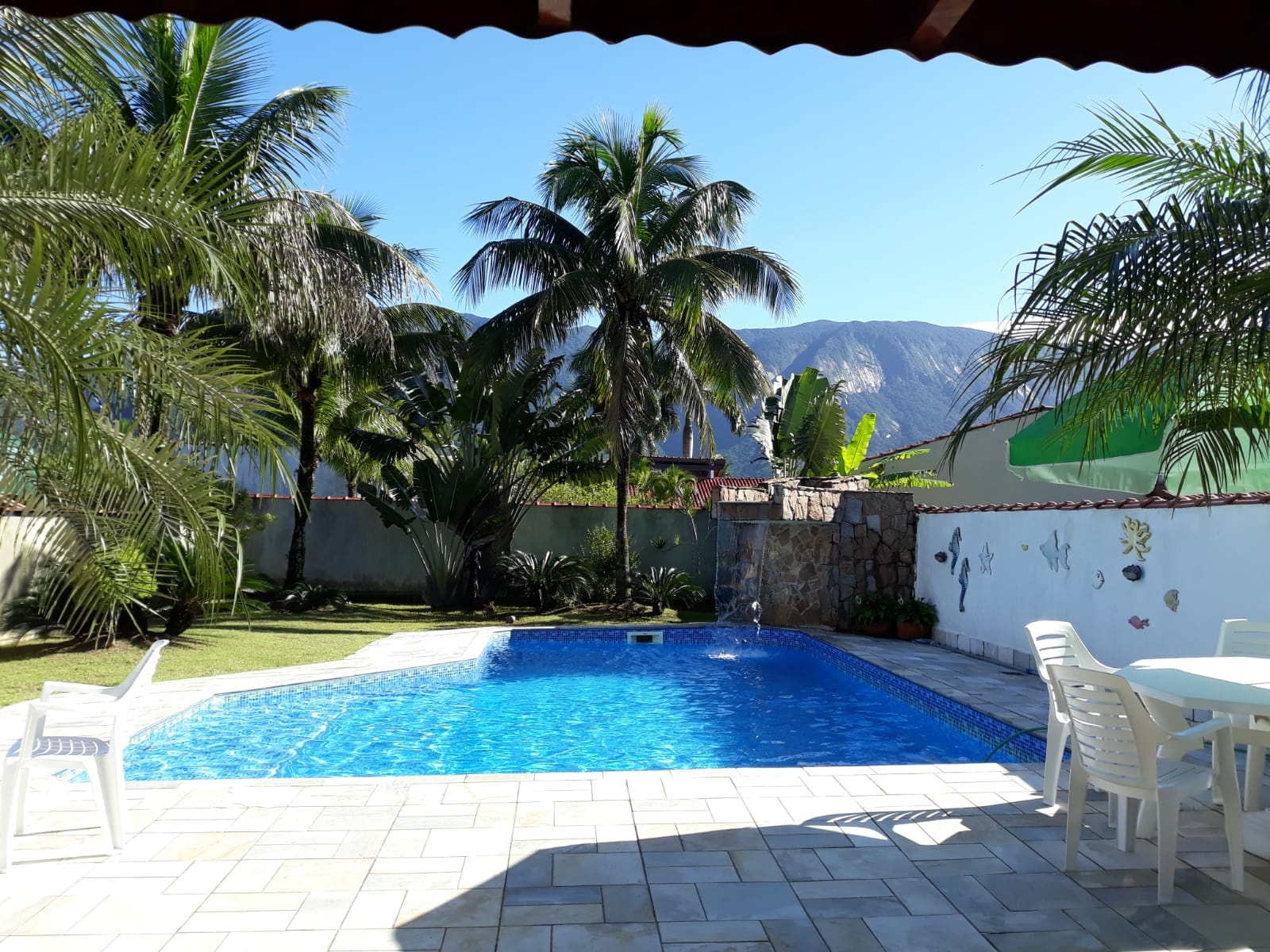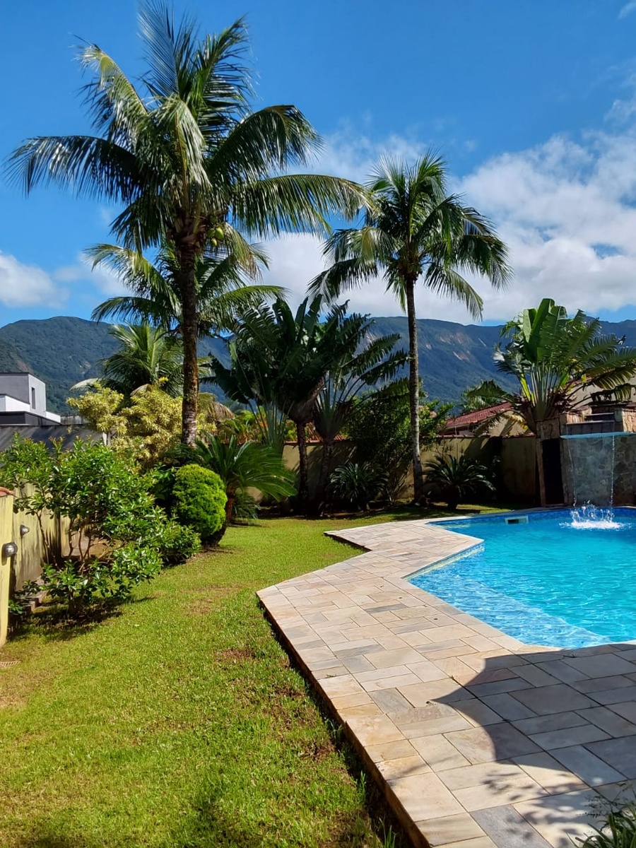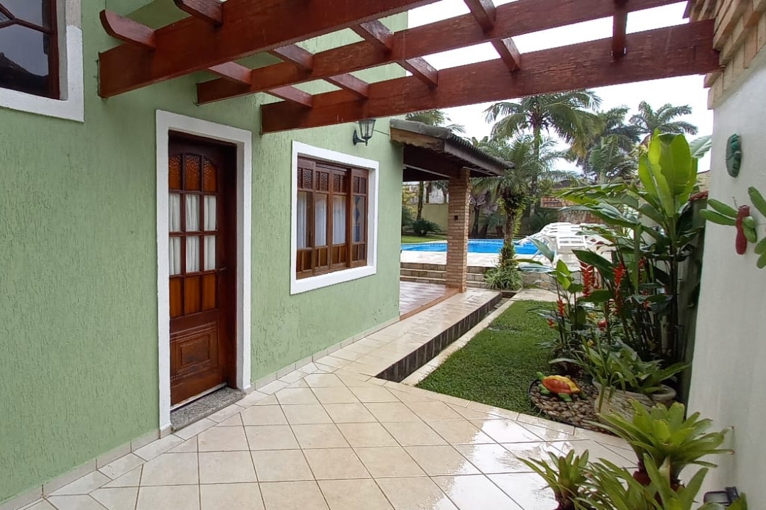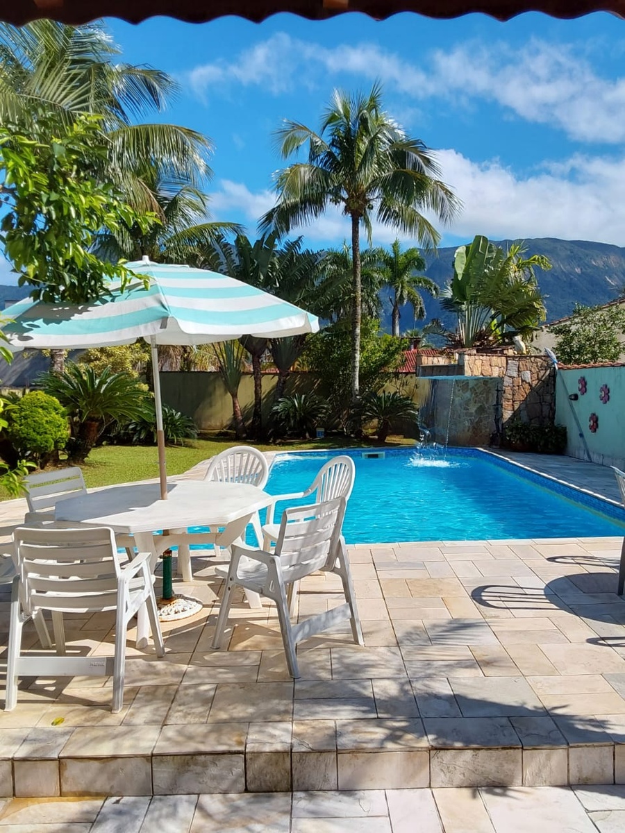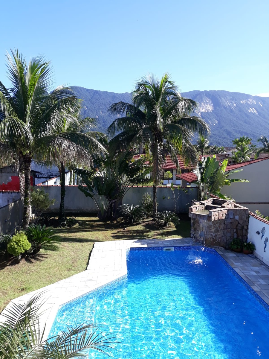 The property enjoys a north-facing orientation, ensuring sunlight over the pool area for most of the day. The beach is nearby, and the community offers convenient access to restaurants, cafés, local shops, and supermarkets, with quick road links to Rodovia Rio–Santos (SP-55), connecting to São Paulo city and other coastal destinations.
