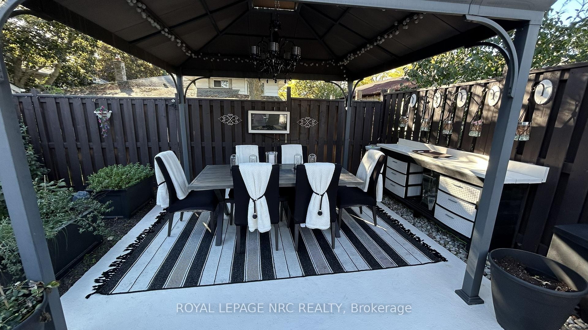 The One You've Been Waiting For!This fully furnished, move-in-ready backsplit is a rare gem in the highly sought-after Westwood neighbourhood - one of Niagara Falls' most family-friendly and convenient areas. Steps from schools, parks, and shopping, this home offers the perfect mix of comfort, style, and investment potential.Inside, discover a bright layout with 3+1 bedrooms and 2 full bathrooms. The ground floor features a spacious living and dining area with an inviting coffee bar and a kitchen overlooking the entire entry floor - ideal for families and entertainers. A few steps up lead to three bedrooms and a full bathroom.Head down to the lower level for a cozy family room with gas fireplace, another full bathroom, and a convenient walkout to your backyard retreat. A few steps down, find an additional bedroom with a wall-to-wall closet - perfect for guests, in-laws, or a home office - plus a utility room and a large laundry/storage area.Outside, the professionally landscaped backyard offers the ultimate three-season escape. Dine under a covered canopy, relax around one of two fire tables, or unwind in the three-season enclosed gazebo with skylight, A/C, fireplace, TV, sound system, fridge, and popcorn machine. The soothing garden fountain adds a peaceful touch while you entertain or relax.Enjoy the BBQ and pizza oven, and make use of the secure sheds with access from the covered carport - perfect for tools, bikes, or storage. Added features include security cameras, two refrigerators, a stand-up freezer, stackable laundry, and plenty of storage. Whether you're a family looking for your forever home, an investor seeking a turnkey furnished rental, or a new Canadian starting fresh, this property checks every box Fully furnished - turnkey ready Two lockable sheds Beautiful landscaping with garden fountain Three-season outdoor living & entertainment spaces Security cameras included Ideal for families, multigenerational living, or investors