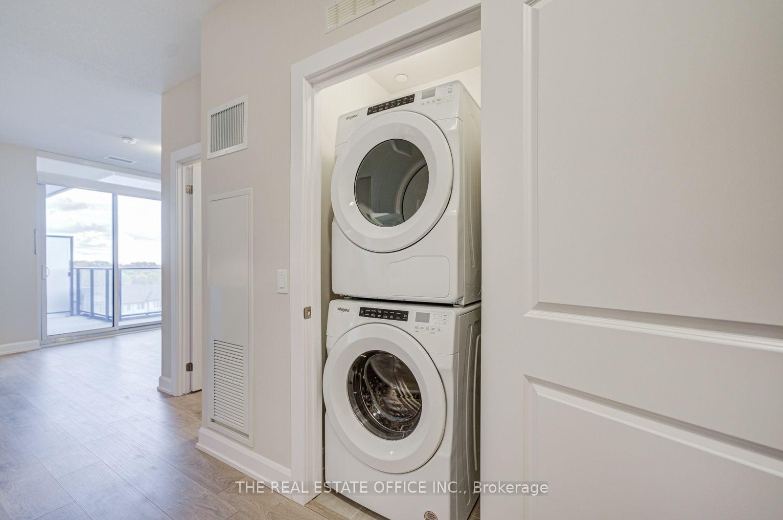 This Stylish 1-bedroom + den suite has received significant enhancements, including upgraded electrical systems for improved efficiency. In total, upgrades valued at $18,000 have been invested, elevating both functionality and appeal which include Window Covering, Full-size appliances, Standing Shower, Laminate Flooring and Quartz Counters. Every improvement was carefully selected to maximize quality and value, creating a home that is move-in ready making it a smart investment for anyone seeking a well-maintained and stylish living space. The flexible den is perfect for a home office or guest room. Enjoy in-suite laundry, and a spacious private balcony for relaxing or entertaining. Take advantage of exceptional building amenities: Include High-Tech Amenities, 24 Hour Security, Smart Lock, Fitness Centre, Party Room, Entertainment Lounge, Rooftop Terrace & Convenient Pet Wash Station. Walk To Grocery Store, Retail, Lcbo, Restaurant, Parks & Shopping Amenities. Hospital, 407, 403, Sheridan College, Public Transit Nearby.Includes parking and a locker