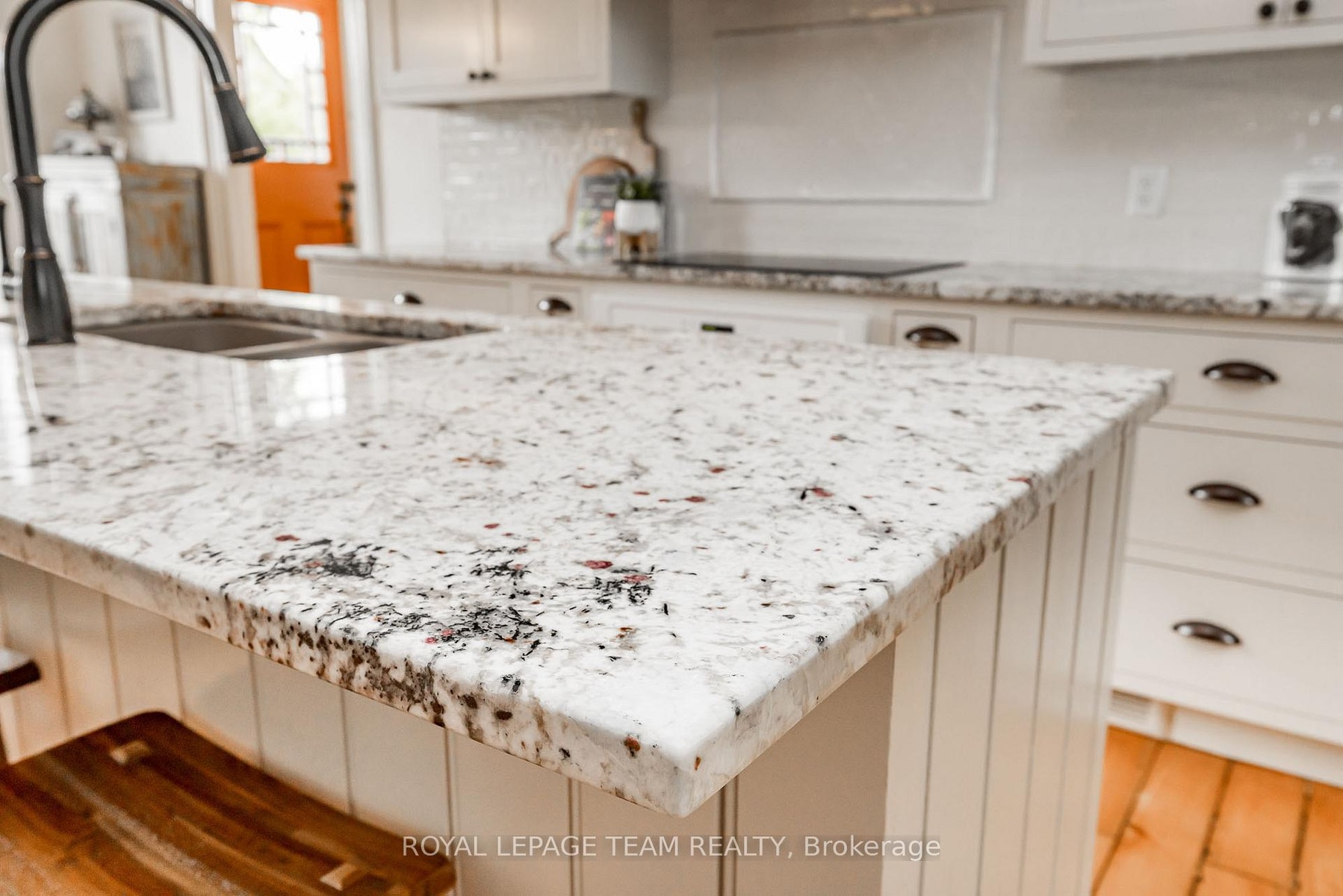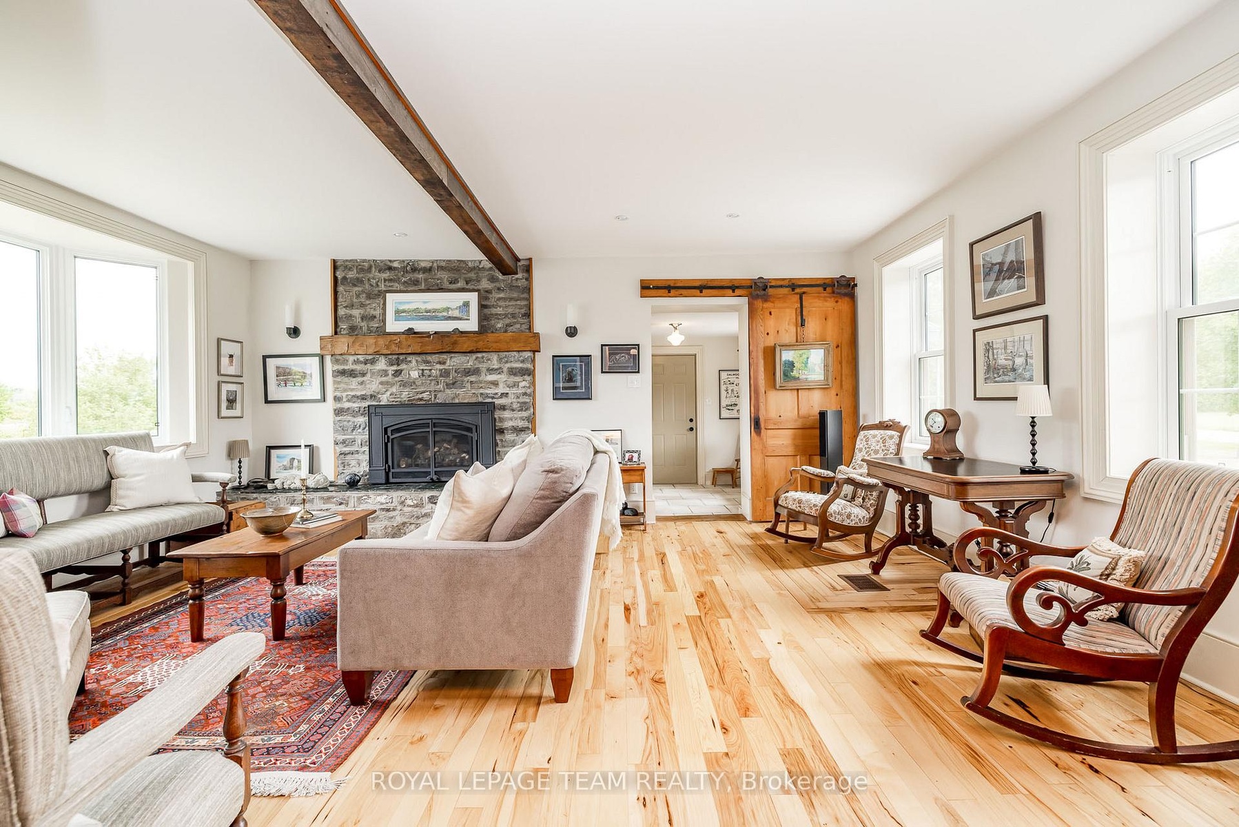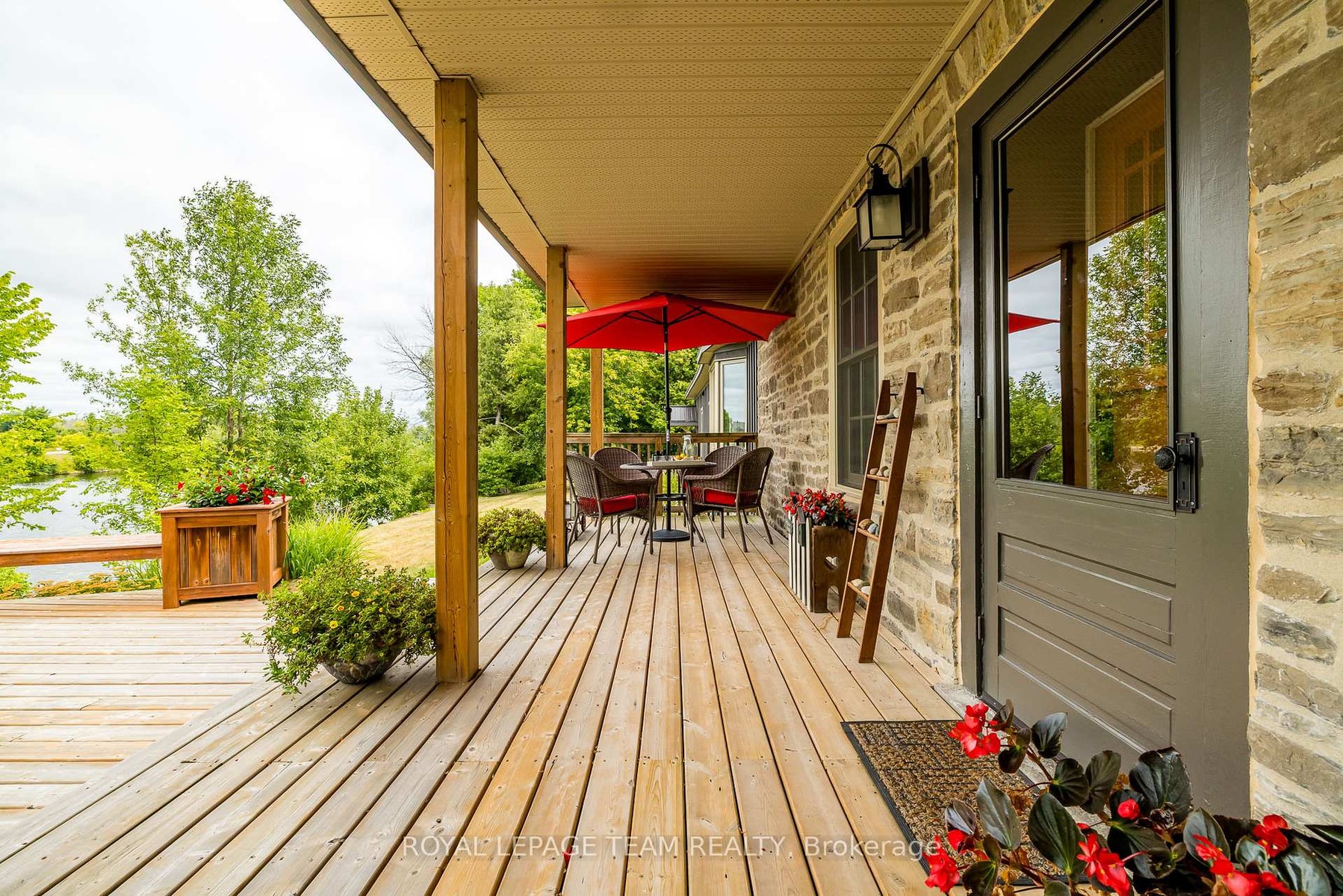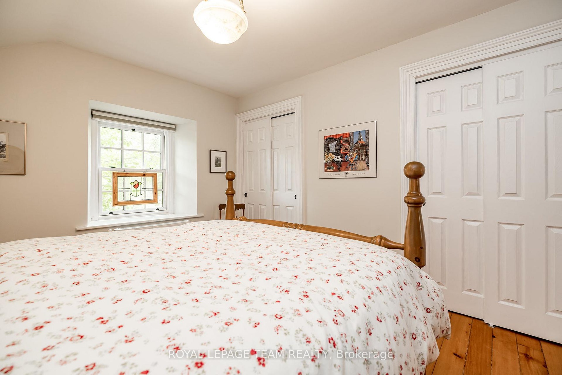 Welcome to Spillway Farm, circa 1835, a stunning waterfront stone home w/ exquisite custom renovations by Hubbard & Co! Located along the Rideau System, UNESCO World Heritage site, this breathtaking waterfront home offers a rare blend of preservation of historic allure w/contemporary convenience & design. Featuring 4 bedrooms + den, 3 full bathrooms & many elegant rooms for entertaining, this home is filled with natural light accentuating its inherent warmth & rich heritage. The custom kitchen w/waterfront view & exposed stone wall showcases luxury cabinetry, granite countertops, an island w/seating, refurbished wood floors & a pantry w/artistic coffee bar! The kitchen leads seamlessly to the elegant dining room w/deep window sills, wide baseboards & refurbished flooring, or to the majestic living room w/stone fireplace, wood hewn mantle & exceptional waterfront views! A side entrance w/inside entry to a garage w/additional loft storage space is conveniently adjacent a full bath/laundry room w/exposed stone wall, farmhouse drop sink & ample cupboard/counter space for laundry area. An office/den off the rear entry deck offers water views, deep window sills & refurbished original floors. The spacious second level showcases 4 bedrooms, one presently utilized as an office, a main bath w/sliding wood door, ample closet & storage space, deep window sills & refurbished floors. The primary bedroom leads to a gorgeous 4-piece ensuite bathroom w/penny round flooring, tiled shower, & a claw tub w/waterfront view! Landscaped w/stunning perennials, rose bushes, numerous tree varieties & a flag stone entry w/full concrete driveway. Rear tiered deck & porch offer many spaces for entertaining; aesthetic stairs lead to expansive dock for unparalleled sunset views! Spillway Farm is a paradise where you can watch loons, osprey, blue herons or traverse the spectacular Rideau waterway via boat from your Fendock; this tranquil waterfront oasis in a historic community awaits!