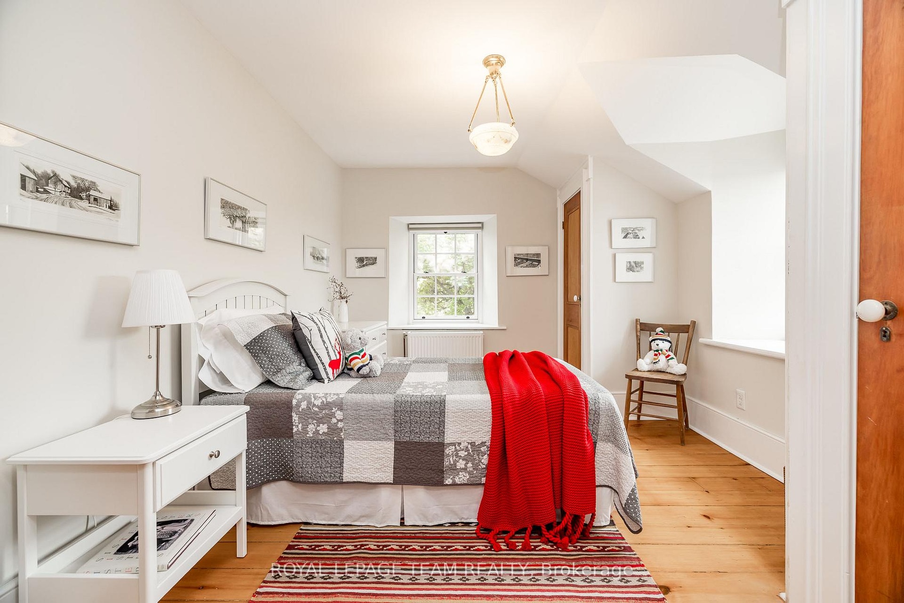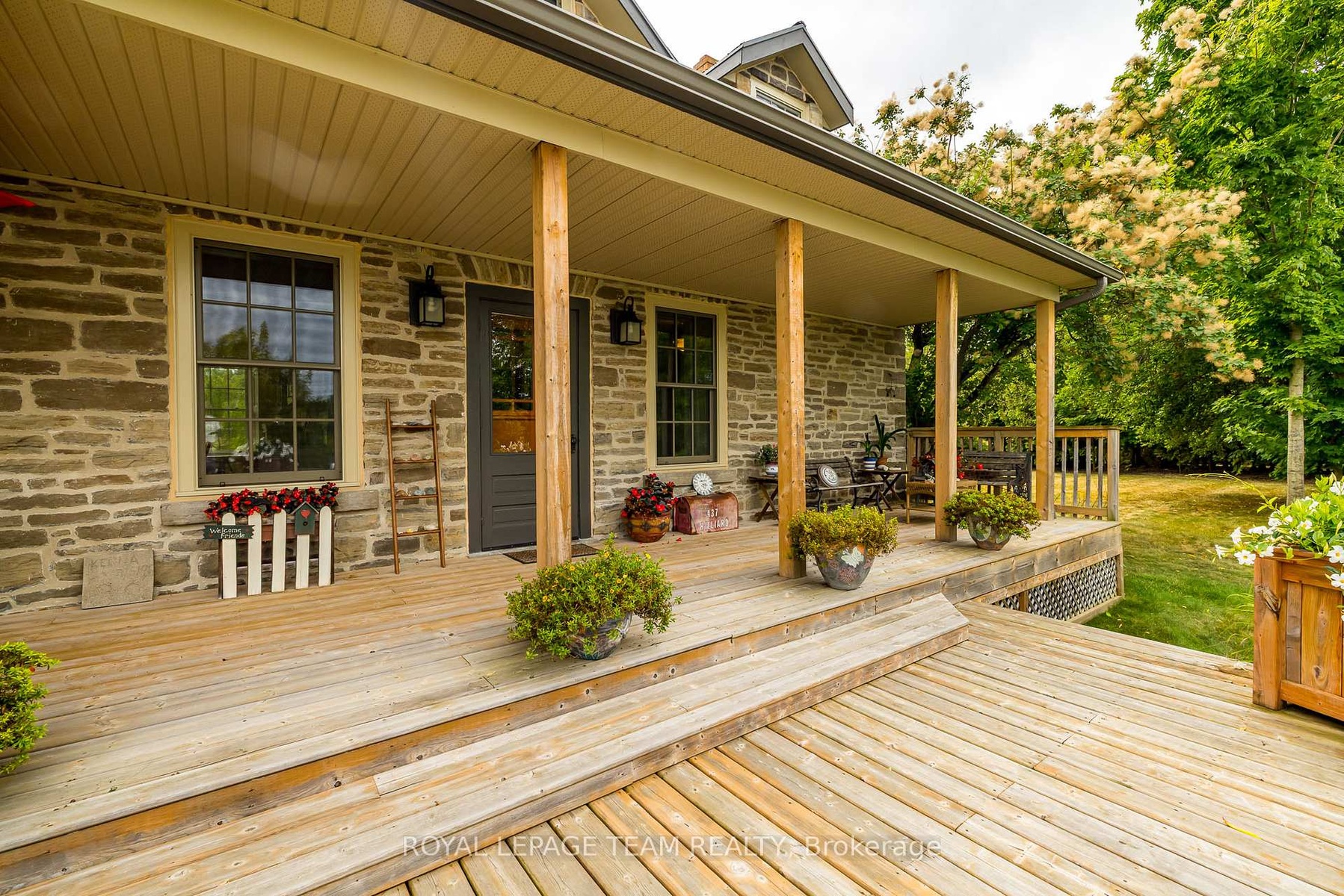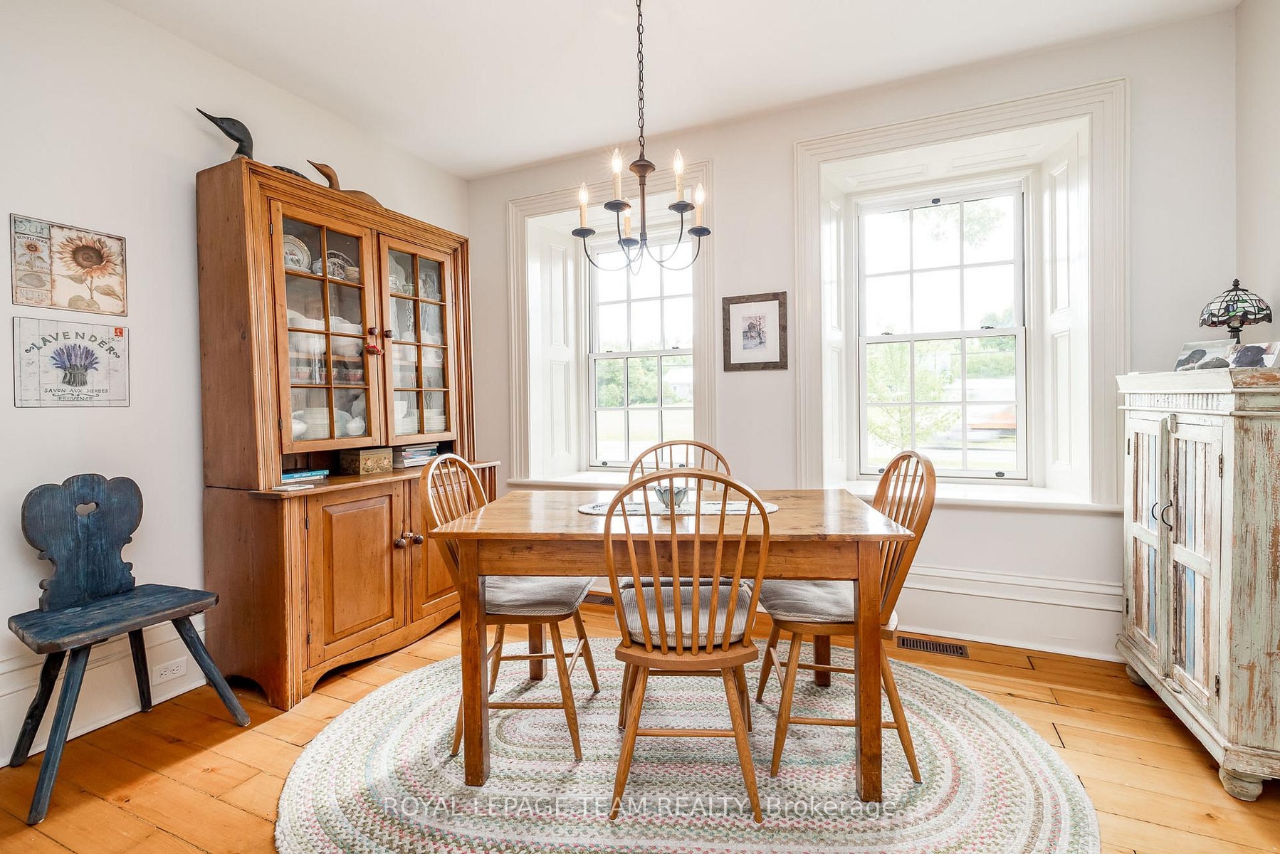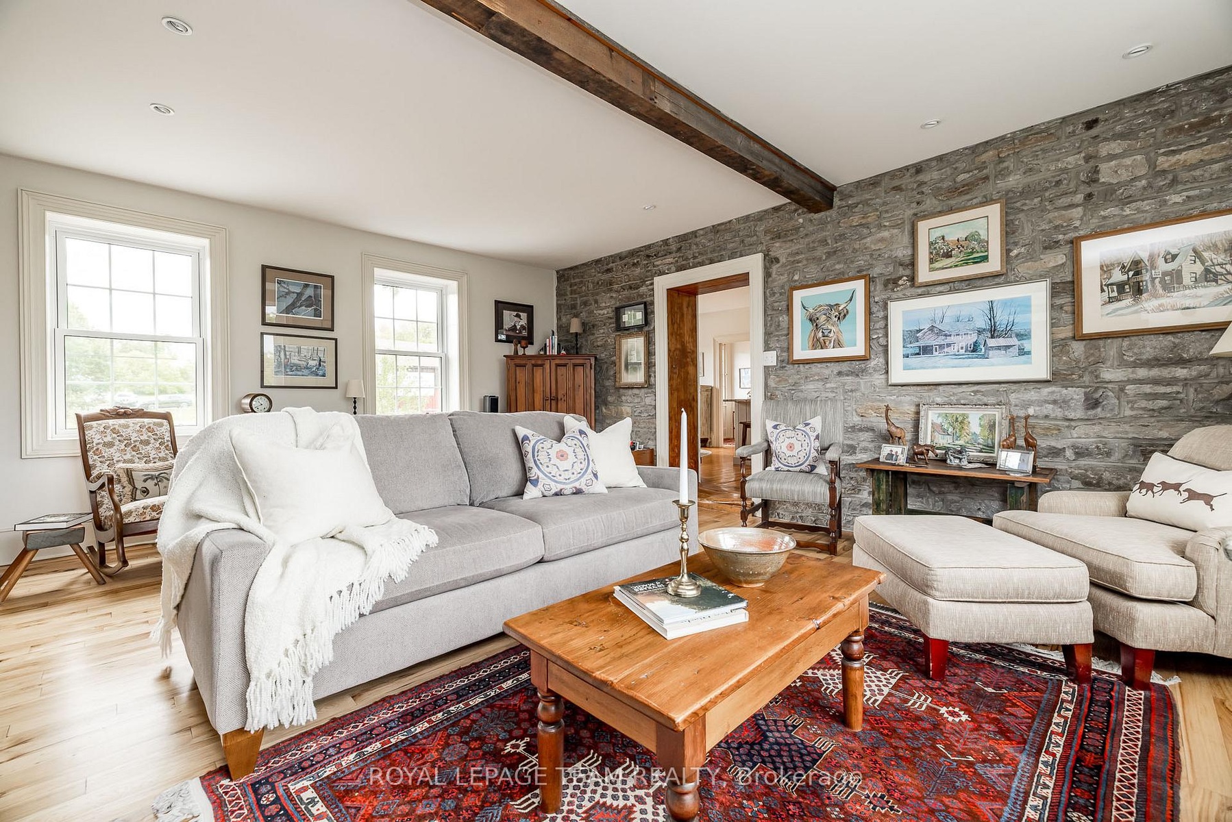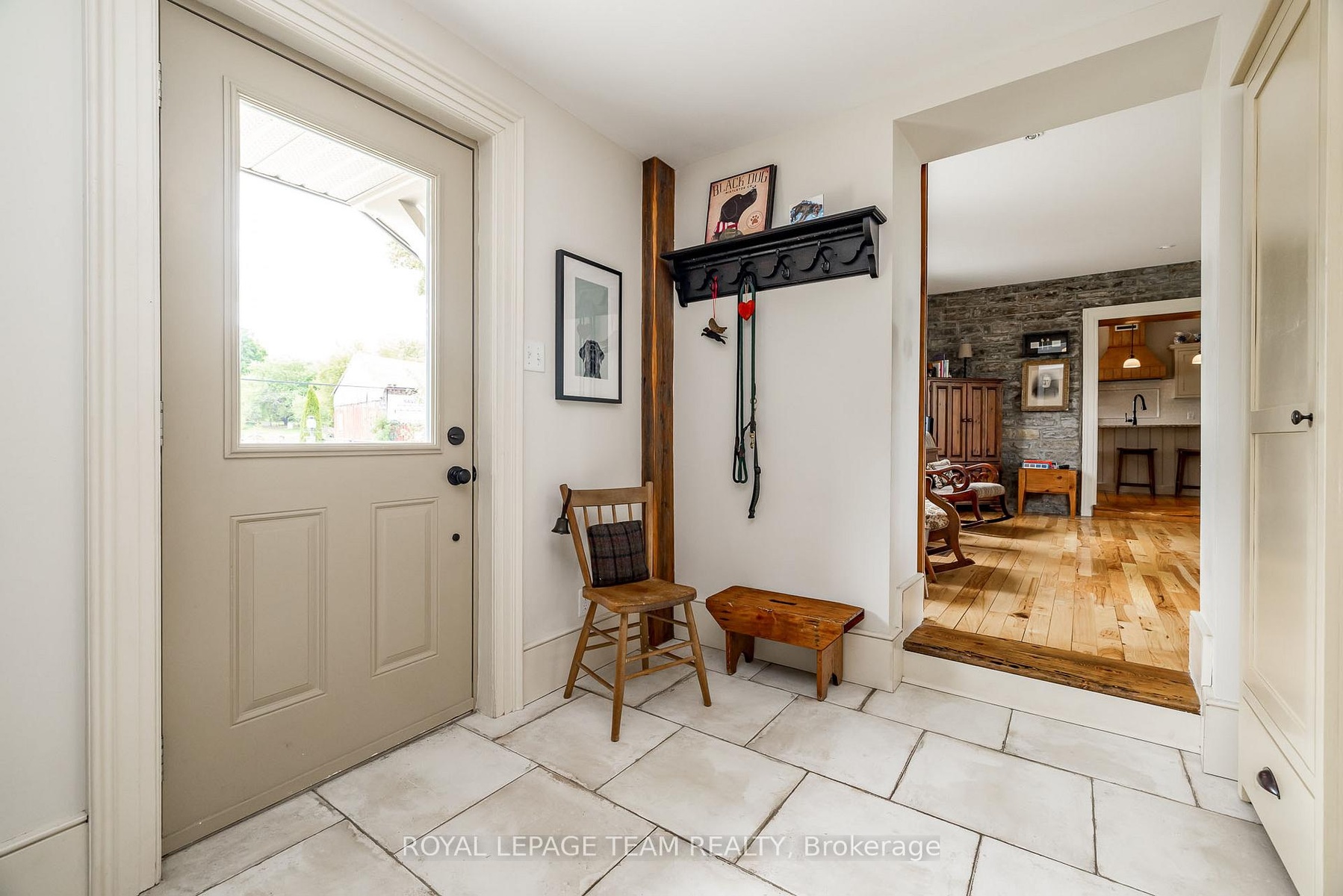 Welcome to Spillway Farm, circa 1835, a stunning waterfront stone home w/ exquisite custom renovations by Hubbard & Co! Located along the Rideau System, UNESCO World Heritage site, this breathtaking waterfront home offers a rare blend of preservation of historic allure w/contemporary convenience & design. Featuring 4 bedrooms + den, 3 full bathrooms & many elegant rooms for entertaining, this home is filled with natural light accentuating its inherent warmth & rich heritage. The custom kitchen w/waterfront view & exposed stone wall showcases luxury cabinetry, granite countertops, an island w/seating, refurbished wood floors & a pantry w/artistic coffee bar! The kitchen leads seamlessly to the elegant dining room w/deep window sills, wide baseboards & refurbished flooring, or to the majestic living room w/stone fireplace, wood hewn mantle & exceptional waterfront views! A side entrance w/inside entry to a garage w/additional loft storage space is conveniently adjacent a full bath/laundry room w/exposed stone wall, farmhouse drop sink & ample cupboard/counter space for laundry area. An office/den off the rear entry deck offers water views, deep window sills & refurbished original floors. The spacious second level showcases 4 bedrooms, one presently utilized as an office, a main bath w/sliding wood door, ample closet & storage space, deep window sills & refurbished floors. The primary bedroom leads to a gorgeous 4-piece ensuite bathroom w/penny round flooring, tiled shower, & a claw tub w/waterfront view! Landscaped w/stunning perennials, rose bushes, numerous tree varieties & a flag stone entry w/full concrete driveway. Rear tiered deck & porch offer many spaces for entertaining; aesthetic stairs lead to expansive dock for unparalleled sunset views! Spillway Farm is a paradise where you can watch loons, osprey, blue herons or traverse the spectacular Rideau waterway via boat from your Fendock; this tranquil waterfront oasis in a historic community awaits!