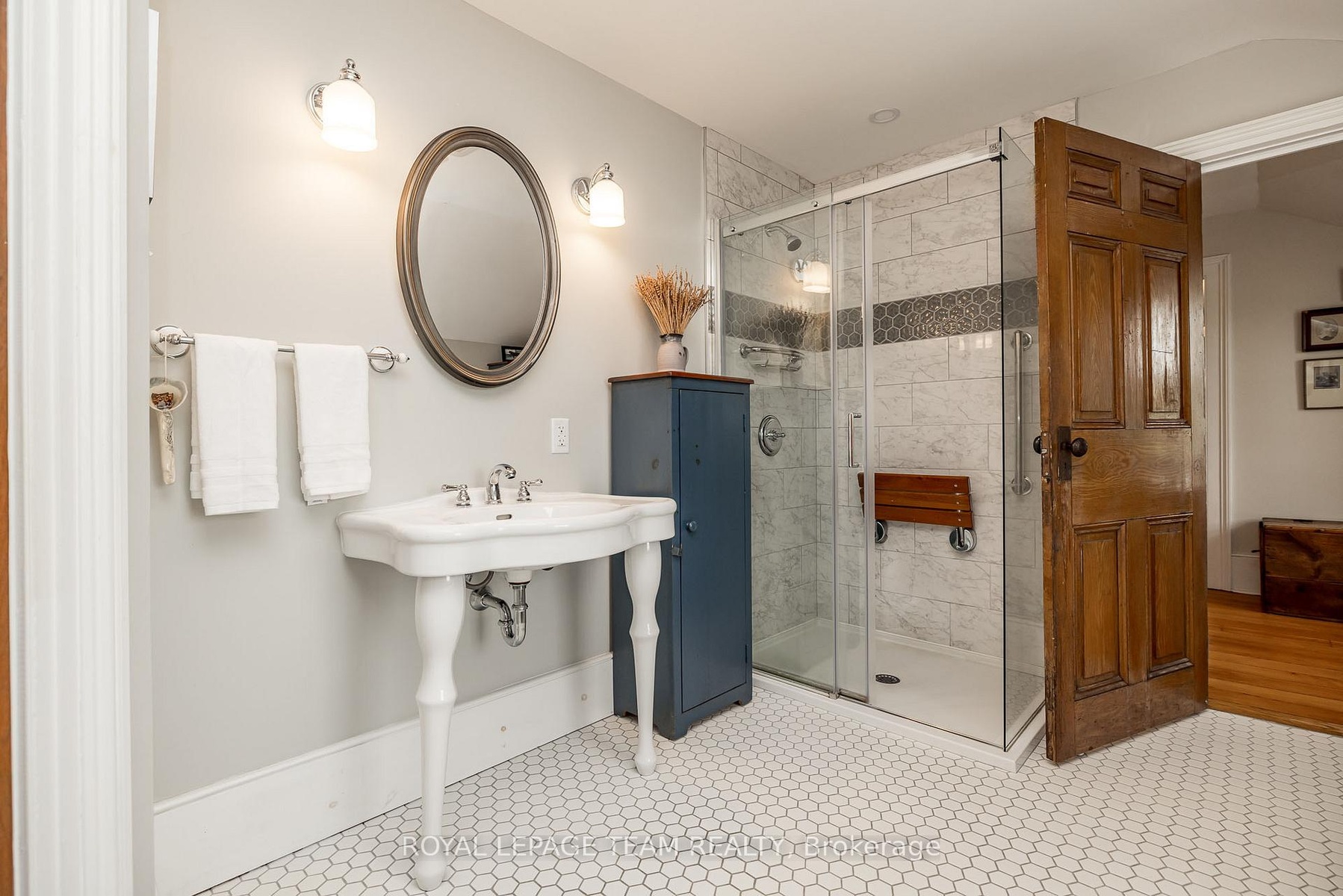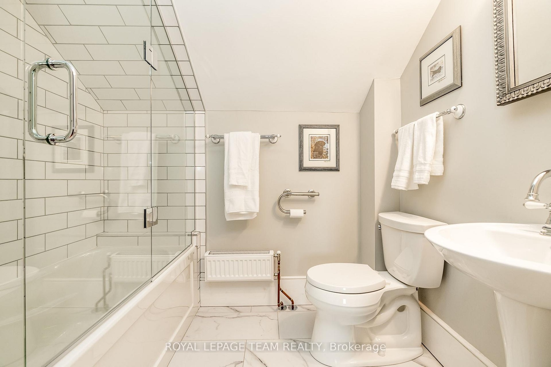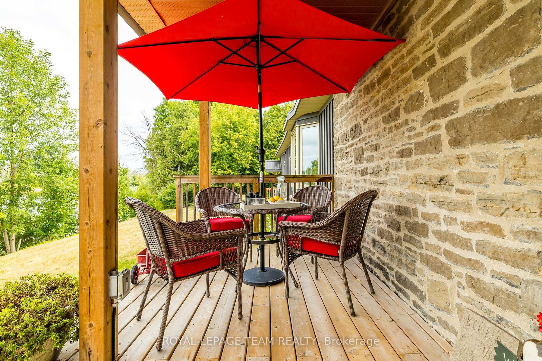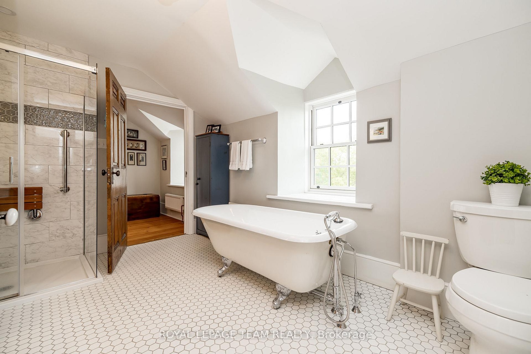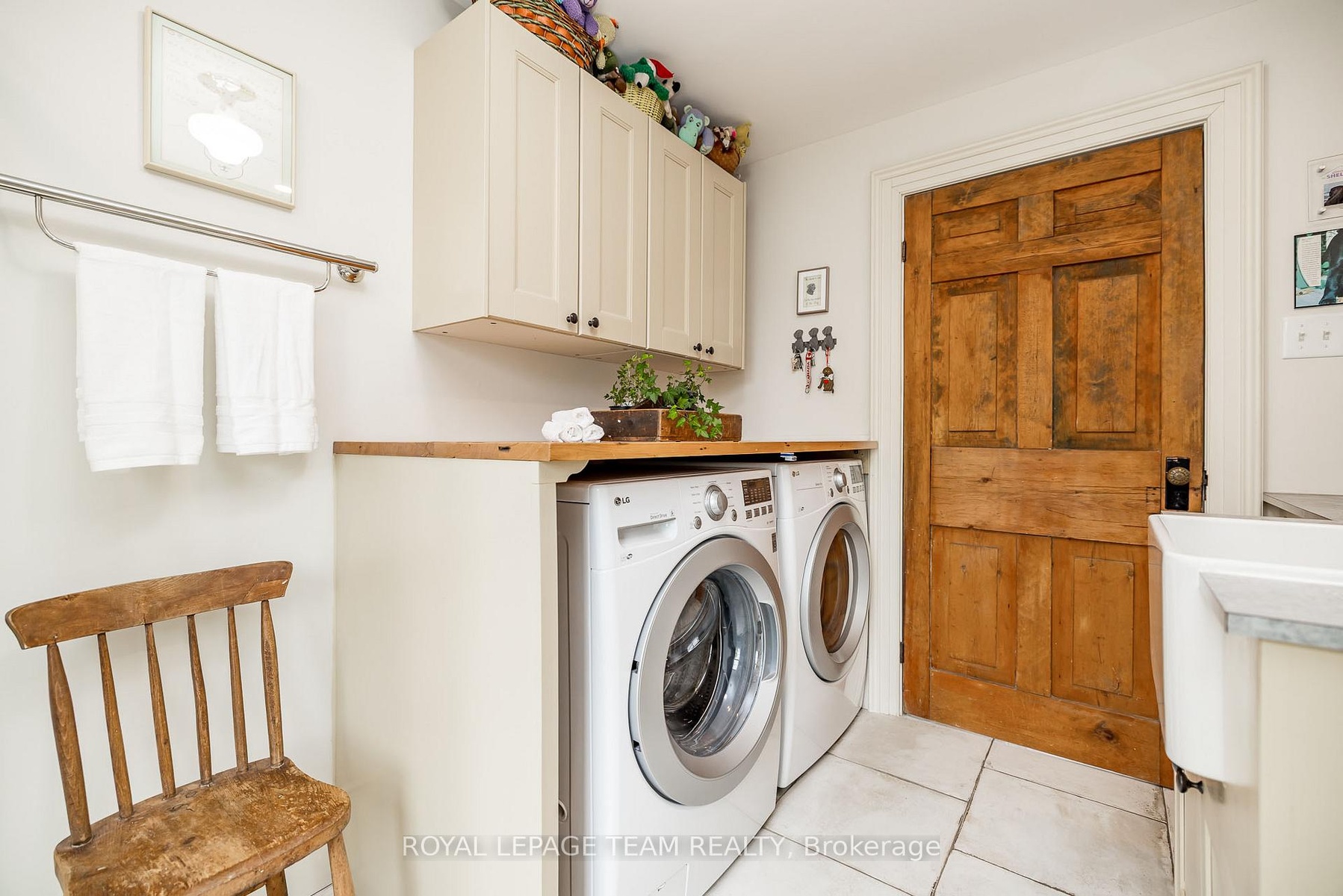 Welcome to Spillway Farm, circa 1835, a stunning waterfront stone home w/ exquisite custom renovations by Hubbard & Co! Located along the Rideau System, UNESCO World Heritage site, this breathtaking waterfront home offers a rare blend of preservation of historic allure w/contemporary convenience & design. Featuring 4 bedrooms + den, 3 full bathrooms & many elegant rooms for entertaining, this home is filled with natural light accentuating its inherent warmth & rich heritage. The custom kitchen w/waterfront view & exposed stone wall showcases luxury cabinetry, granite countertops, an island w/seating, refurbished wood floors & a pantry w/artistic coffee bar! The kitchen leads seamlessly to the elegant dining room w/deep window sills, wide baseboards & refurbished flooring, or to the majestic living room w/stone fireplace, wood hewn mantle & exceptional waterfront views! A side entrance w/inside entry to a garage w/additional loft storage space is conveniently adjacent a full bath/laundry room w/exposed stone wall, farmhouse drop sink & ample cupboard/counter space for laundry area. An office/den off the rear entry deck offers water views, deep window sills & refurbished original floors. The spacious second level showcases 4 bedrooms, one presently utilized as an office, a main bath w/sliding wood door, ample closet & storage space, deep window sills & refurbished floors. The primary bedroom leads to a gorgeous 4-piece ensuite bathroom w/penny round flooring, tiled shower, & a claw tub w/waterfront view! Landscaped w/stunning perennials, rose bushes, numerous tree varieties & a flag stone entry w/full concrete driveway. Rear tiered deck & porch offer many spaces for entertaining; aesthetic stairs lead to expansive dock for unparalleled sunset views! Spillway Farm is a paradise where you can watch loons, osprey, blue herons or traverse the spectacular Rideau waterway via boat from your Fendock; this tranquil waterfront oasis in a historic community awaits!