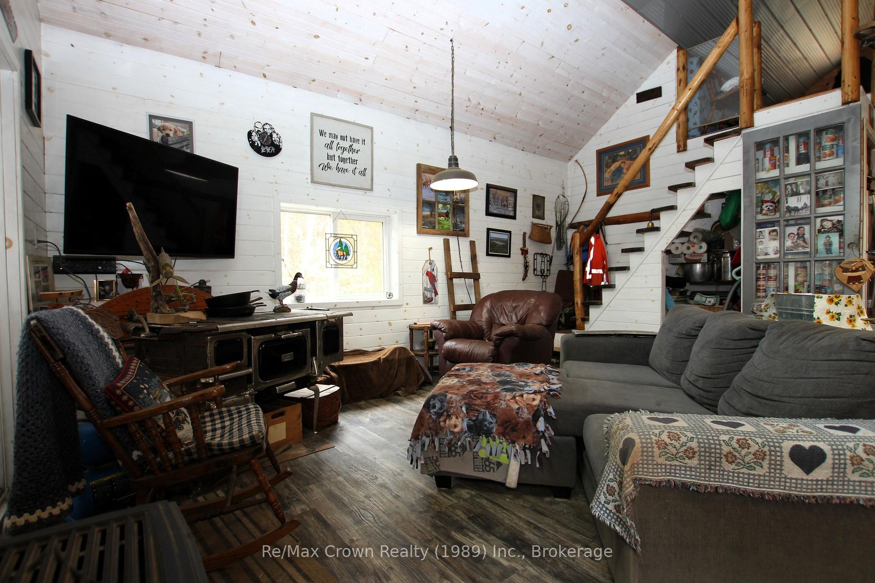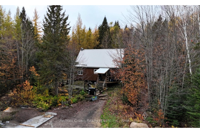 Affordable & Adorable! Discover this charming four-season home or Northern retreat, perfectly tucked away on 4+ private acres along a paved, year-round road. Built in 2020, this property offers modern comfort with a touch of rustic charm. The open-concept layout features vaulted ceilings, durable vinyl laminate flooring, main-floor bedroom and cozy sunroom. The bright living area flows seamlessly into the kitchen with access to the deck or sunroom, while a second loft-style bedroom provides additional space for family or guests. Convenient main-floor laundry, full septic system, and drilled well add to the practicality of this home. Shiplap type finishes, a rustic steel-accent ceiling and live-edge open shelving in the kitchen brings out this home's warm and inviting country character. A must-see for anyone seeking an affordable getaway or a peaceful, cost effective place to call home. Seller has recently poured a new concrete pad for future garage or shed. Located just south of Sunny Sundridge, known for its quaint downtown and scenic High Rock Lookout Park, and only 30 minutes to Huntsville or 3 hours to Toronto.