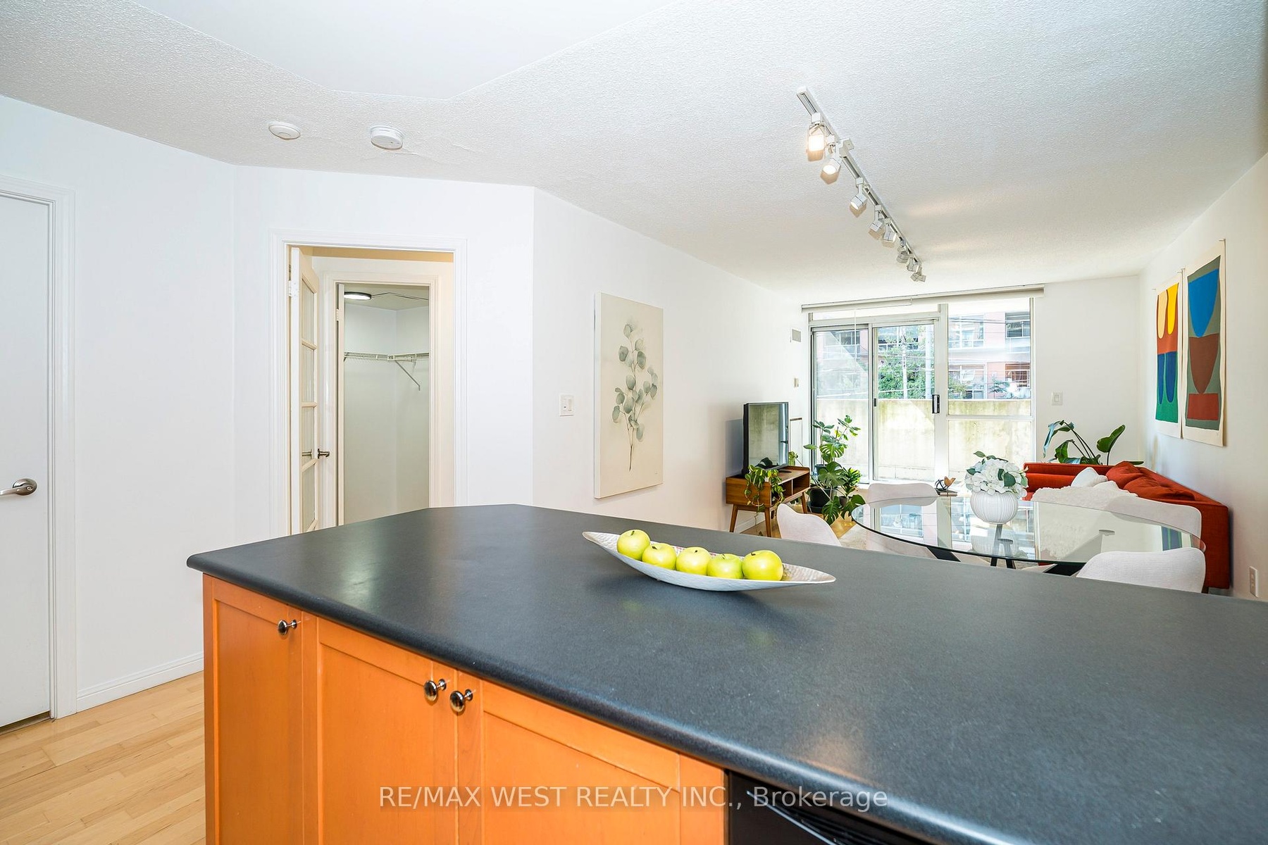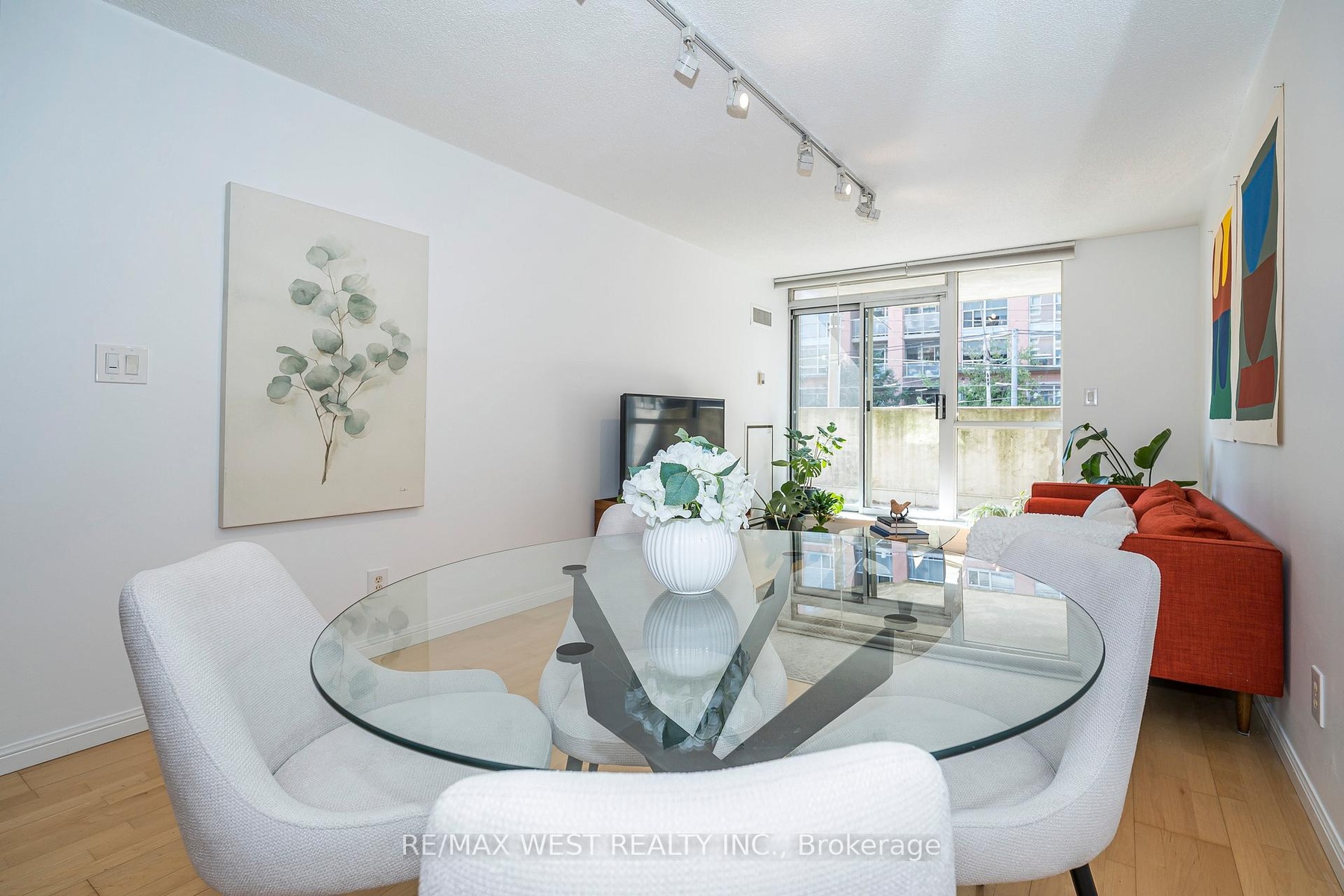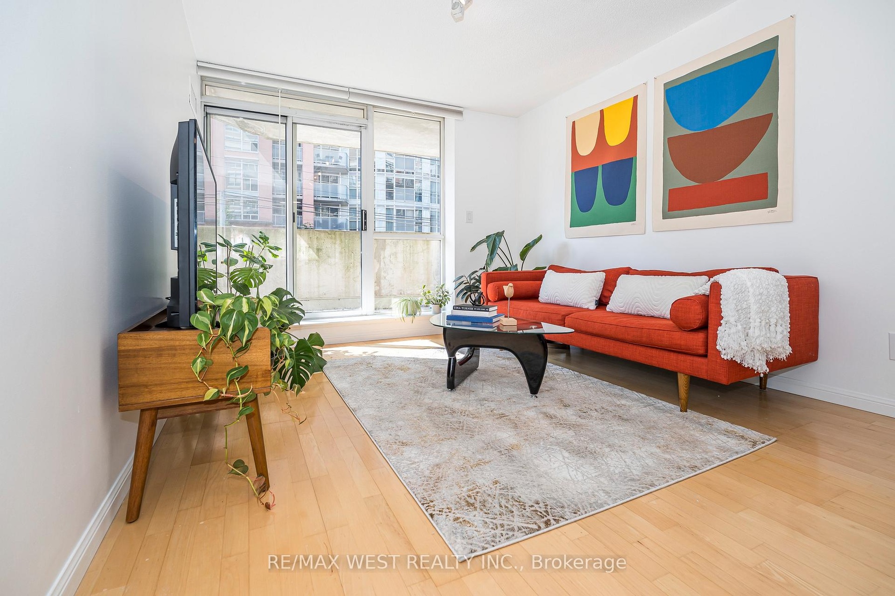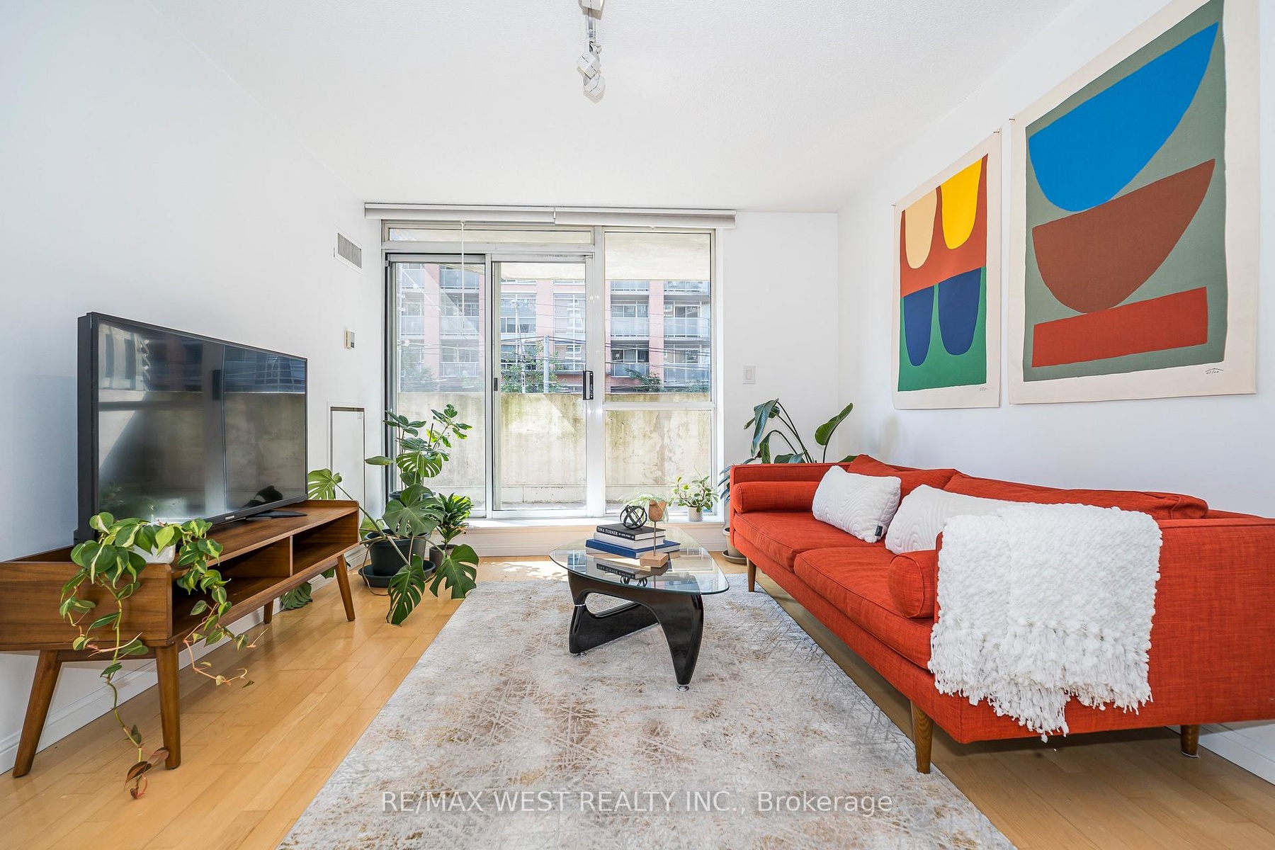 King West Village Boutique Living - Spacious 740Sqft - 1+Den( 2nd bedroom) With Parking, Locker & Exceptionally Low Maintenance Fees Per Sqft! Welcome to one of the most desirable boutique buildings in King West Village - a rare combination of community charm and urban sophistication. This 740 sq.ft. south-facing 1 bedroom + den residence offers a bright, functional layout with the den large enough to serve as a true second bedroom or home office. The open-concept kitchen, featuring abundant cabinetry and generous counter space, flows effortlessly into the living and dining areas - perfect for entertaining or unwinding at the end of the day.Step out onto your private south-facing terrace, an inviting extension of the living space ideal for morning coffees in warm summer mornings, container gardening, or relaxed outdoor conversations with a glass of wine on hot summer nights. Parking and locker are included, and the low maintenance fee per square foot makes this not only a lifestyle choice but also a smart, value-driven investment in one of Toronto's most vibrant neighbourhoods. Celebrated for its boutique, community-oriented feel, this building offers a true sense of connection within the city's core. Just steps from grocery stores, cafes, gyms, and parks - including Stanley Park and Trinity Bellwoods - with the lakefront, TTC, and future Ontario Line King/Bathurst Station all within easy reach. Experience the best of King West Village living - boutique comfort, urban convenience, and exceptional value.