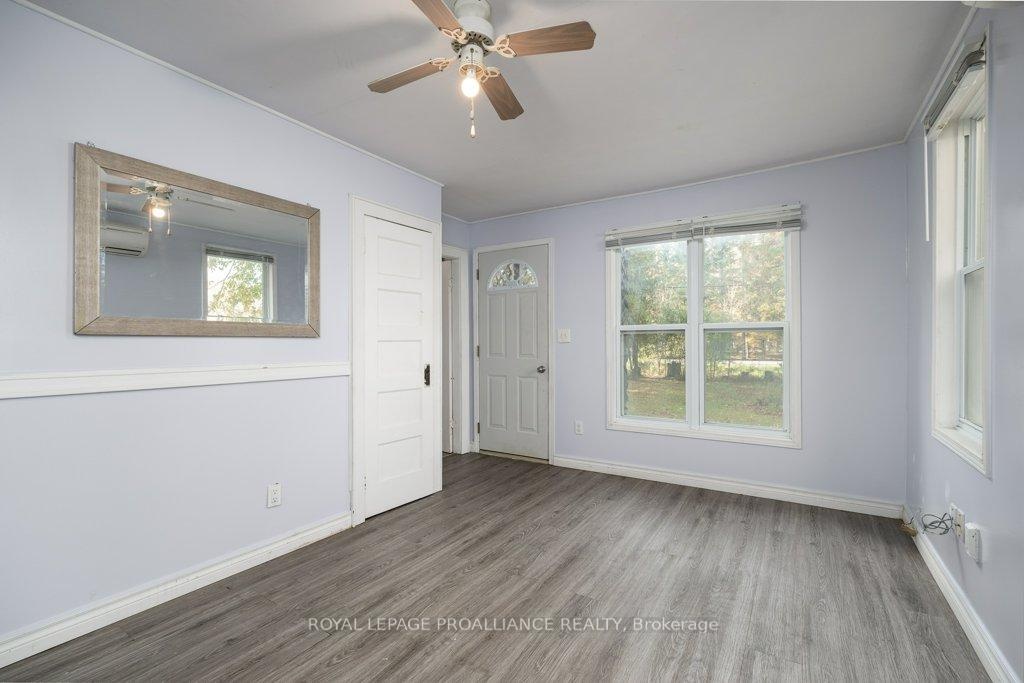 This beautifully renovated 2-bedroom bungalow offers the perfect blend of country charm and close to city convenience! Featuring a bright kitchen with white cabinetry and newer countertops, this home boasts easy-care laminate flooring throughout and no carpet. Nestled on a scenic, tree lined half-acre lot, it provides privacy and a peaceful setting just minutes from town. Enjoy the convenience of main-level living with a 4-piece bathroom, in-suite stackable laundry, and two sheds for ample storage. Ideally located near the Bay of Quinte, Trenton, CFB Trenton, shopping, and all amenities - this move-in ready home is a must-see. Perfect for First Time Home Buyers or Empty Nesters looking to downsize!