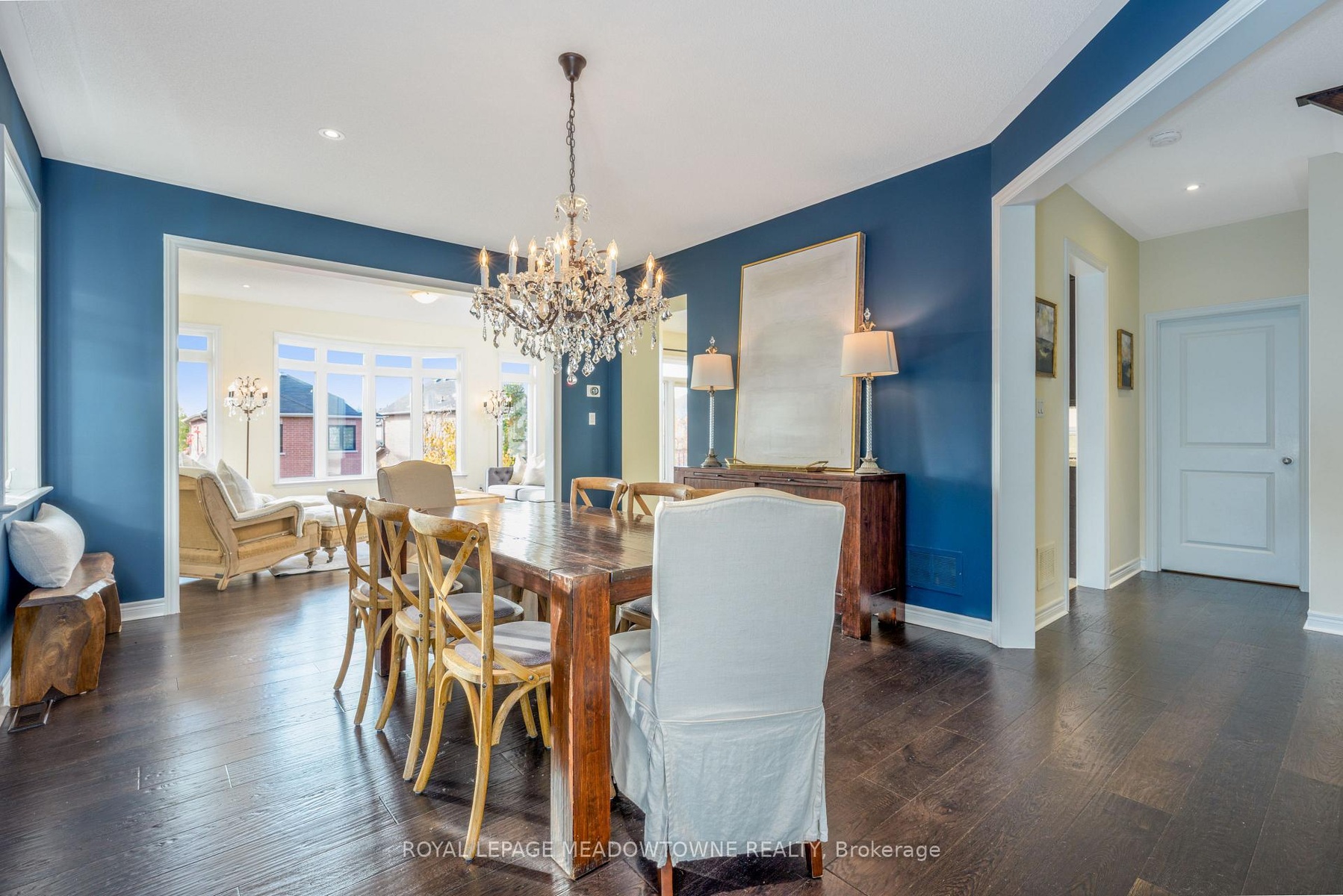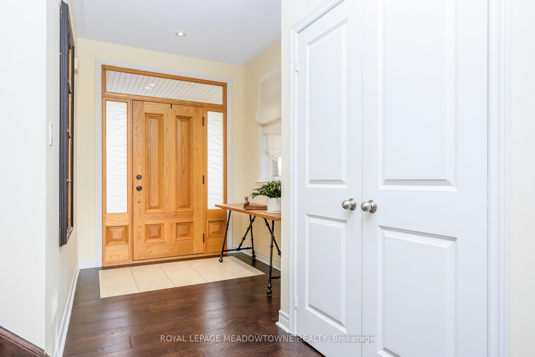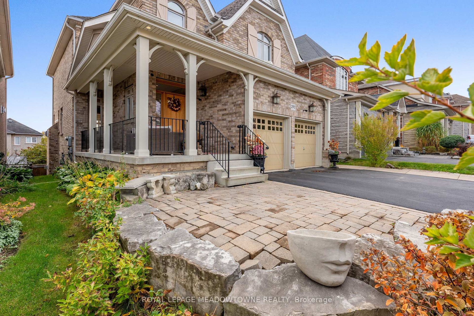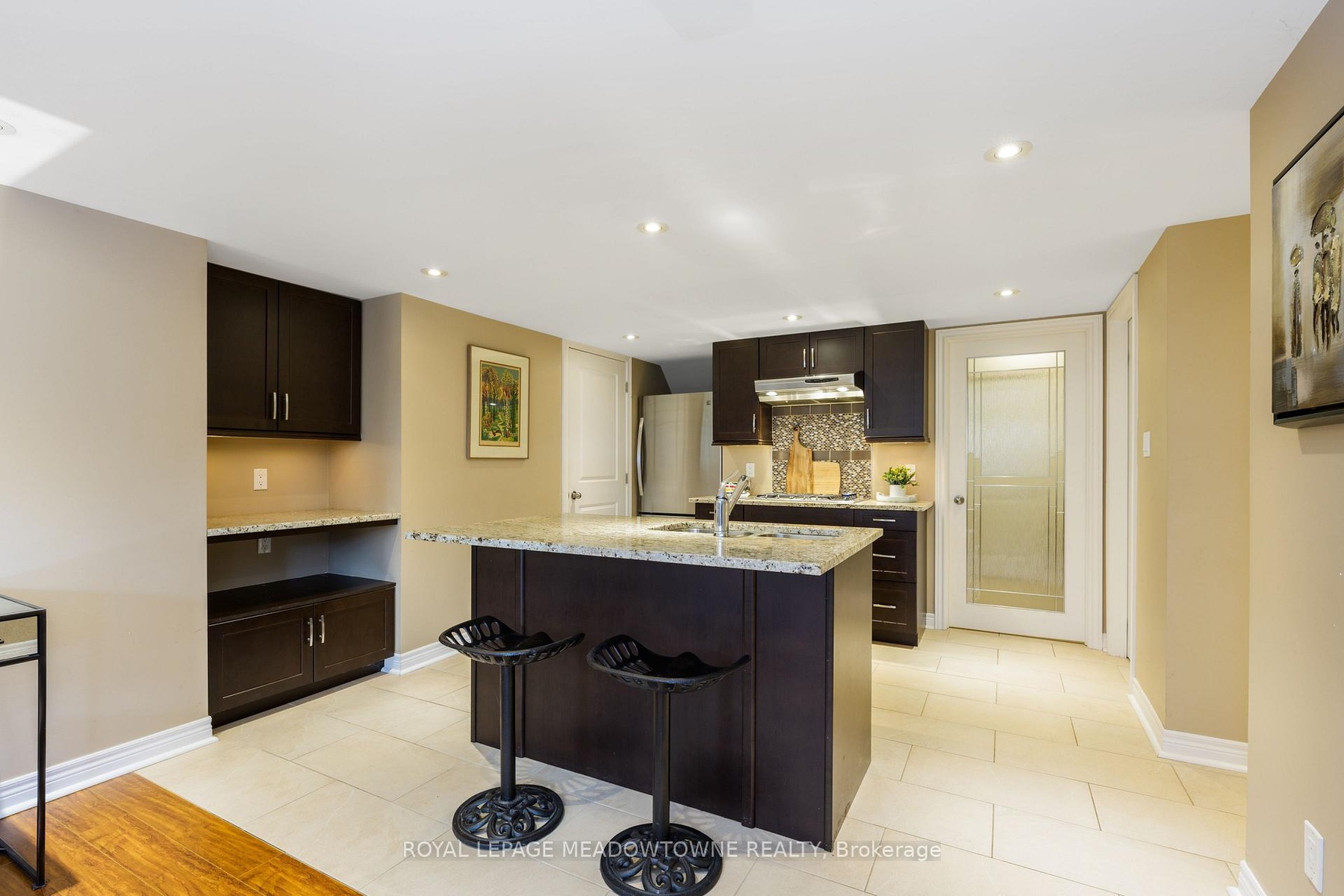 This move-in-ready Executive Double Oak-built 'Hanlon Creek' Model is nestled near the end of a quiet cul-de-sac and is sure to impress! The covered porch and Double Oak's signature solid oak front door welcome you into a spacious entryway, setting the tone for high-end craftsmanship found throughout the home. With over 3,600 square feet of living space, 4+1 beds, 5 baths, and 2 full kitchens, this home offers a practical yet elegant floor plan. The main level features soaring 9-ft ceilings, 7" hand-scraped hardwood floors (main and upper levels), and oak stairs with iron pickets open to above and below. The eat-in kitchen boasts tall upper cabinets, granite countertops, ss appliances, and a stylish backsplash. The bright breakfast area opens to a private deck through patio doors, while the formal dining room and inviting family room with a gas fireplace overlook the beautifully landscaped backyard. A powder room and mudroom with direct access to the double car garage adds everyday convenience. The primary suite is a private retreat with a spa-like 5 pce ensuite and walk-in closet. Three additional bedrooms complete this level - one with its own 3 pce ensuite, and another with a cheater ensuite to a 4 pce bath. The upper-level laundry room adds ease to your daily routine. The walkout lower level offers an ideal setup for multigenerational living or guest accommodations, complete with a second kitchen, stainless steel appliances and a gas cooktop, a comfortable bedroom, a welcoming family room with a gas fireplace, a luxurious 4-piece bath with heated floors, and extra laundry hookups. Oversized above-grade windows fill the lower space with natural light, and the walkout leads to a newly poured concrete patio and landscaping - the perfect spot for morning coffee or evening relaxation. Plus, the extra-long driveway with no sidewalk allows for four-car parking. Located within walking distance to schools, parks and access to the Hungry Hollow Trail across the street.