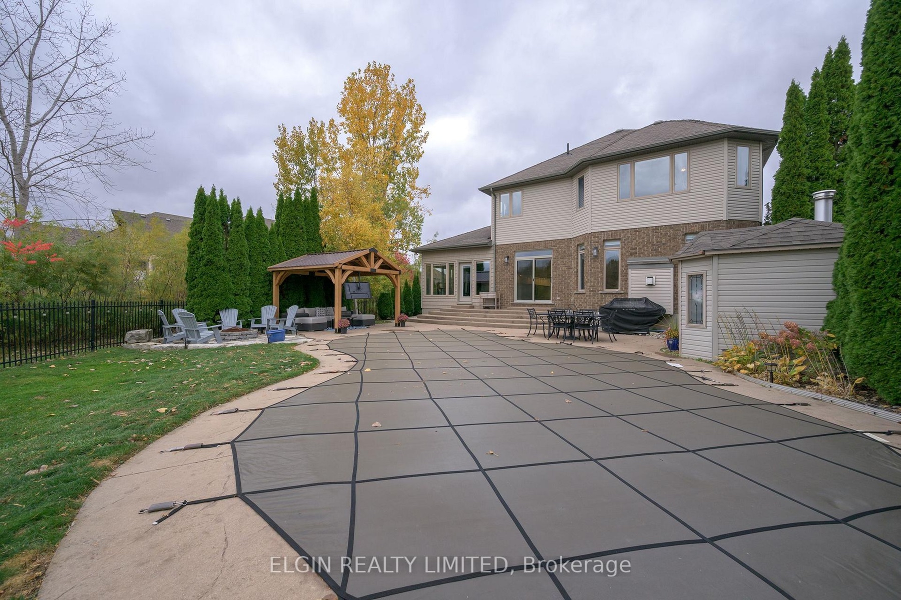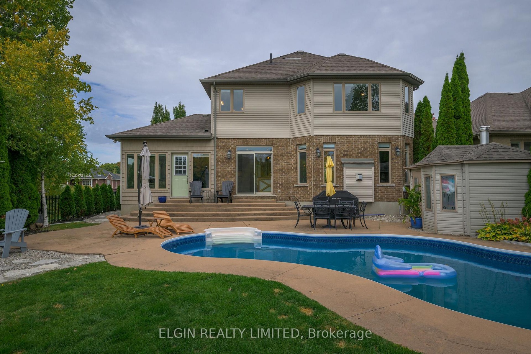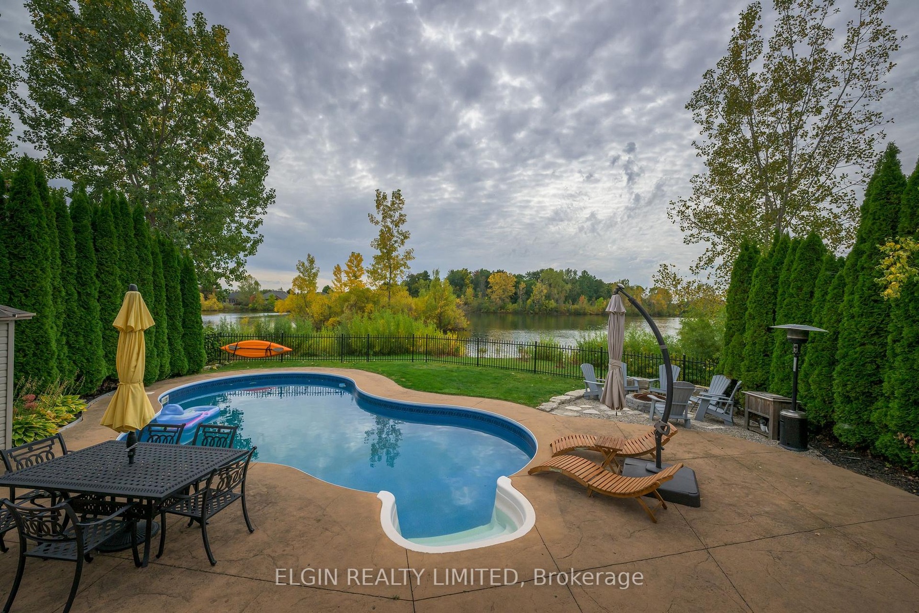 Welcome to 160 Lake Margaret Trail. This gorgeous two-story home enjoys a prime location, backing directly onto the serene Lake Margaret-truly a setting that's hard to beat! Offering over 3,000 sq ft of beautifully designed living space spread across three levels, this residence has everything you need and more. The main floor features 9' ceilings and durable luxury vinyl plank flooring throughout. You'll love the award-winning kitchen (2020)-a true chef's dream-alongside a formal dining room and a cozy living area with a gas fireplace. The bright family room is filled with natural light thanks to large windows, and just off the kitchen, the sunroom is currently used as an entertainment area and golf simulator-perfect for relaxing or having fun with friends. You'll also find main-floor laundry, a 2-piece bath, and a dedicated office/den that's ideal for working from home. Upstairs, the spacious primary suite is your own private retreat with an updated 5-piece ensuite, walk-in closet, and a double-sided fireplace that adds a touch of warmth. Two additional generous bedrooms, a 4-piece bath, and a cozy sitting area complete the upper level. The fully finished basement is made for entertaining, featuring a bar, a 3-piece bath, and a Murphy bed-great for guests or extra living space. Step outside to your private backyard oasis with a kidney-shaped heated in-ground pool surrounded by a concrete patio and walkways. Enjoy peaceful strolls along the scenic trails that wind around the lake, just steps from your door. Recent upgrades include a brand-new furnace and air conditioner (2025), ensuring comfort year-round. Don't miss your chance to own this stunning home in one of the most sought-after locations in town!!
