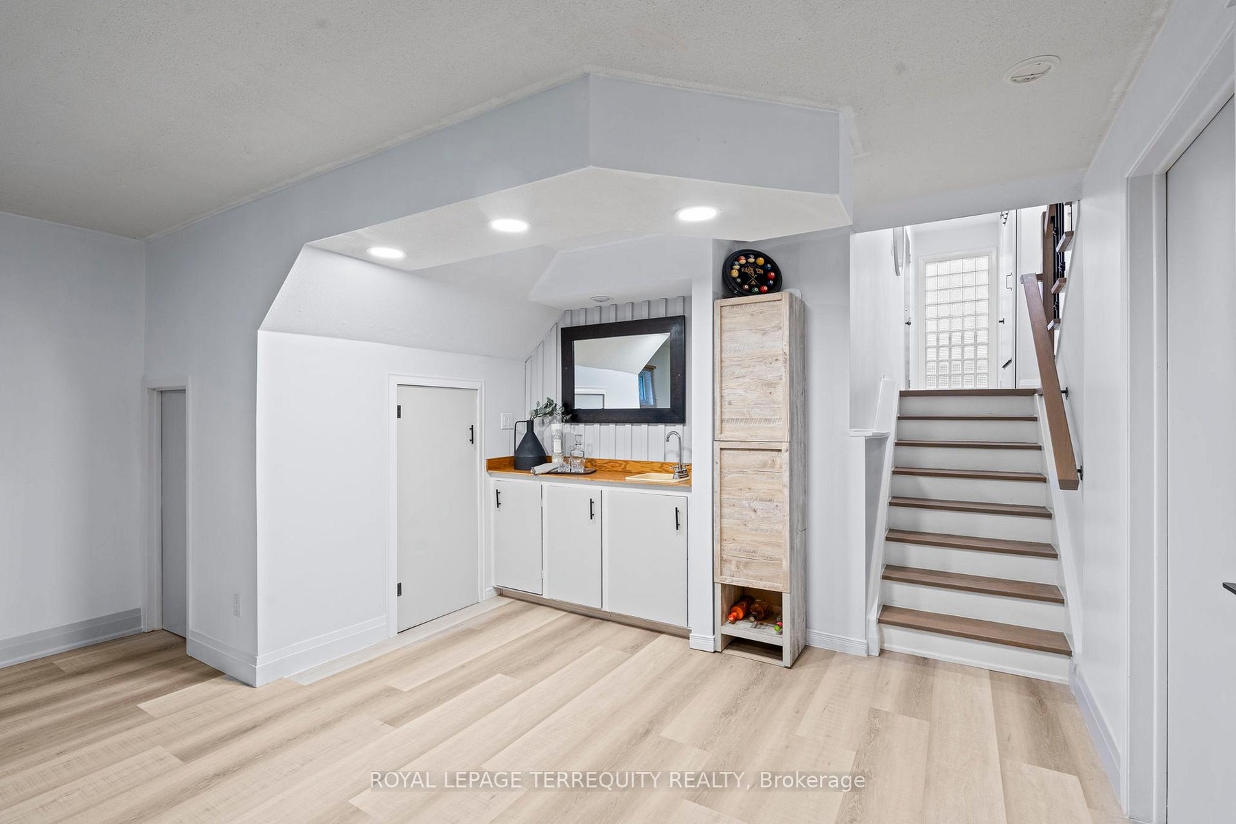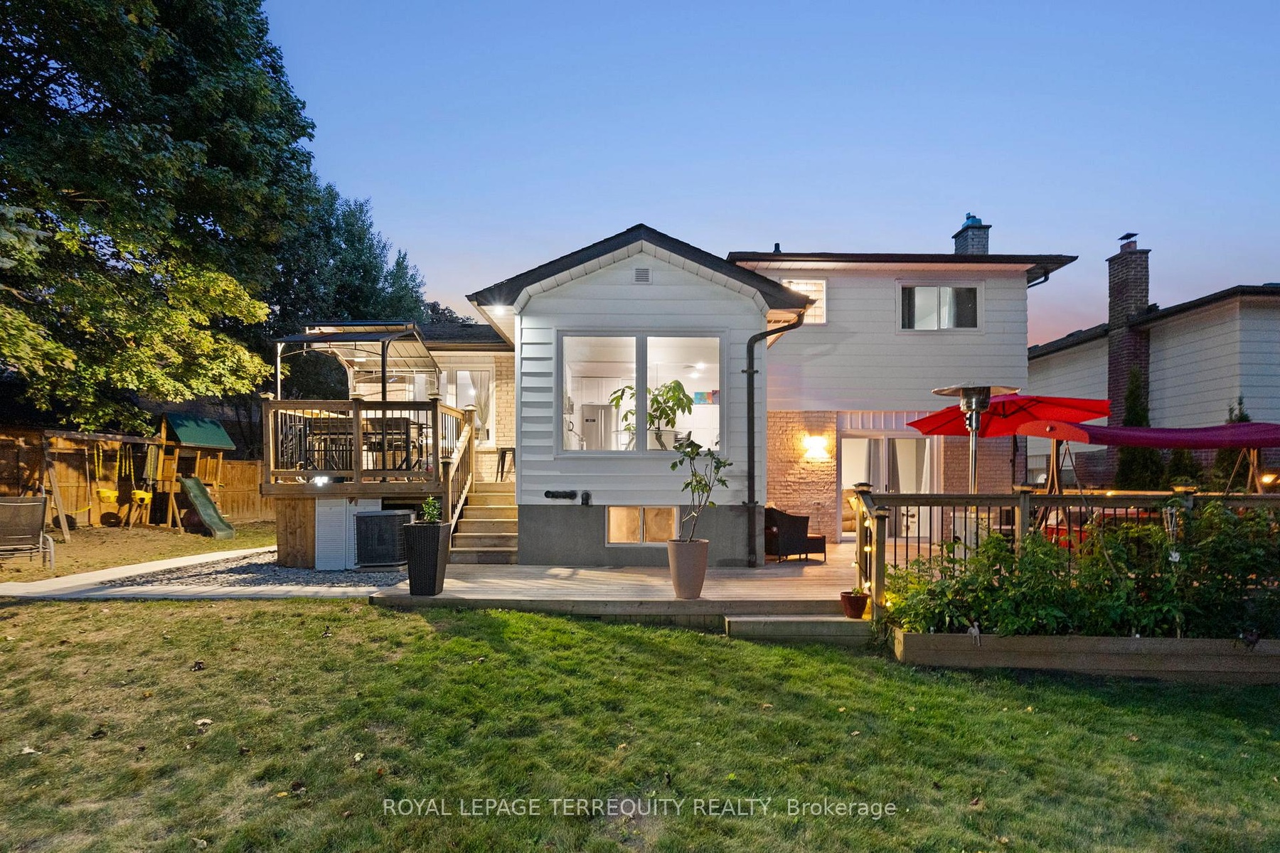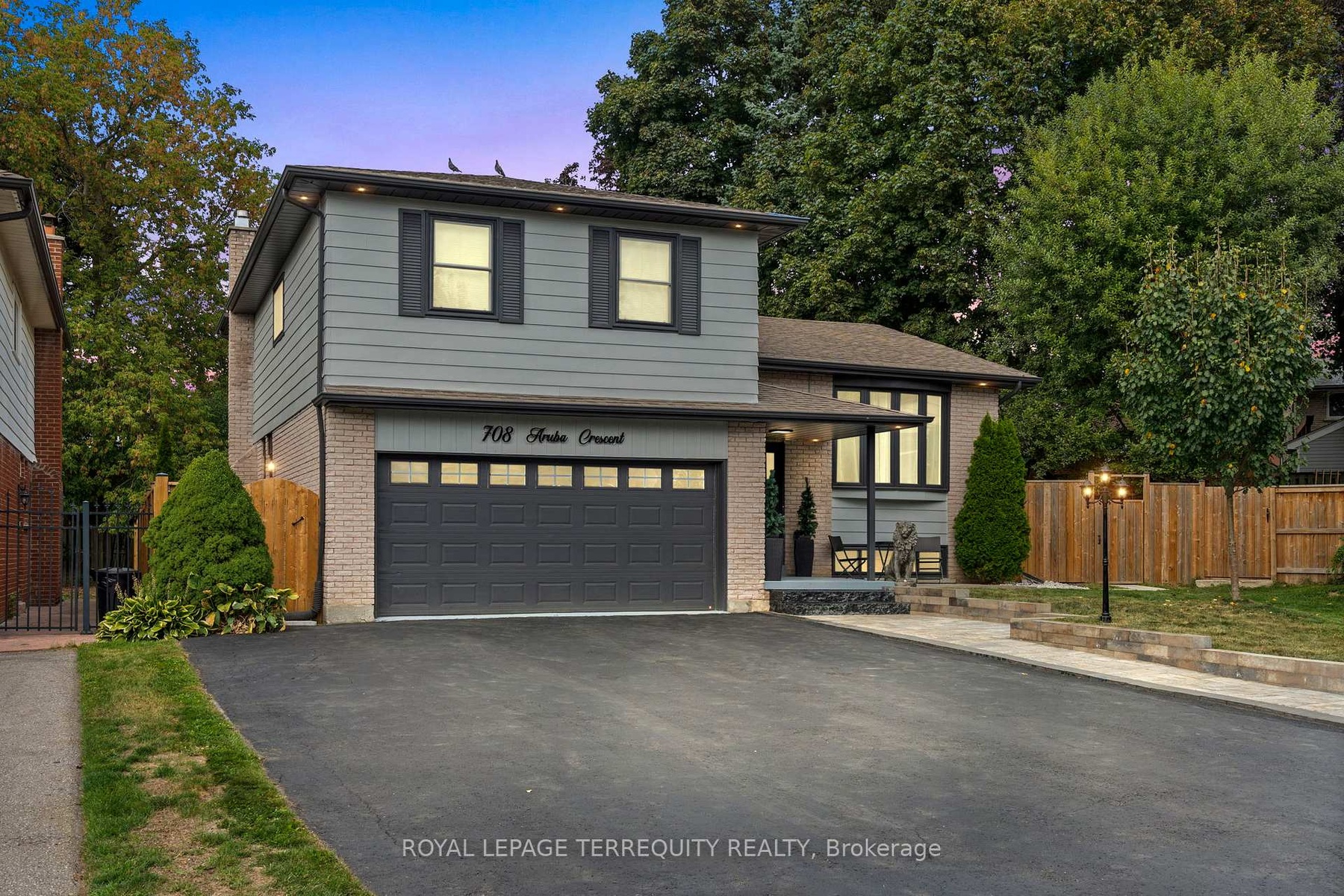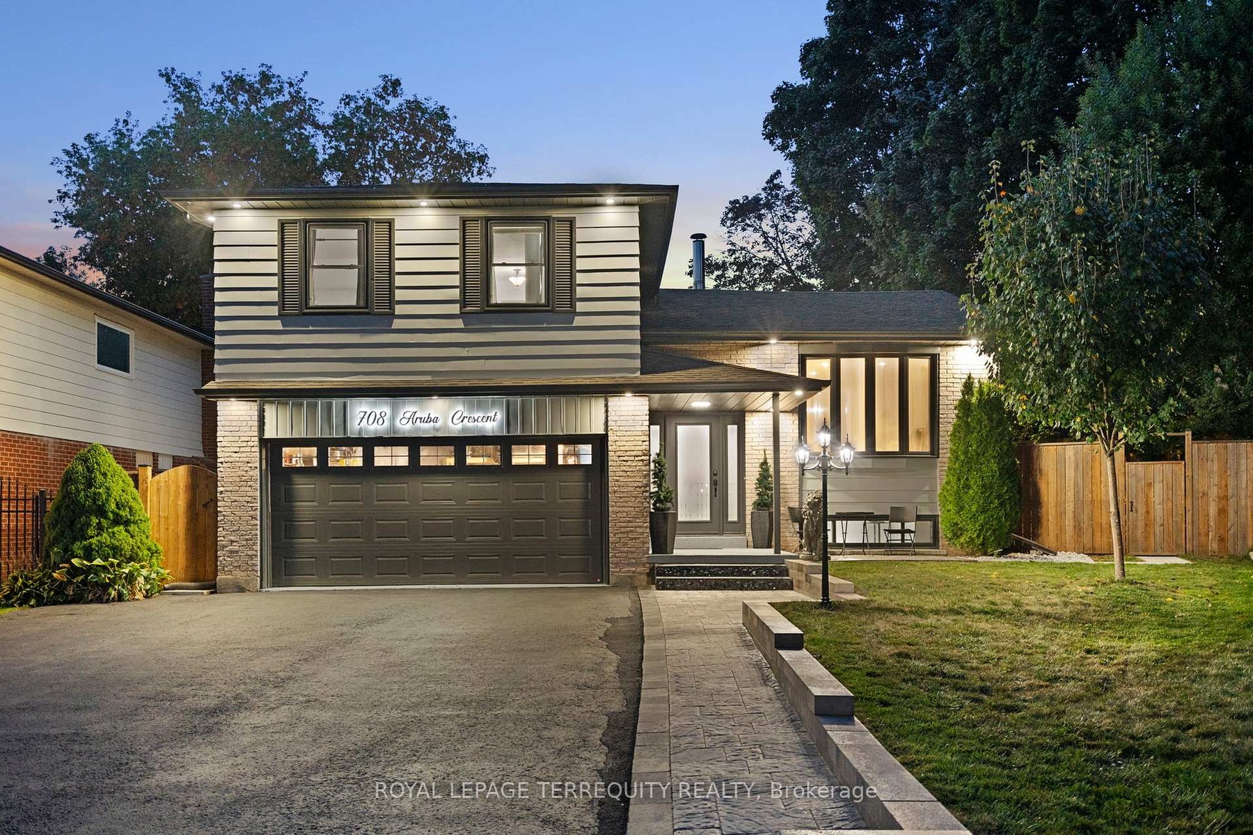 Welcome to 708 Aruba Crescent, nestled in Oshawas highly sought-after Northglen community! This beautifully updated 3+1 bedroom, 3 bathroom home is perfectly located just minutes to schools, parks, transit, and the Oshawa Centre. Step inside to find a bright and modern interior with engineered hardwood and vinyl flooring throughout no carpet! The home boasts updated light fixtures, renovated bathrooms, and an upgraded staircase that add a stylish touch. The open-concept kitchen features stainless steel appliances, quartz counters on the island, a breakfast bar, and an eat-in area with walkouts to your backyard oasis. Enjoy a large pie-shaped lot with mature trees, modern interlocking, a two-level deck, and no sidewalk perfect for entertaining or family fun. The driveway offers parking for up to 8 vehicles plus garage access. Upstairs, the primary bedroom retreat includes a feature accent wall, walk-in closet, and a spa-like 4-piece ensuite. The fully finished basement extends your living space with a rec room, wet bar, additional bedroom, and plenty of storage. With over 2,200 sq. ft. of total living space, 2 walkouts to the backyard, exterior pot lights, and numerous recent upgrades, this home truly has it all. Dont miss your chance to own this perfect family home in one of Oshawas most desirable neighborhoods!